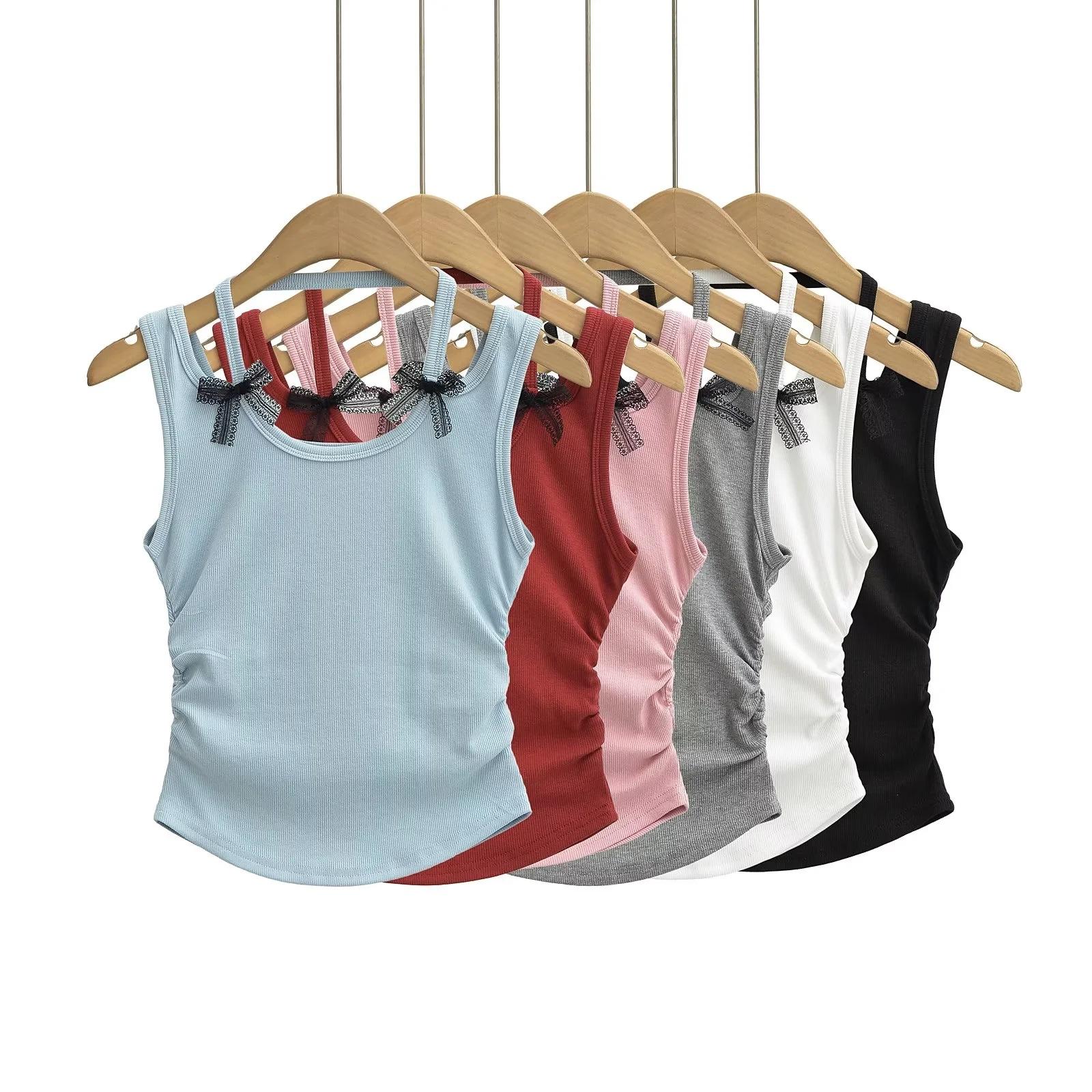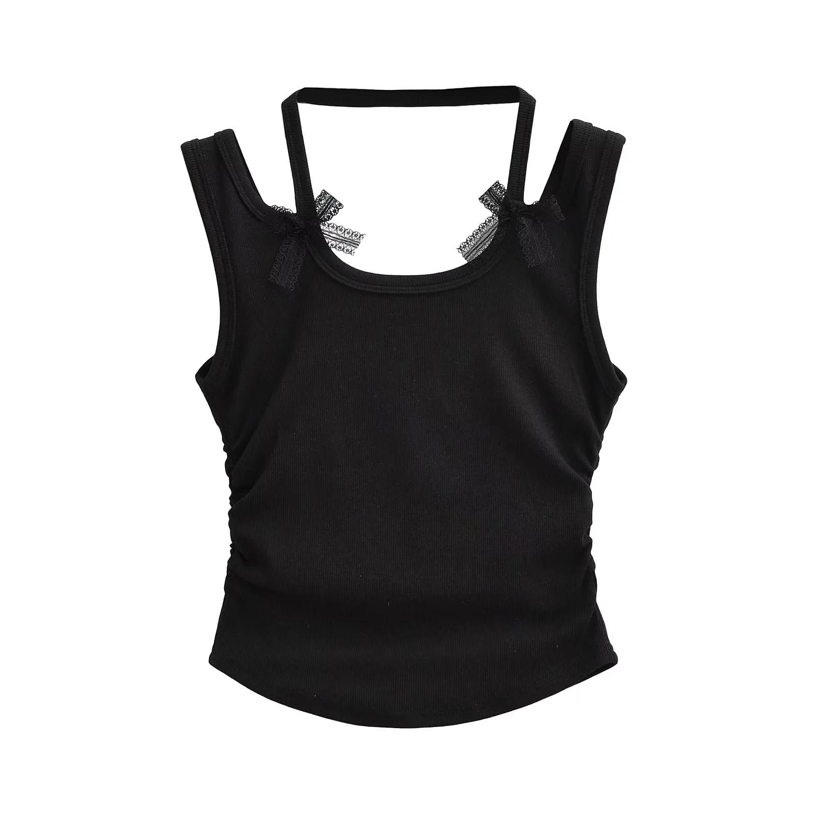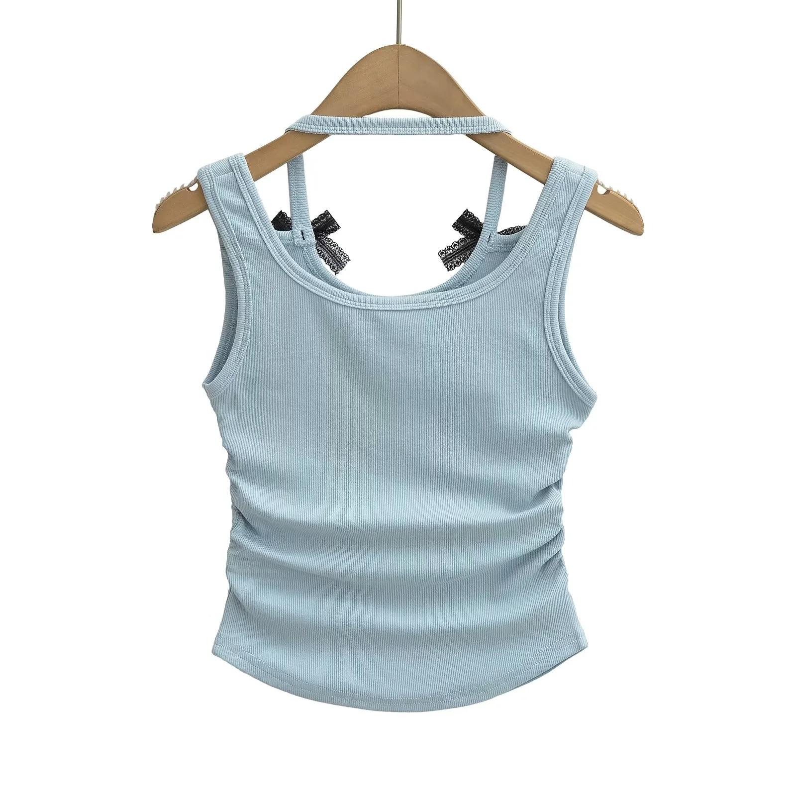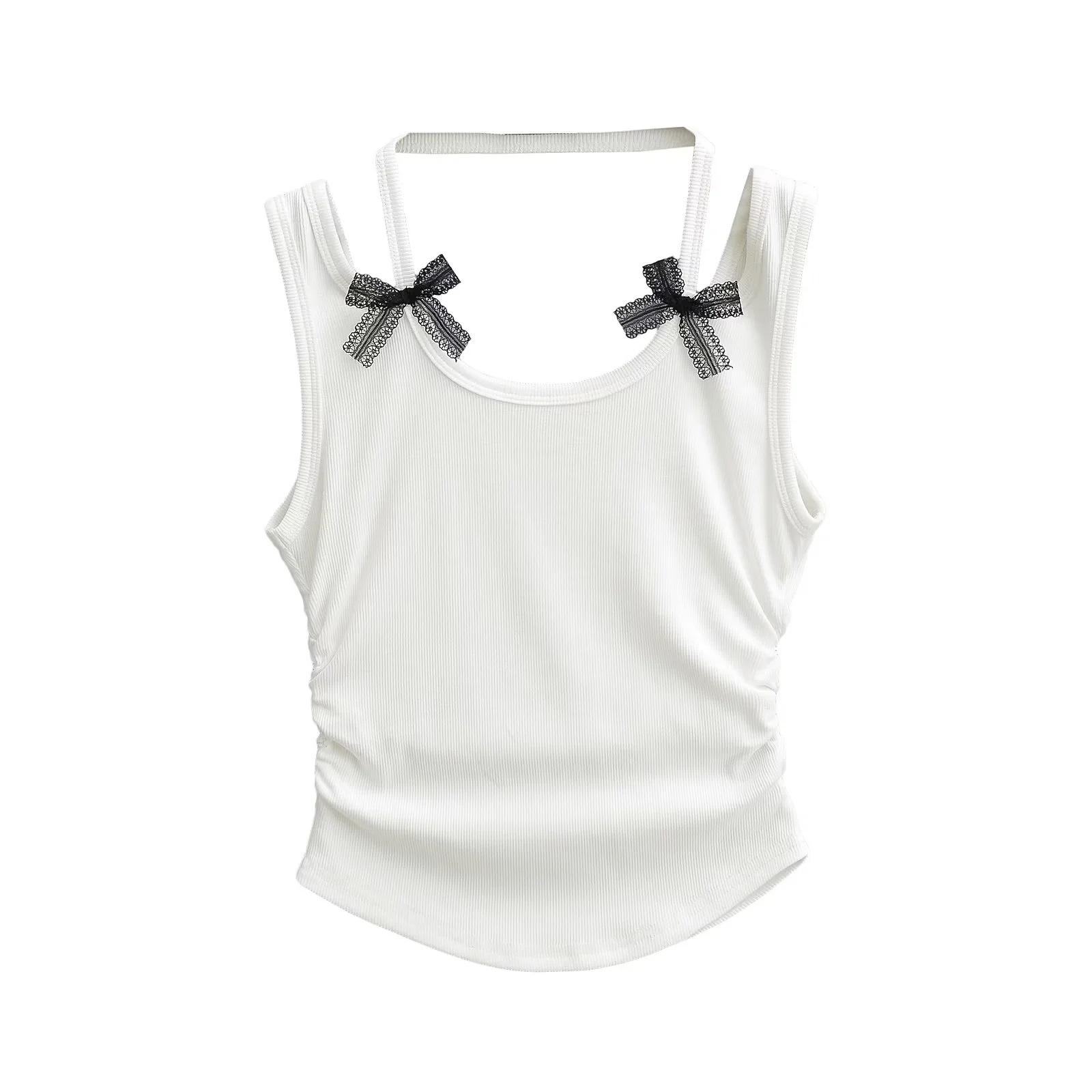 Chaleco sin mangas con cuello de lazo para mujer, prenda exterior de verano, diseño de estilo Pure Desire, top plisado, sexy y ajustado.