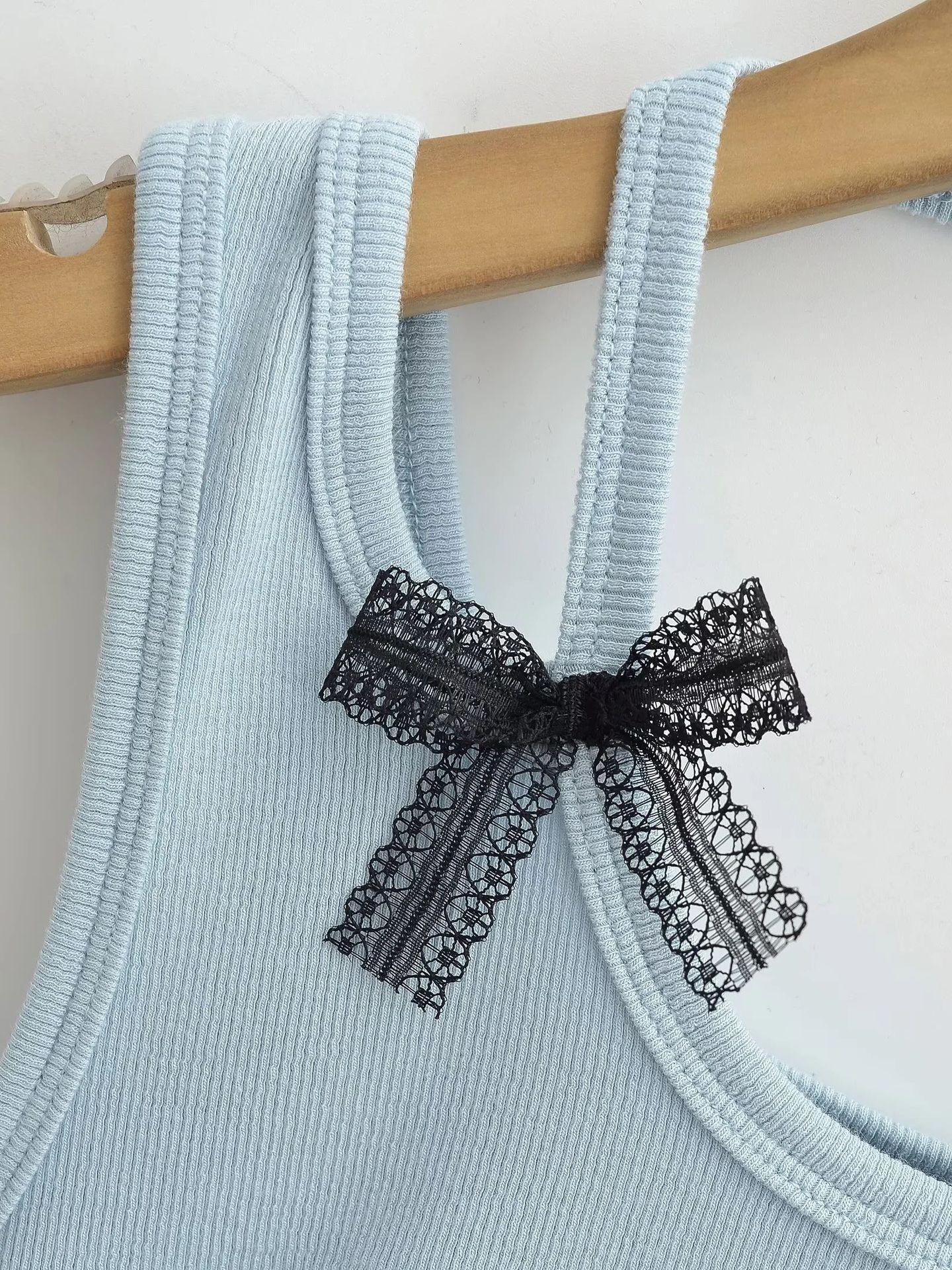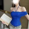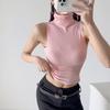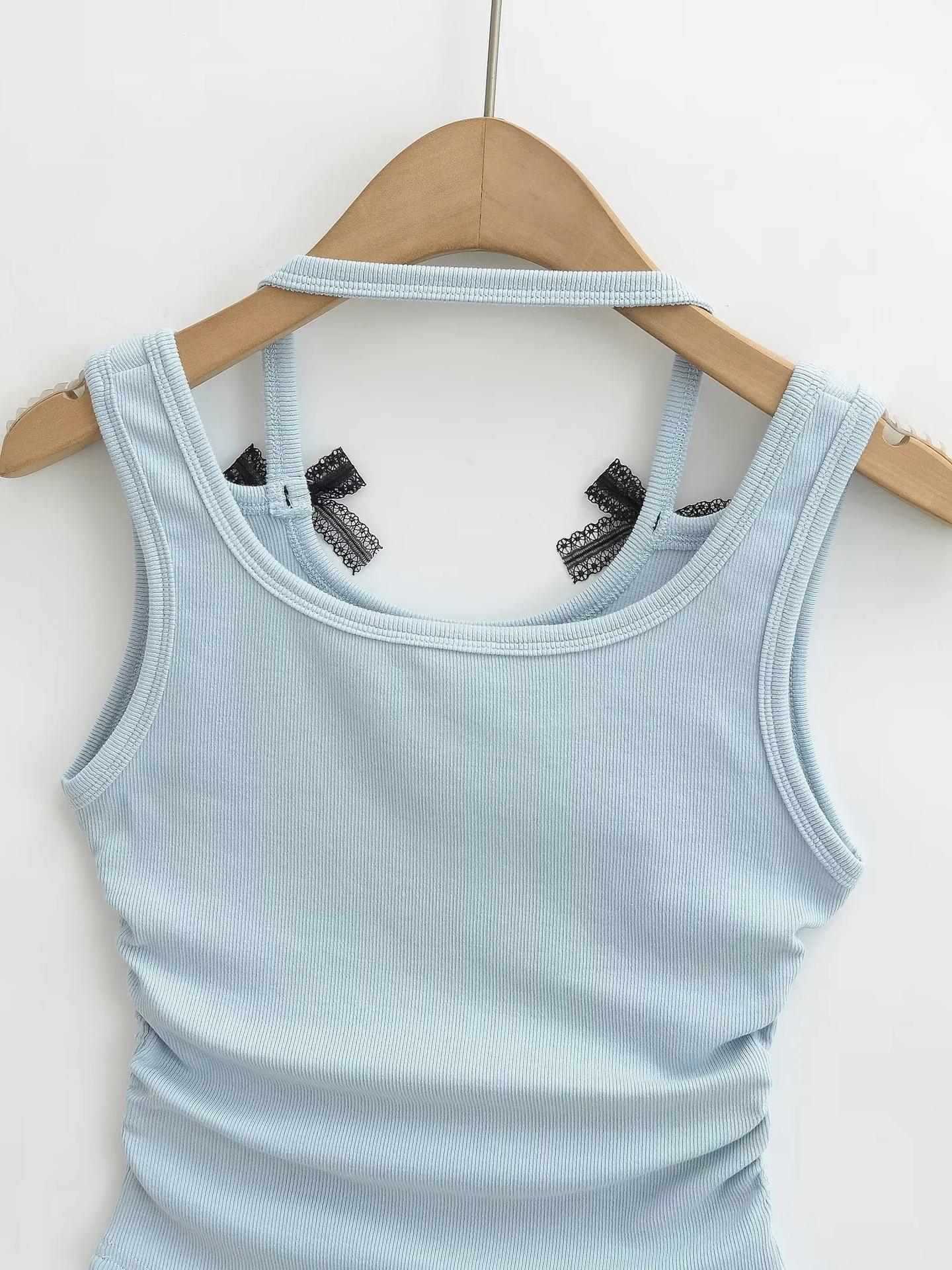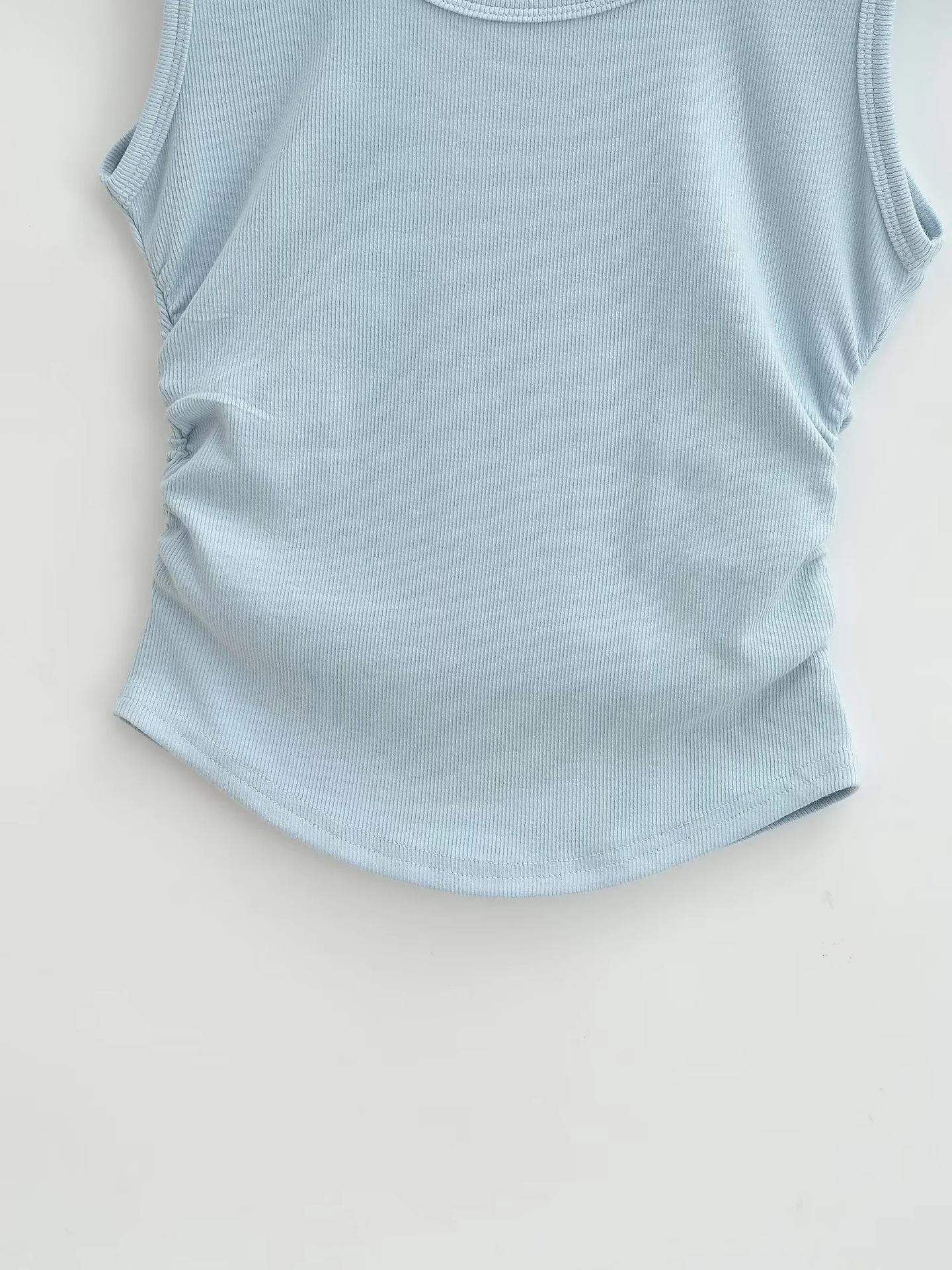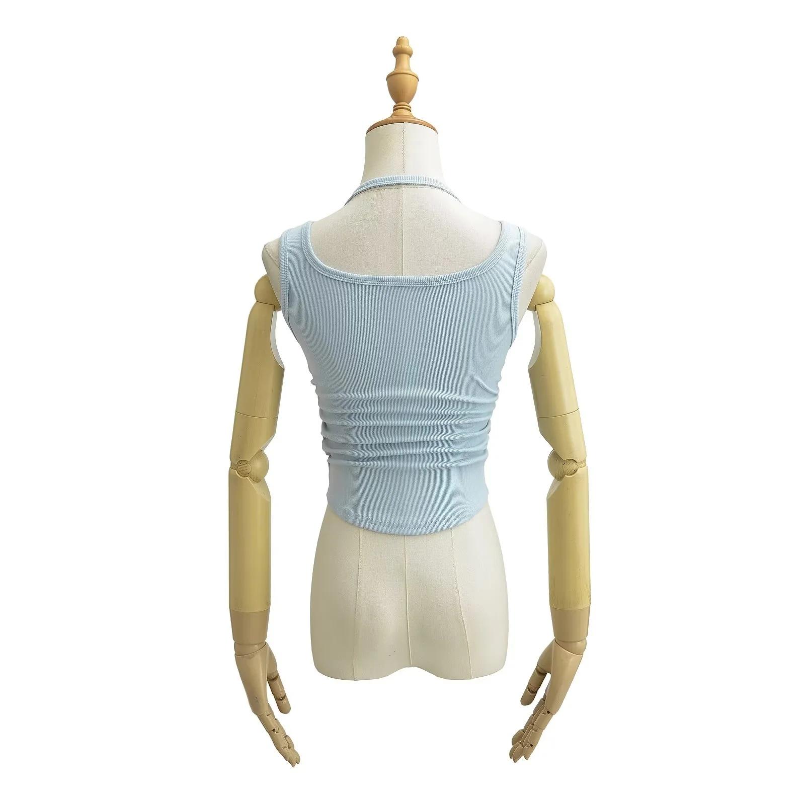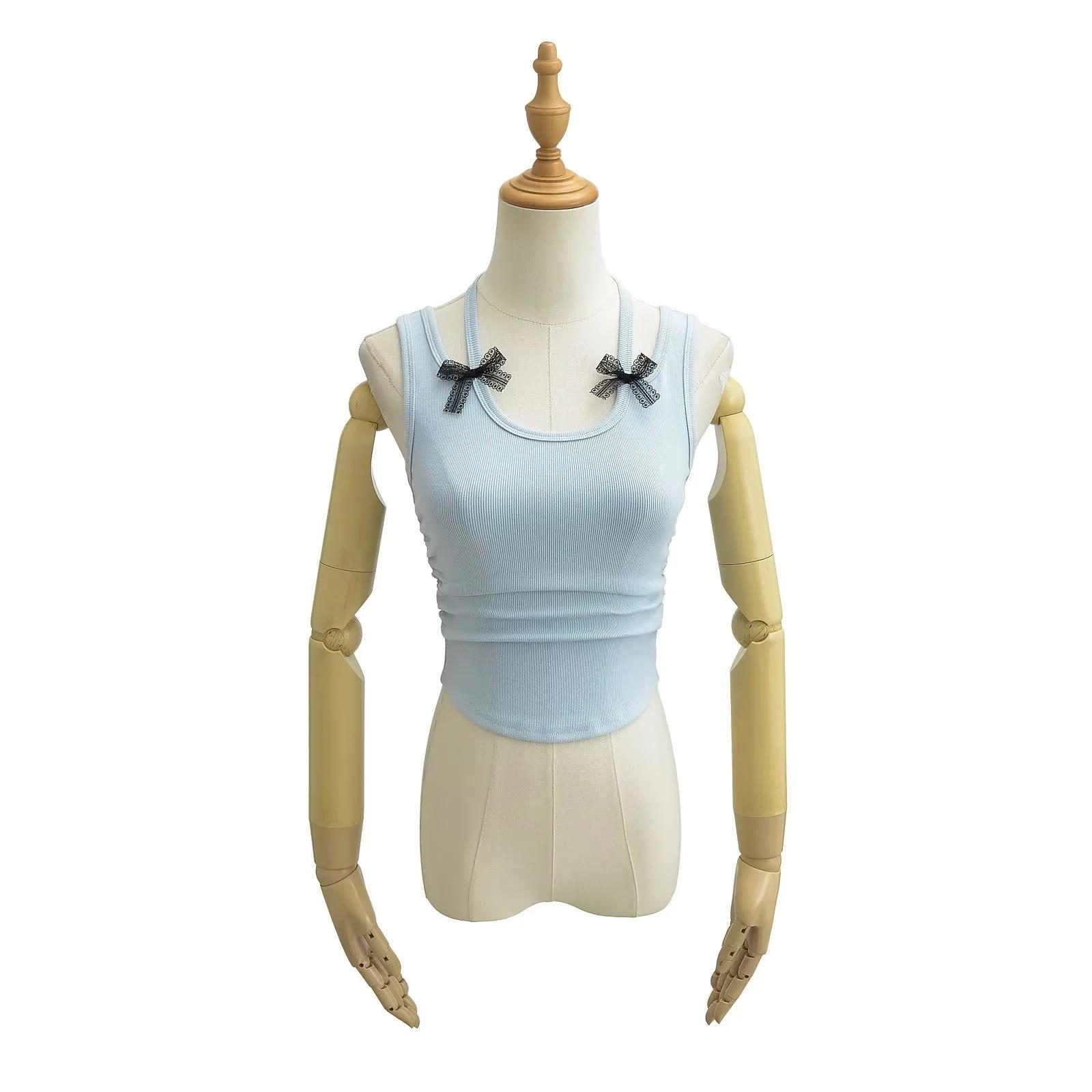 Chaleco sin mangas con cuello de lazo para mujer, prenda exterior de verano, diseño de estilo Pure Desire, top plisado, sexy y ajustado.
