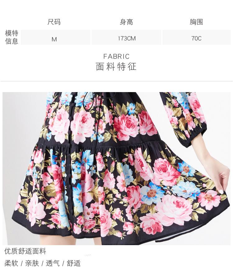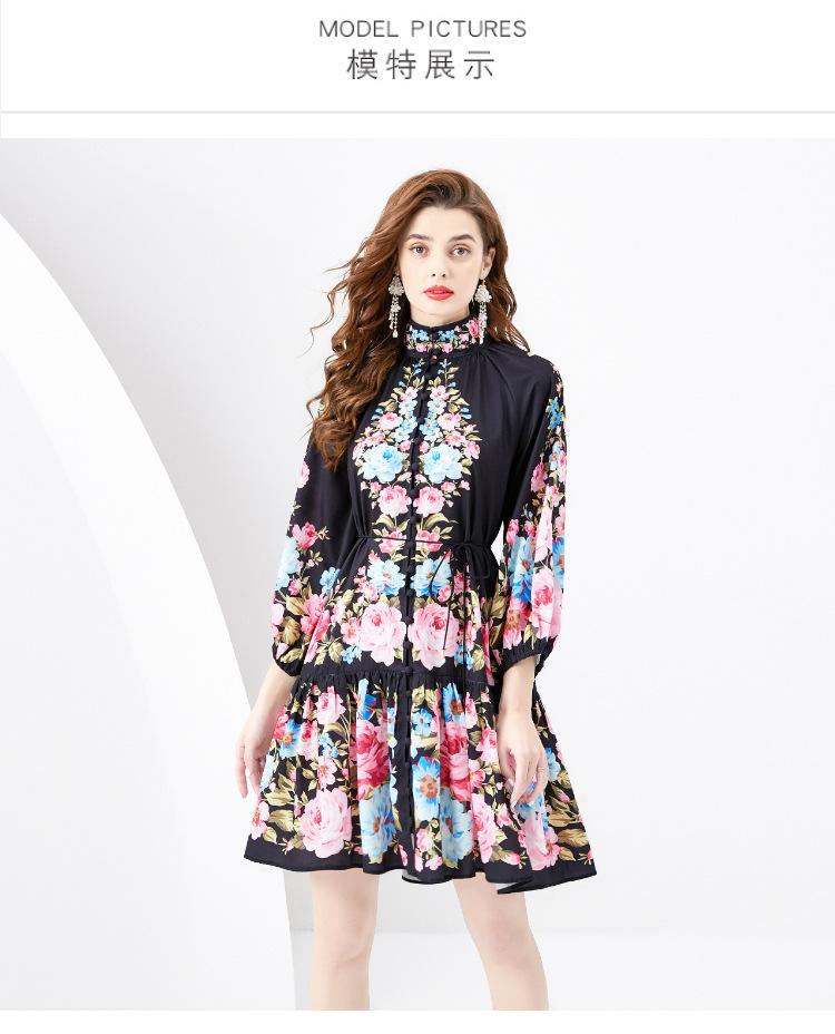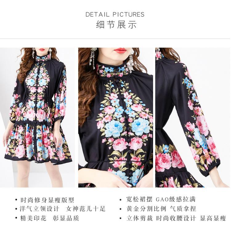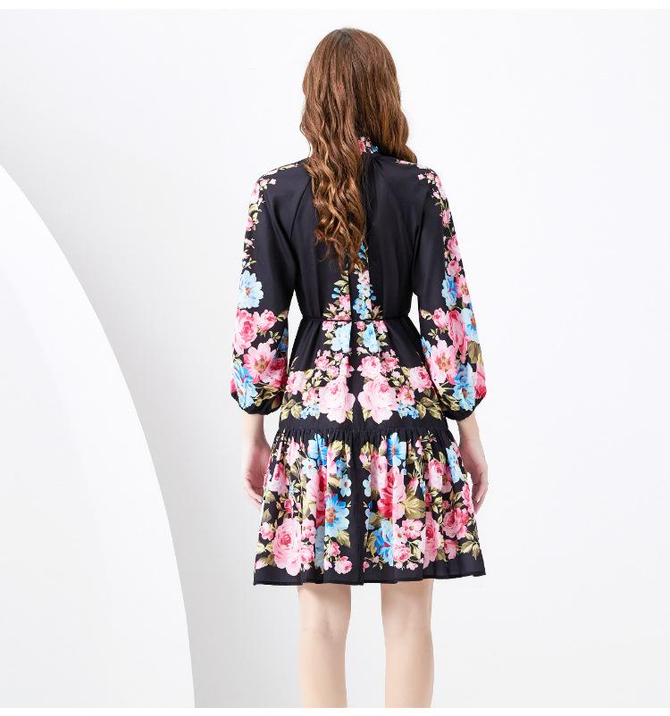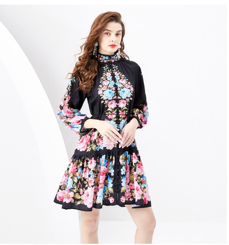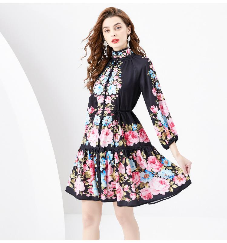 Vestido negro con estampado de hojas de loto y cuello medio alto para mujer europea y americana de primavera y verano 2024, nuevo de Amazon.