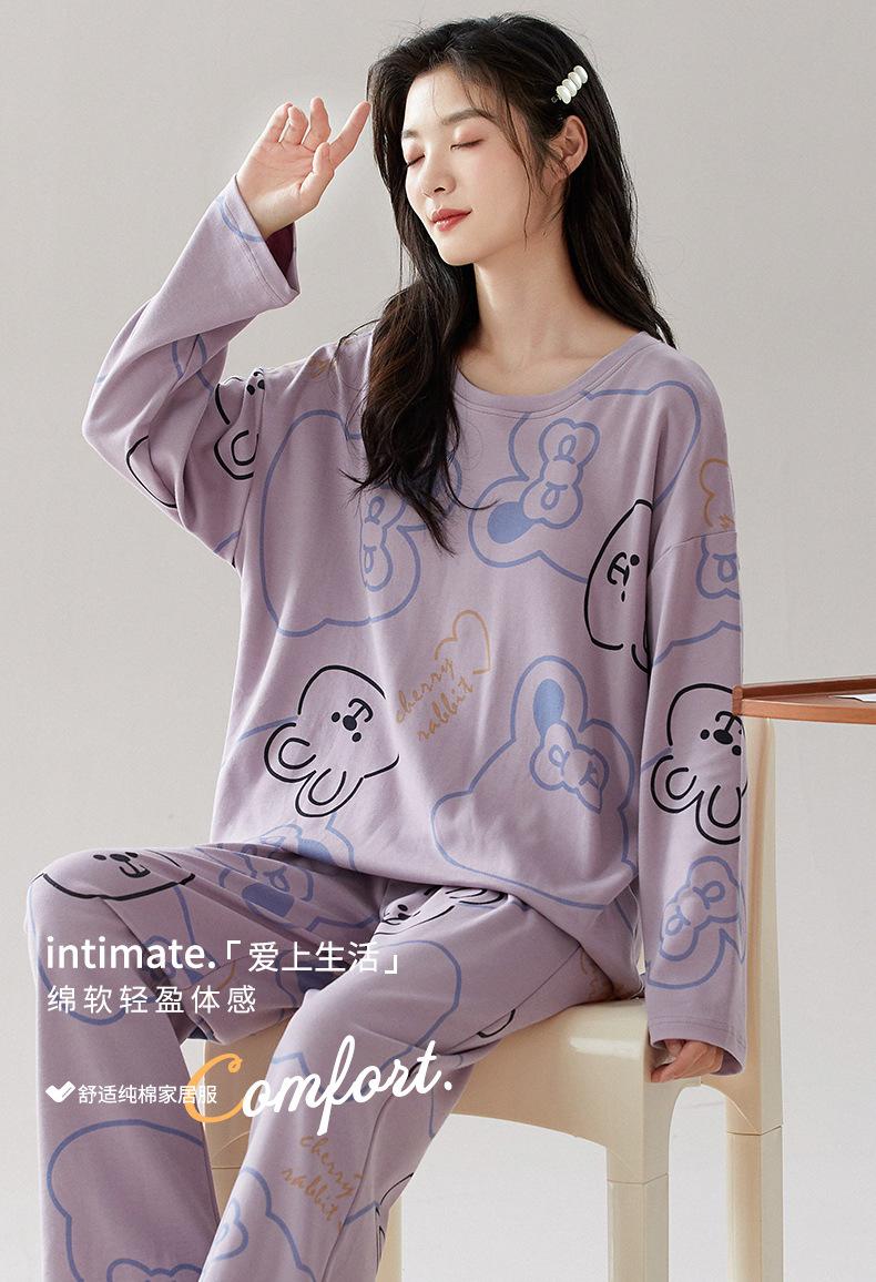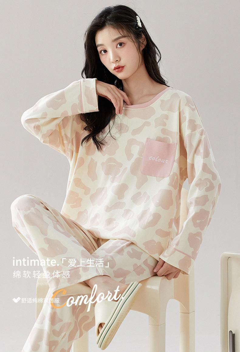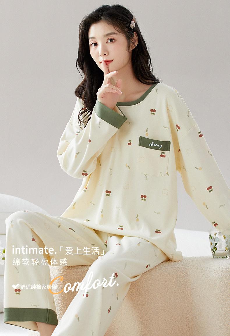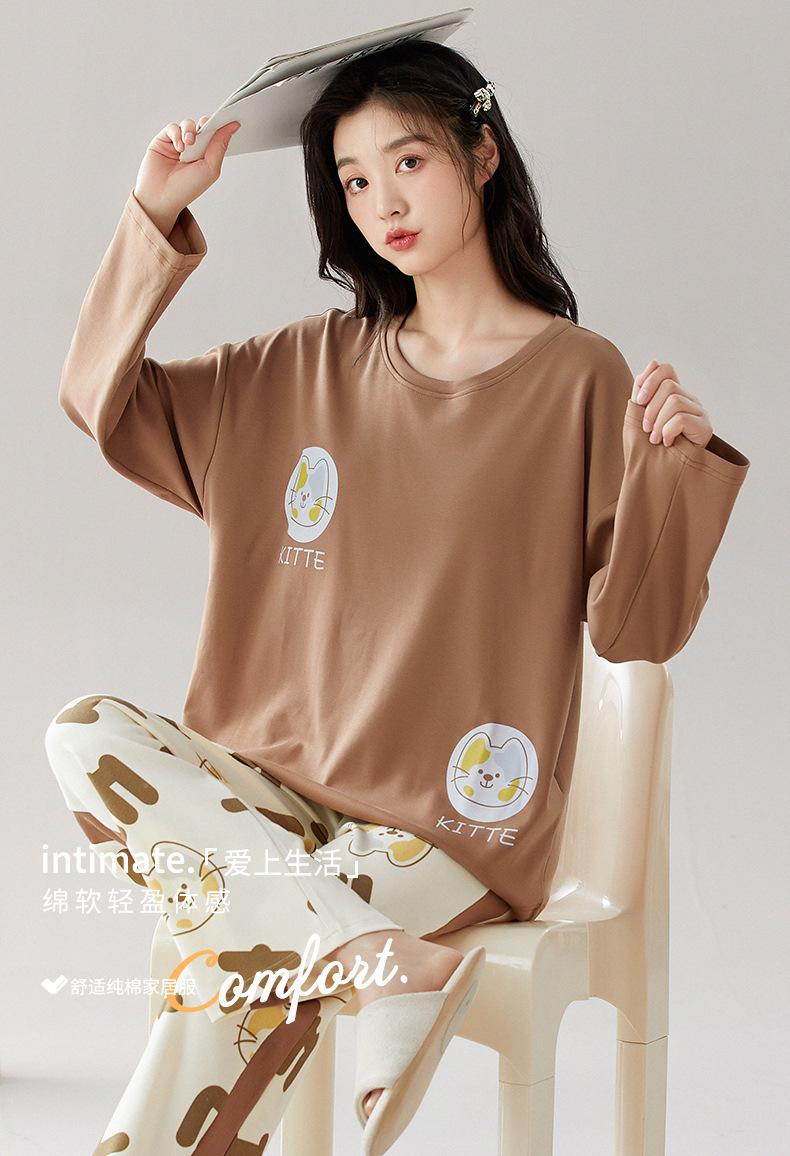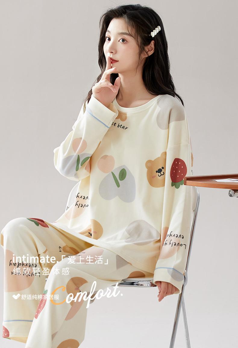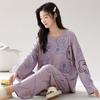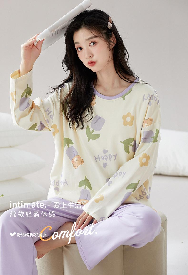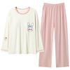 Lushi 2024 nuevo pijama de mujer primavera y otoño algodón manga larga cuello redondo jersey lindo algodón ropa de casa traje
