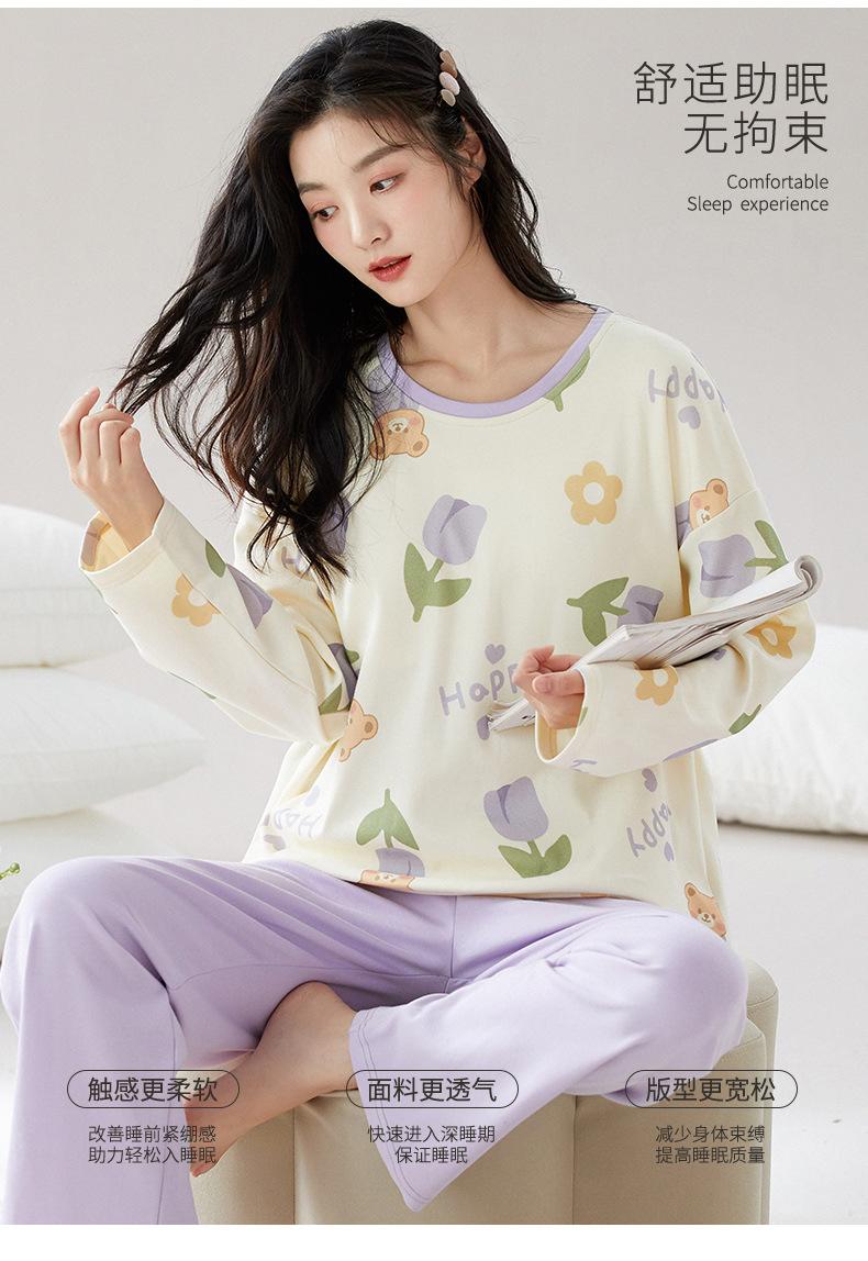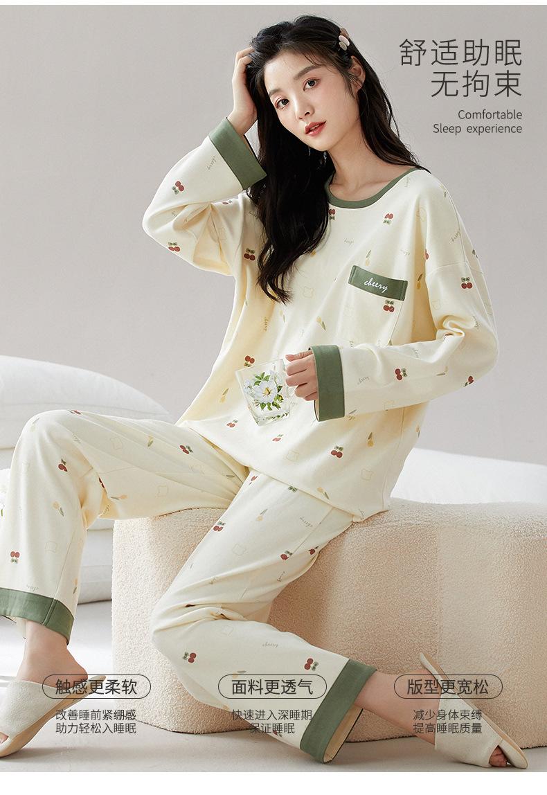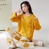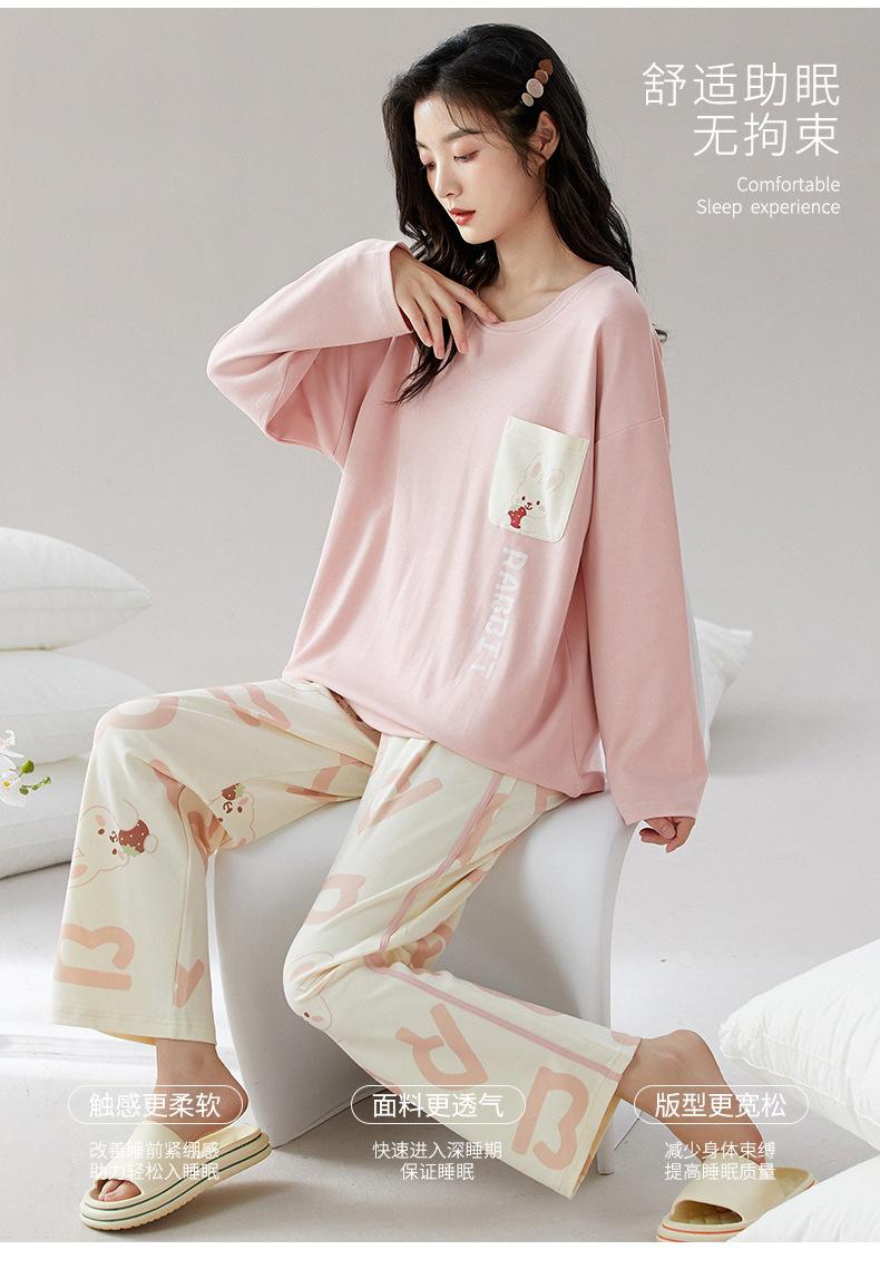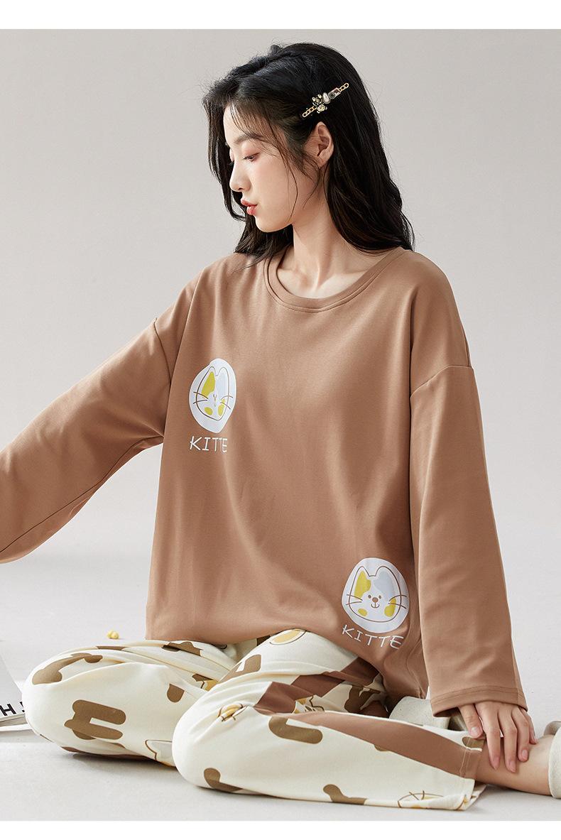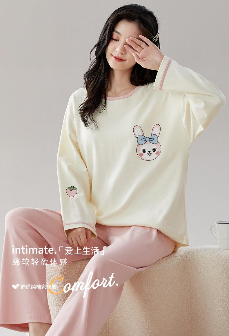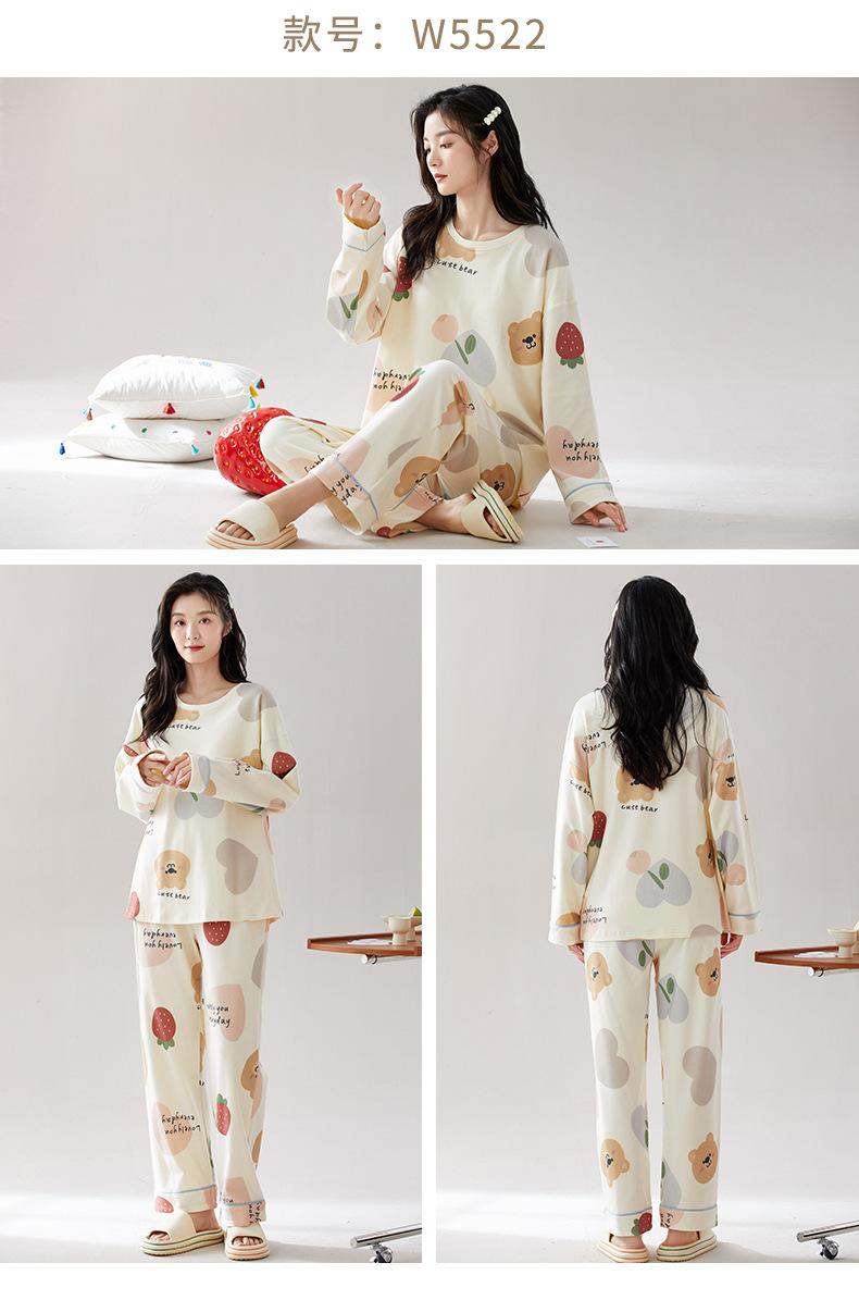 Lushi 2024 nuevo pijama de mujer primavera y otoño algodón manga larga cuello redondo jersey lindo algodón ropa de casa traje