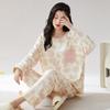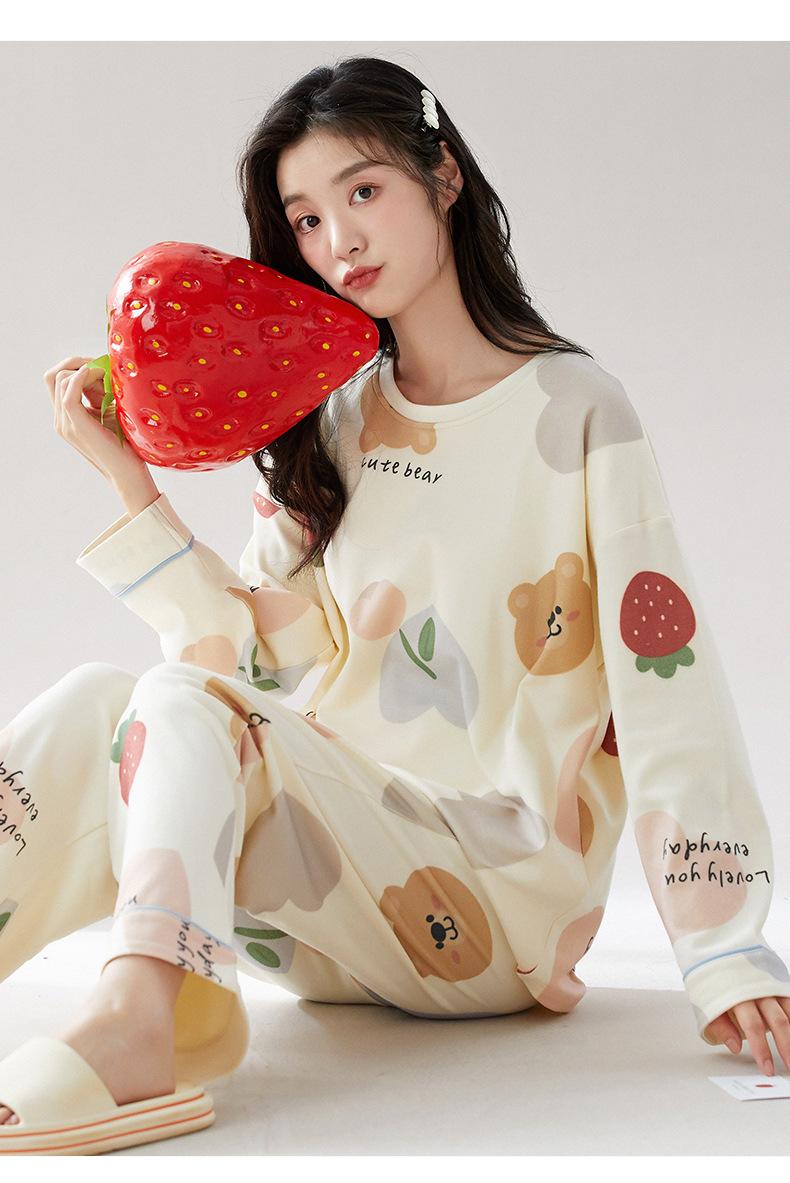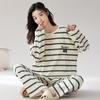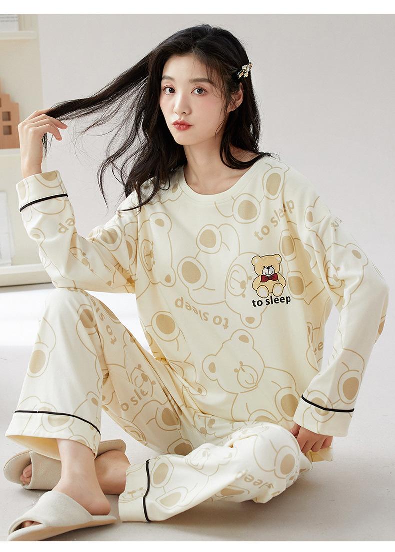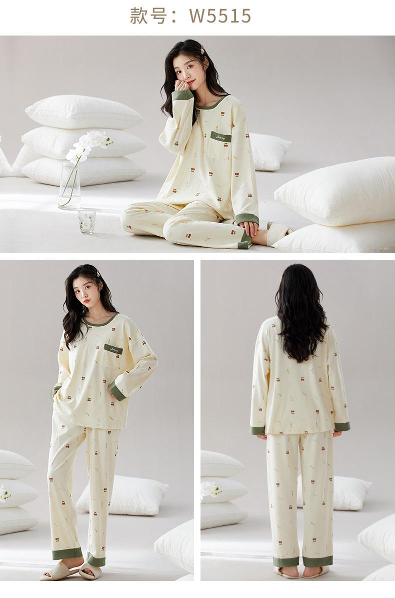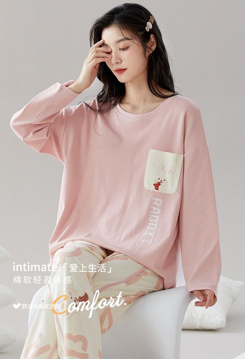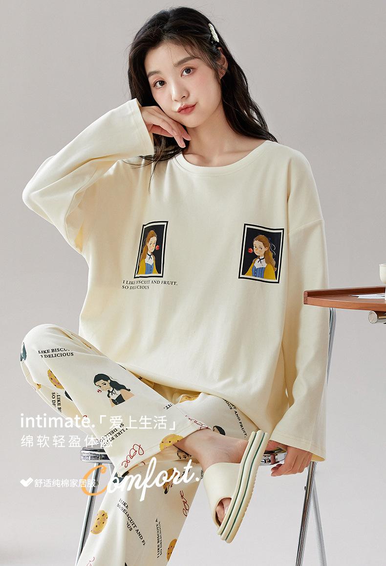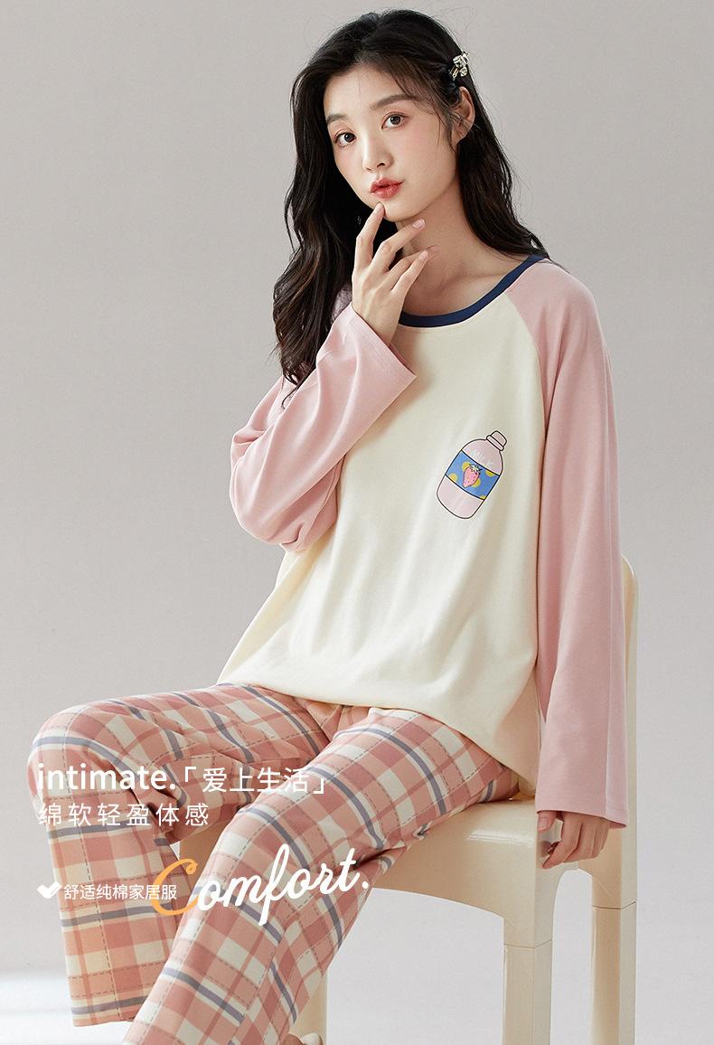 Lushi 2024 nuevo pijama de mujer primavera y otoño algodón manga larga cuello redondo jersey lindo algodón ropa de casa traje