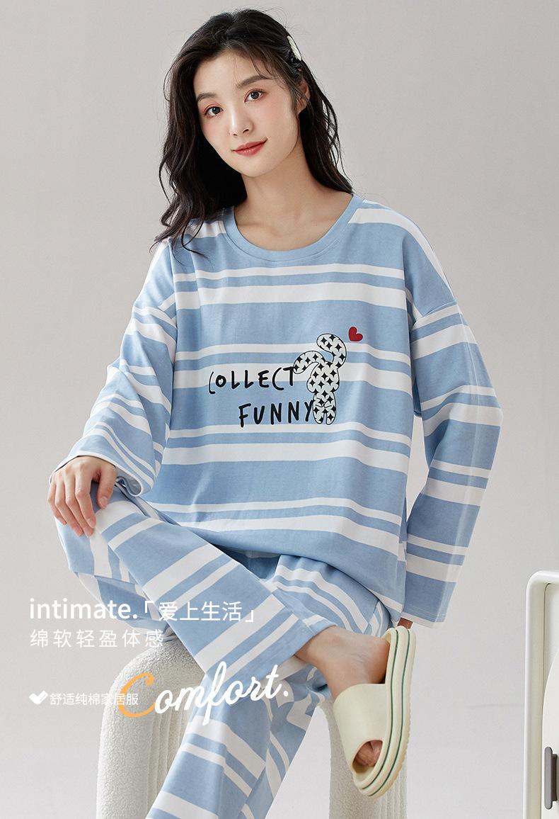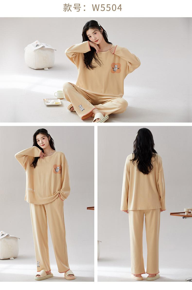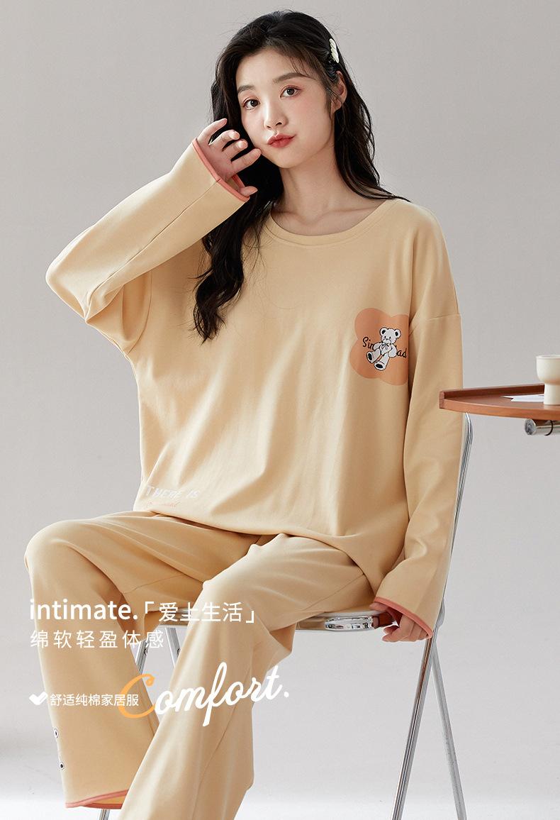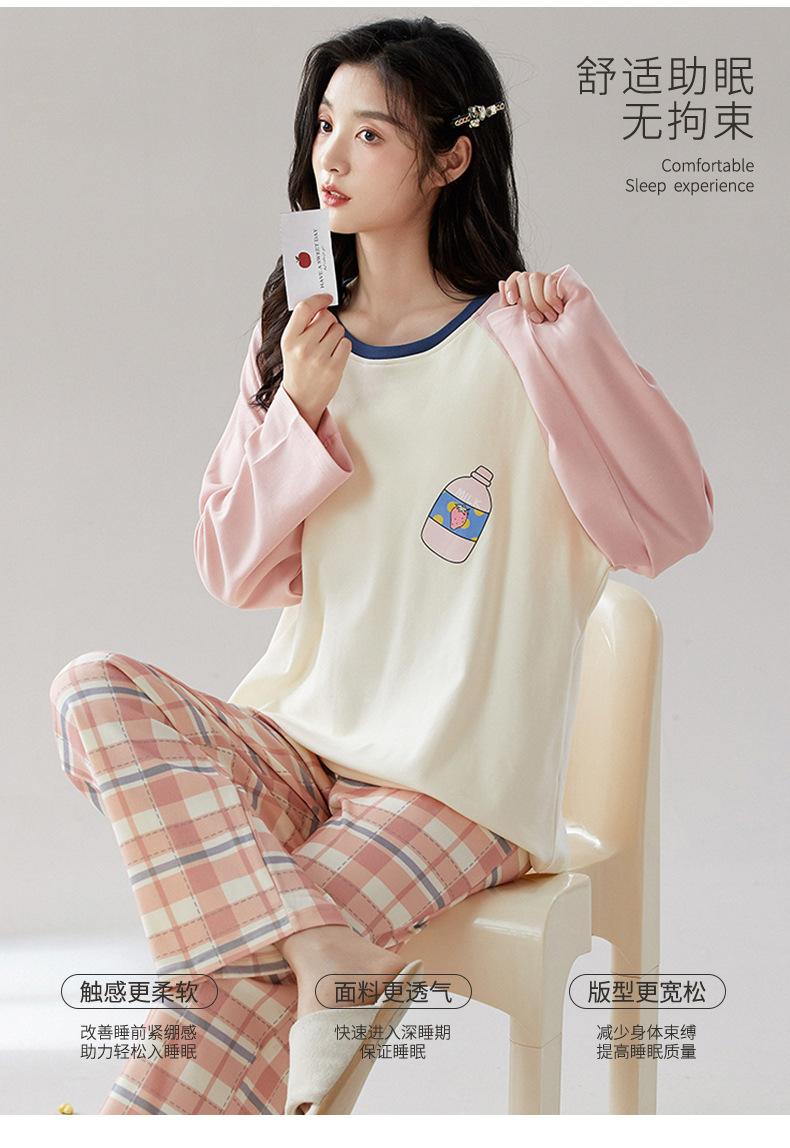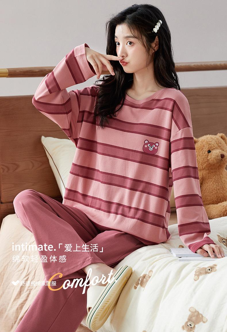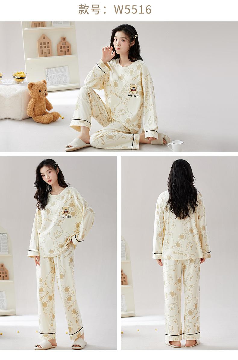 Lushi 2024 nuevo pijama de mujer primavera y otoño algodón manga larga cuello redondo jersey lindo algodón ropa de casa traje