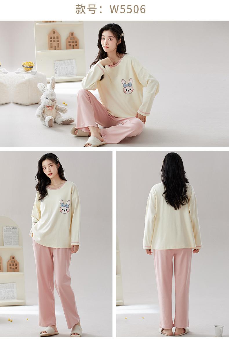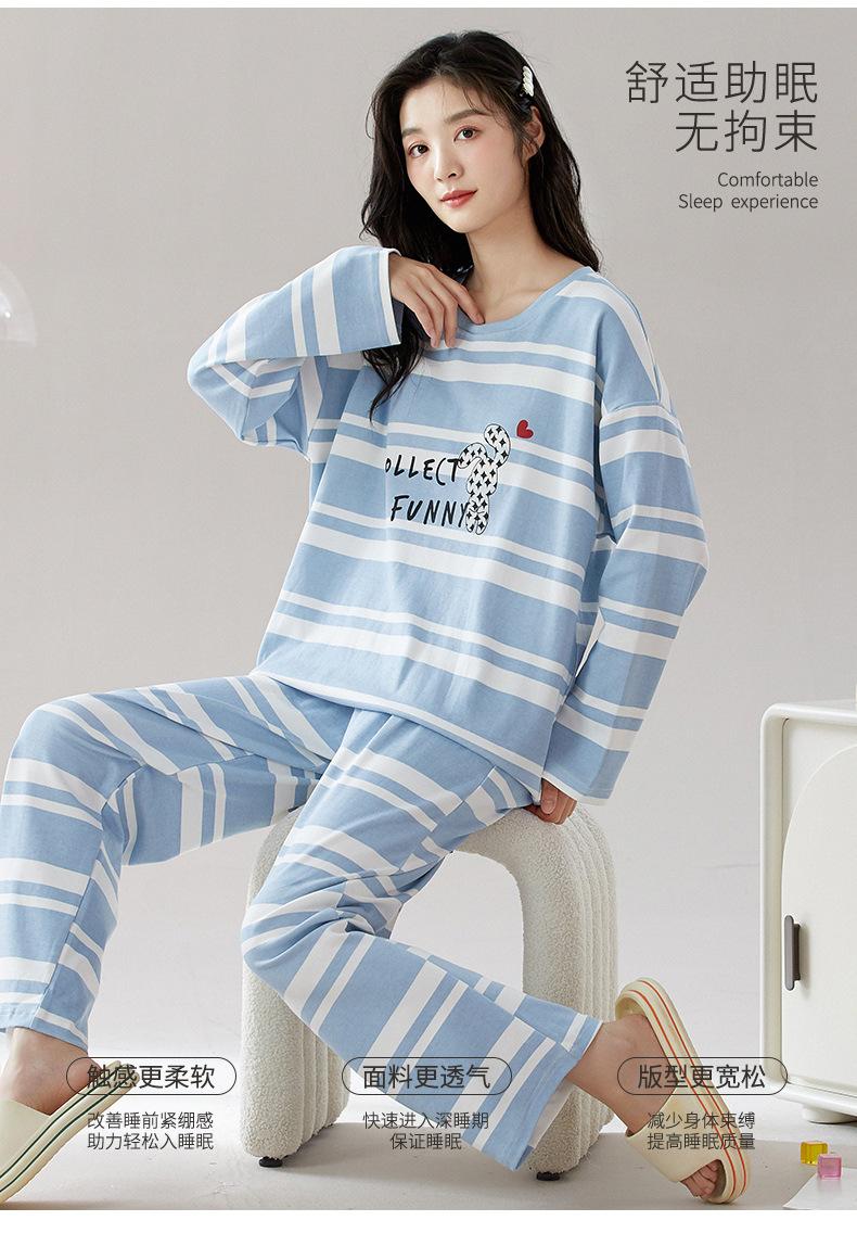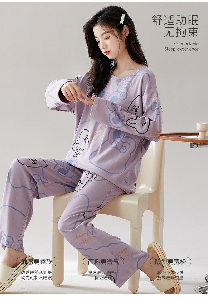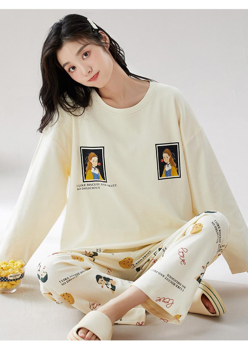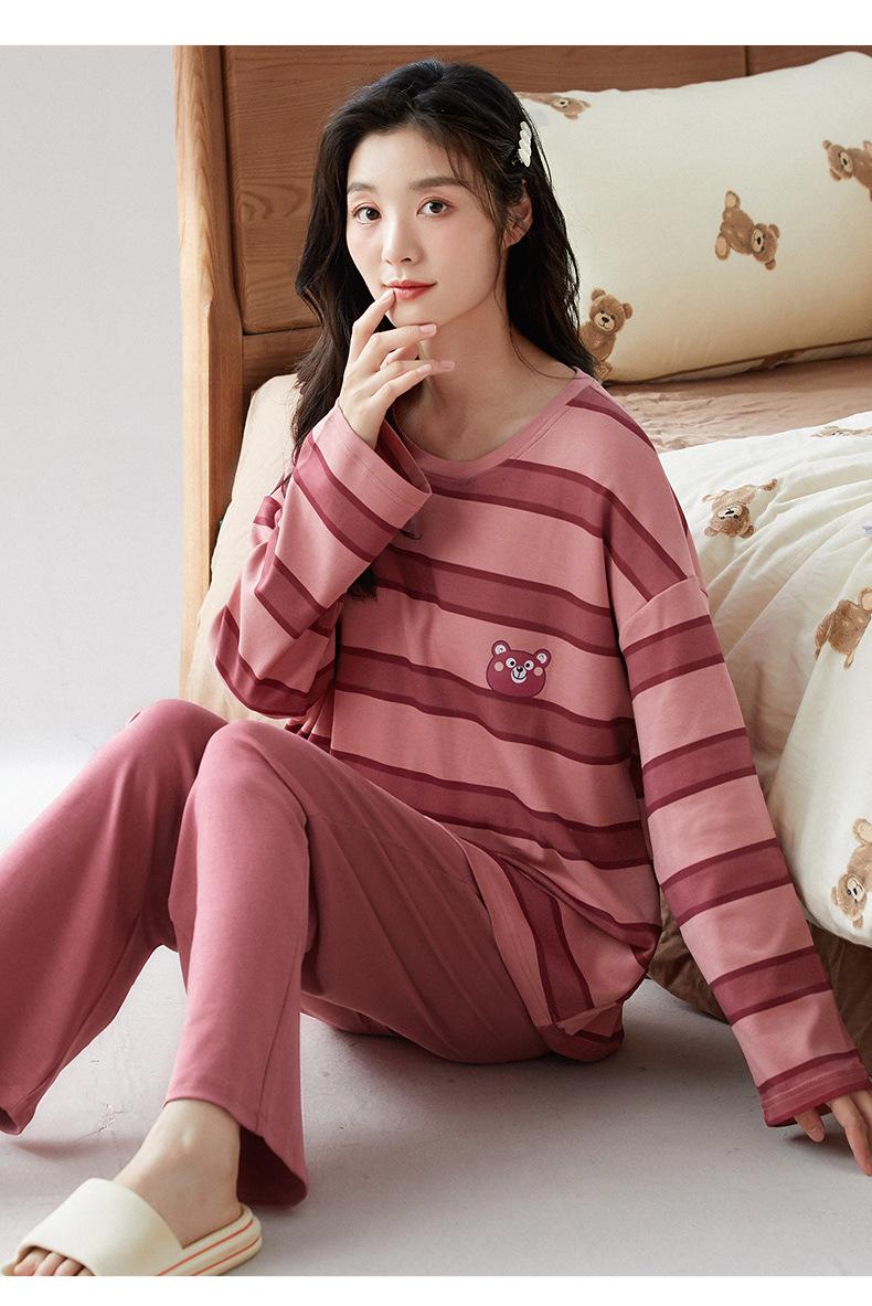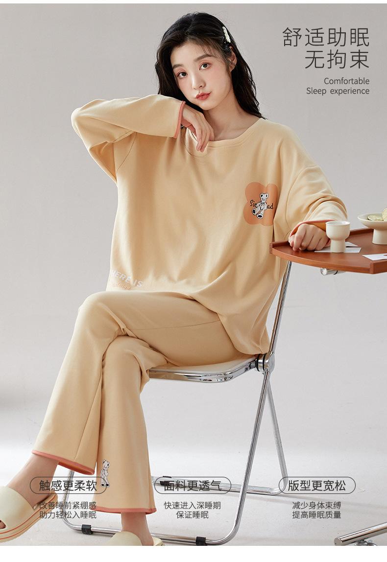 Lushi 2024 nuevo pijama de mujer primavera y otoño algodón manga larga cuello redondo jersey lindo algodón ropa de casa traje
