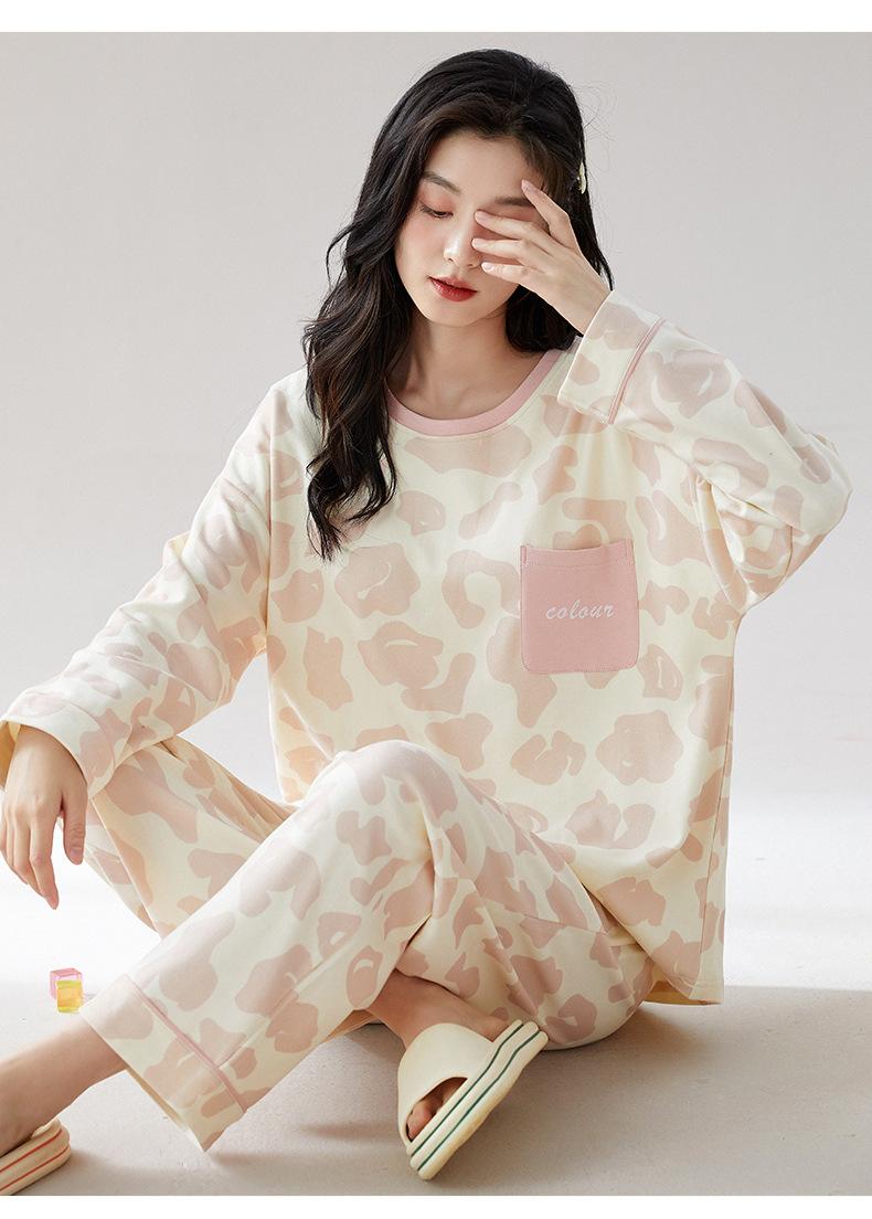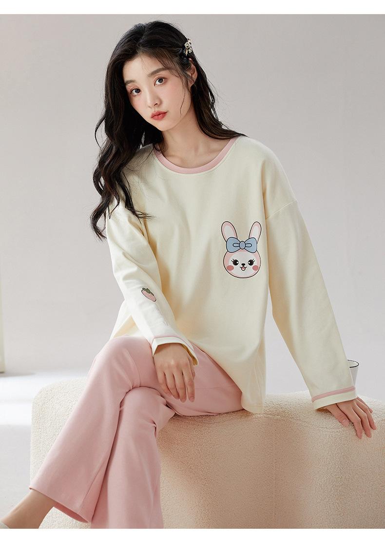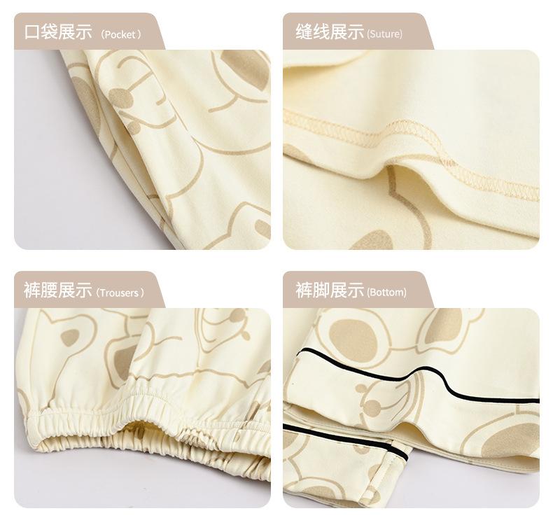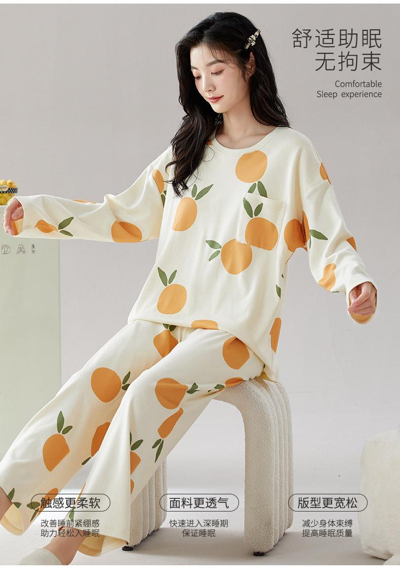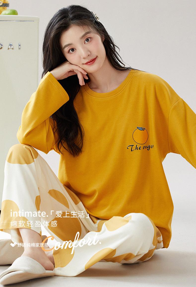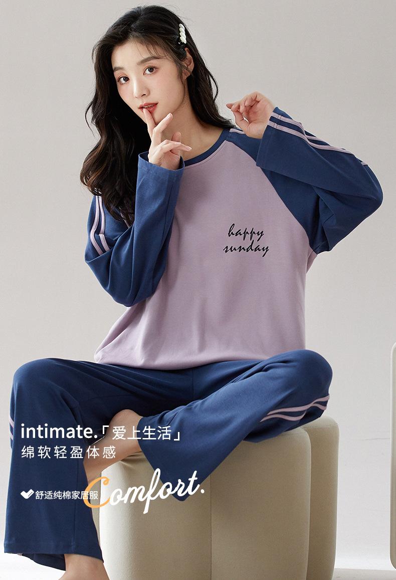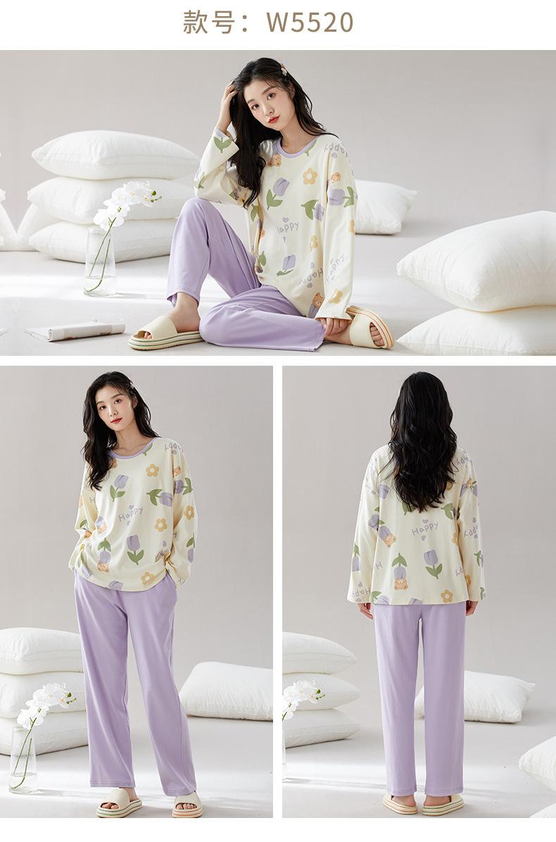 Lushi 2024 nuevo pijama de mujer primavera y otoño algodón manga larga cuello redondo jersey lindo algodón ropa de casa traje