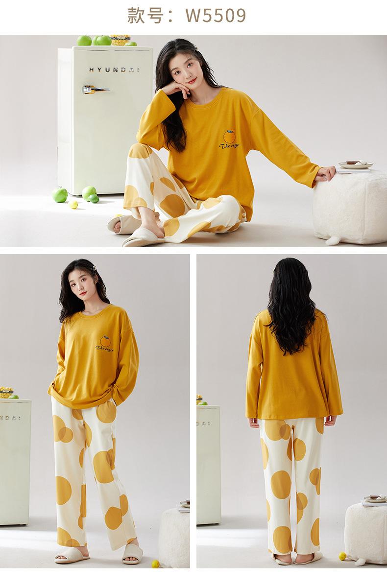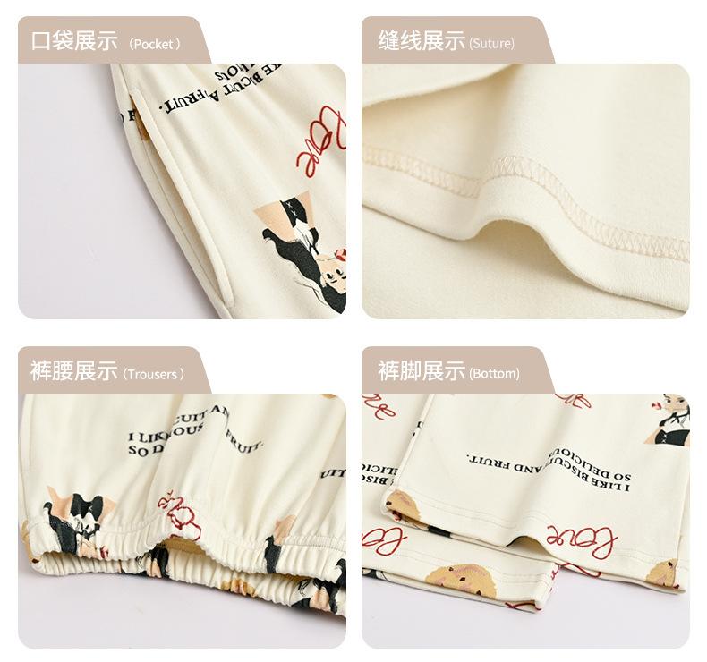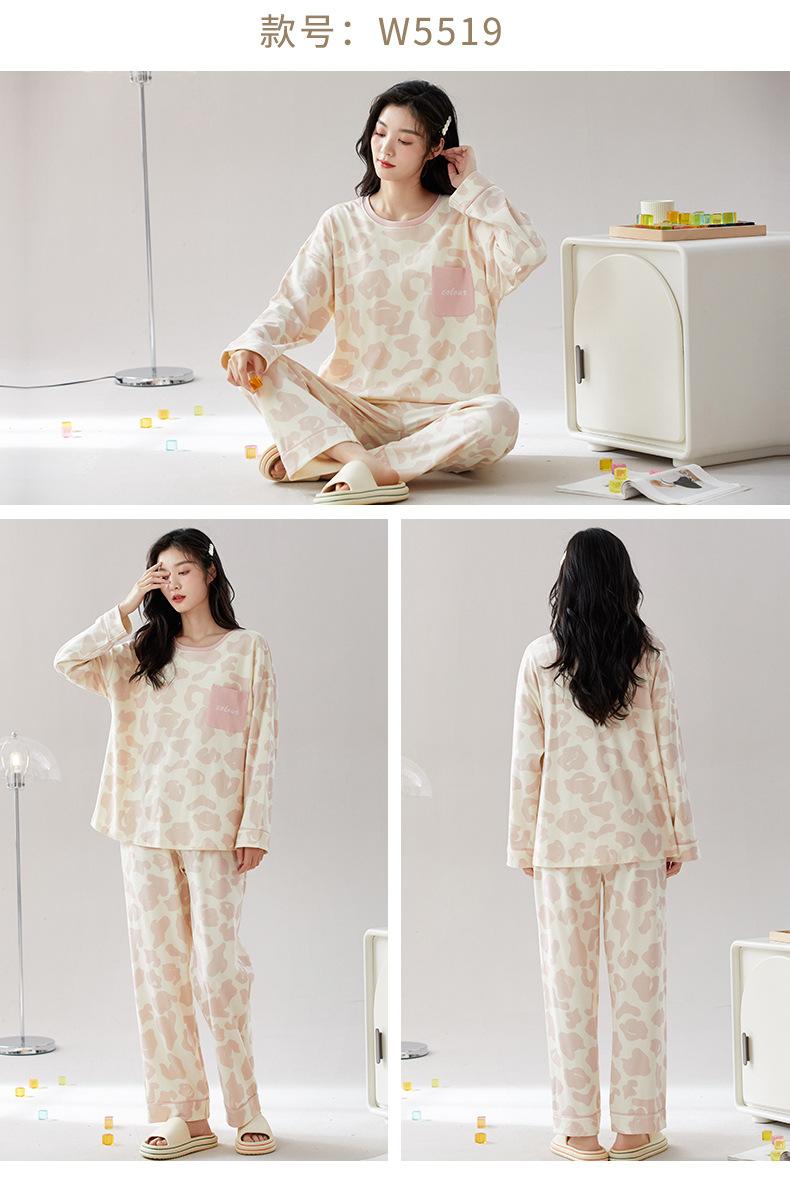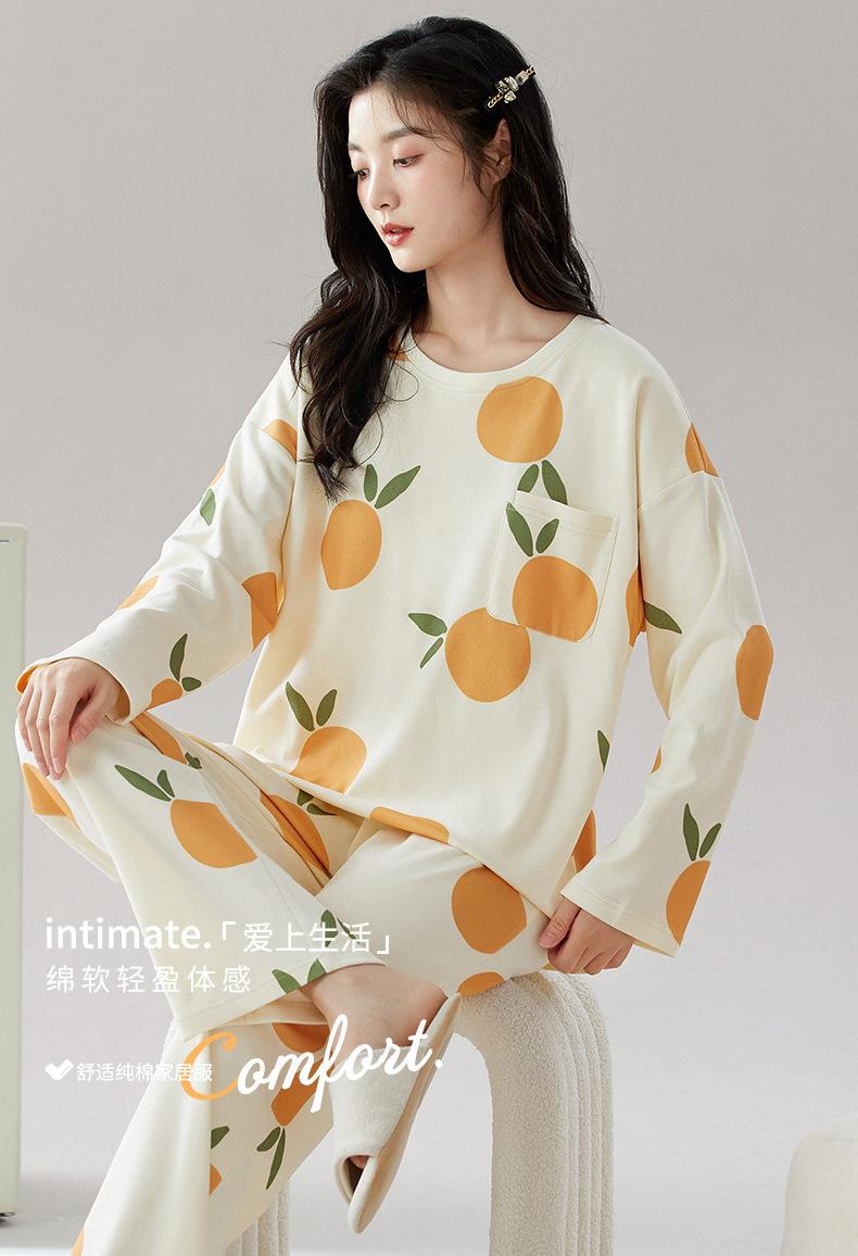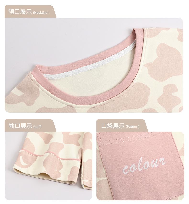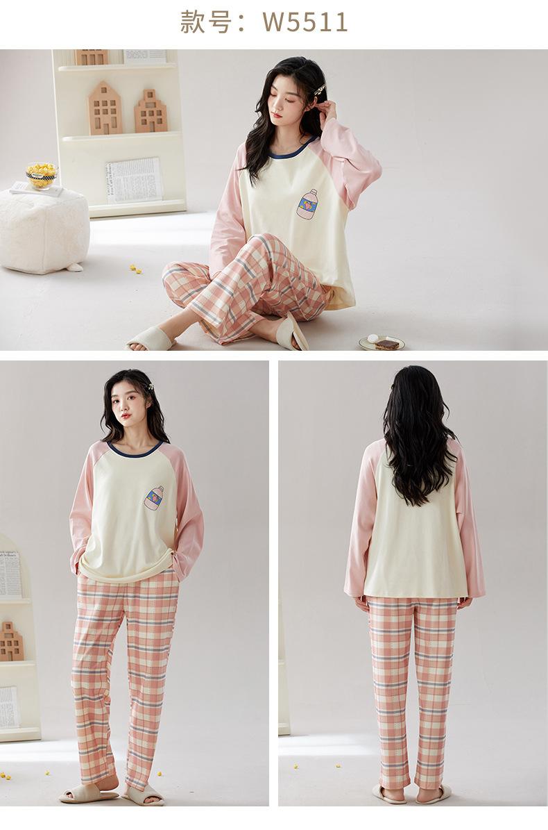 Lushi 2024 nuevo pijama de mujer primavera y otoño algodón manga larga cuello redondo jersey lindo algodón ropa de casa traje