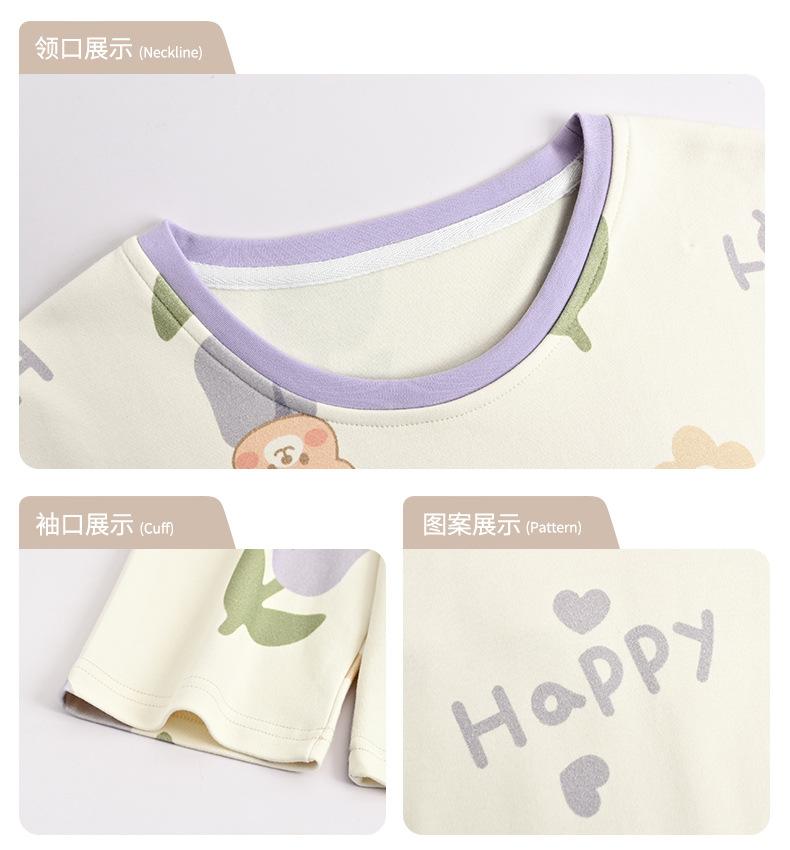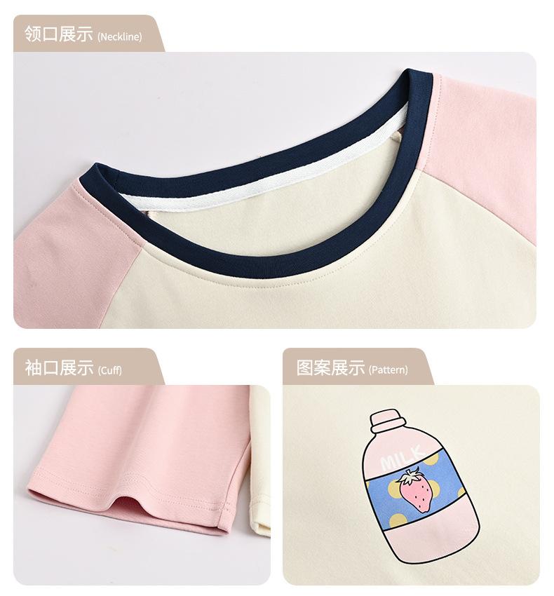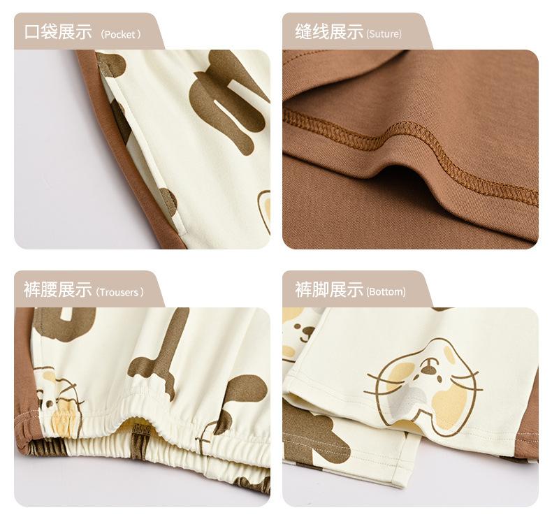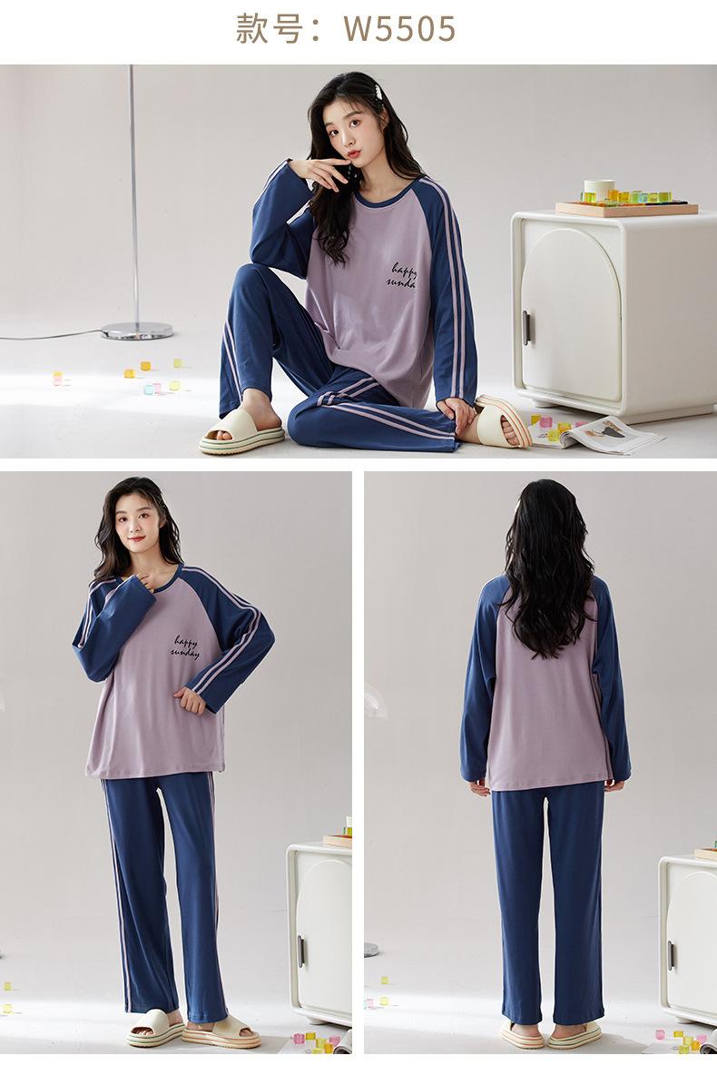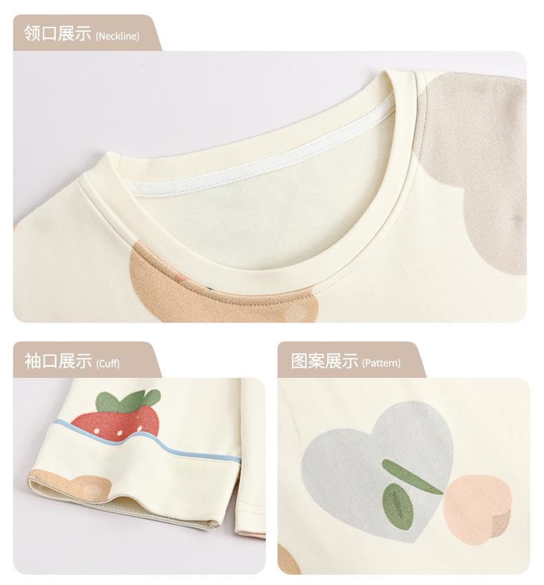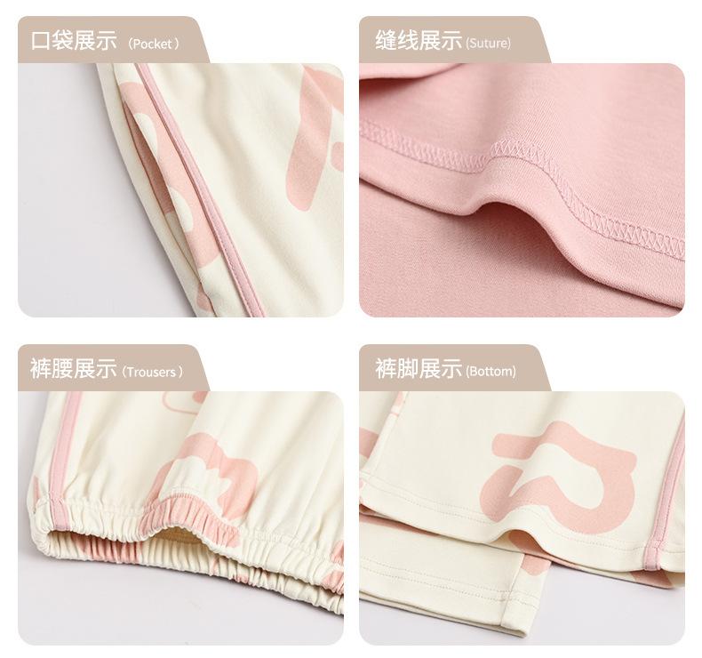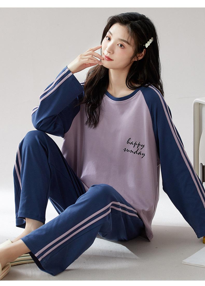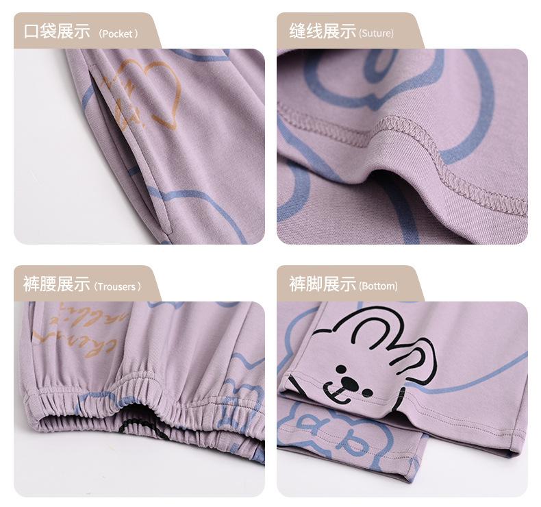 Lushi 2024 nuevo pijama de mujer primavera y otoño algodón manga larga cuello redondo jersey lindo algodón ropa de casa traje