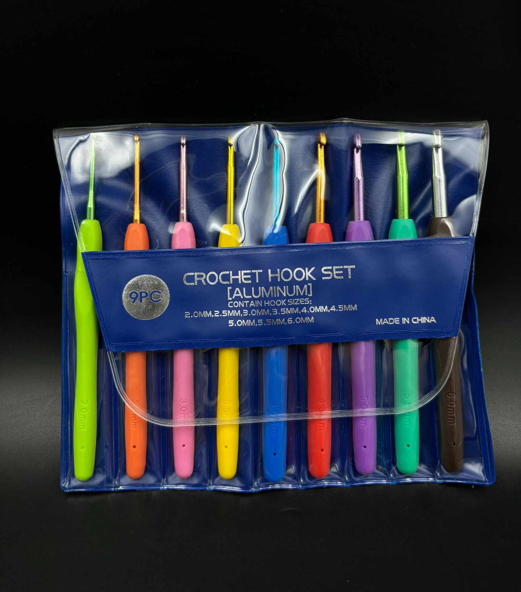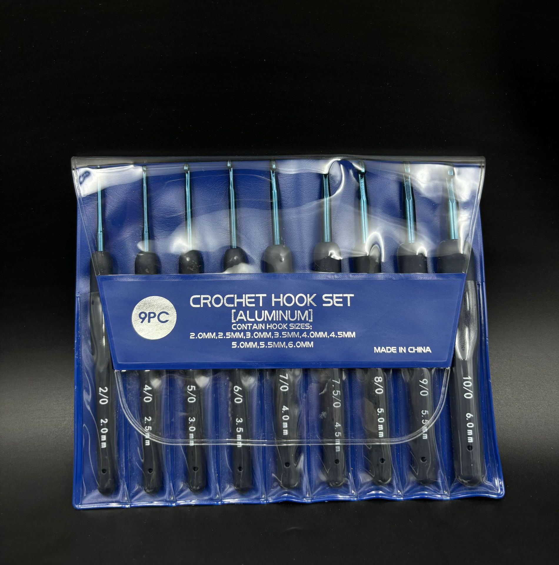 Suministro de bolsa de PVC de crochet con mango suave de TPR, combinación de traje, herramienta de tejido, aguja de suéter, mango suave, crochet de aluminio, 9 juegos