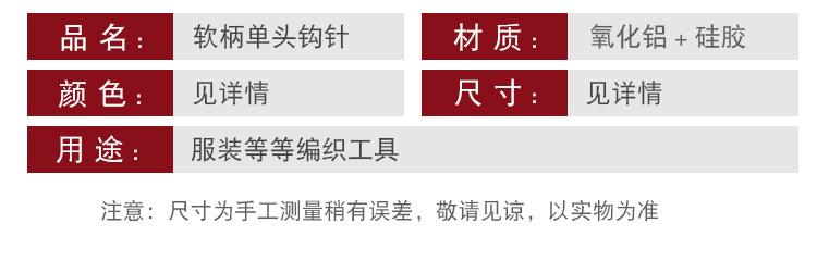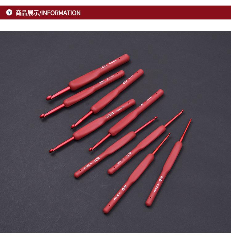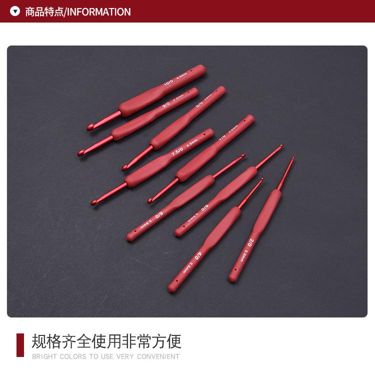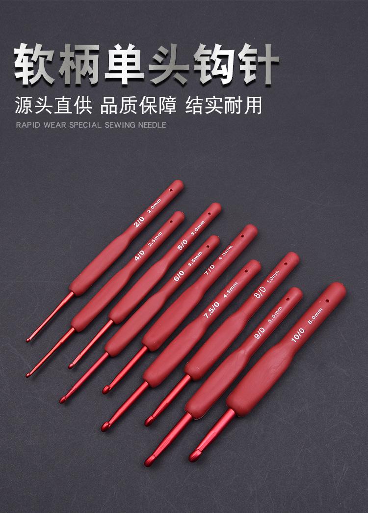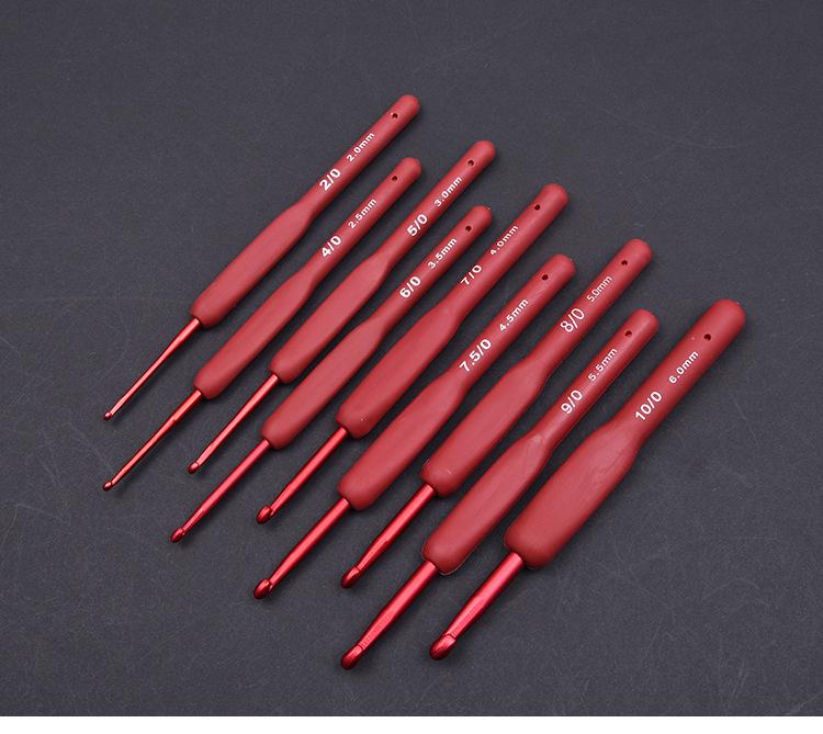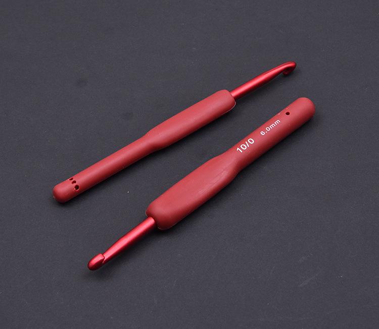 Ganchillo de mango rojo suave, ganchillo simple, herramienta para tejer a mano DIY, gancho de óxido de aluminio, aguja de lana, ganchillo de silicona antideslizante