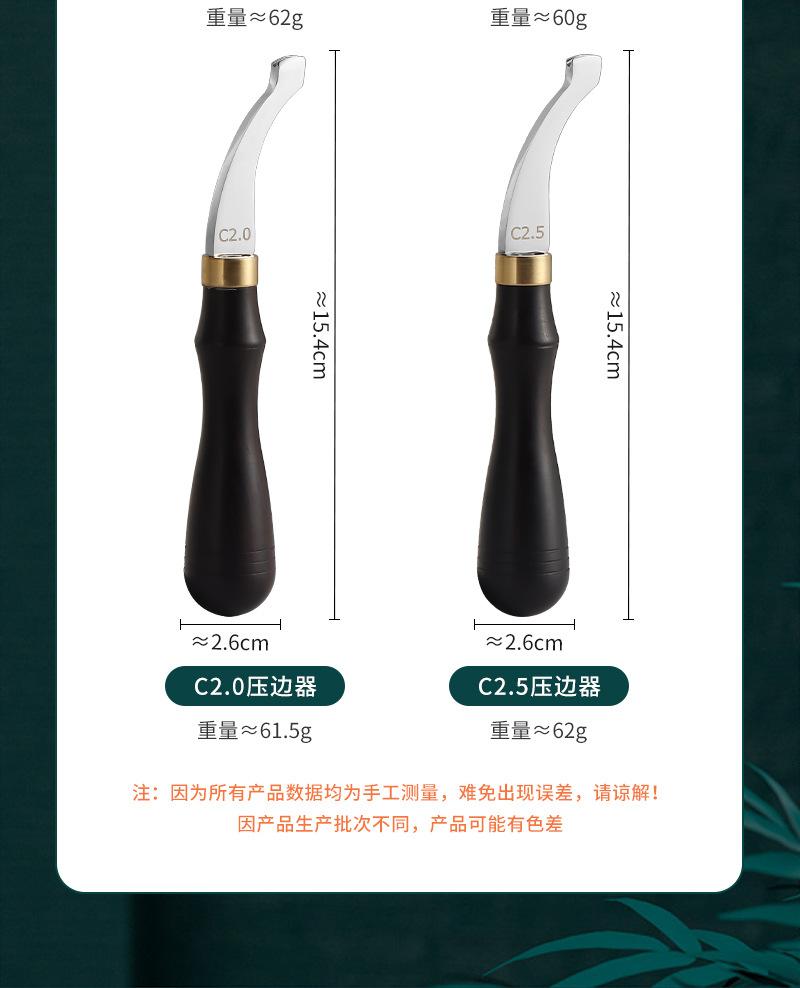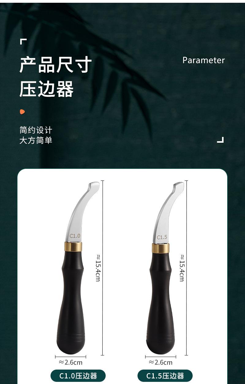 Línea de bordes con ranuras ligeras de ébano, herramientas de cuero hechas a mano, tamaño pequeño, arco de borde, parachoques de borde, recortador de línea de bordes de cuero