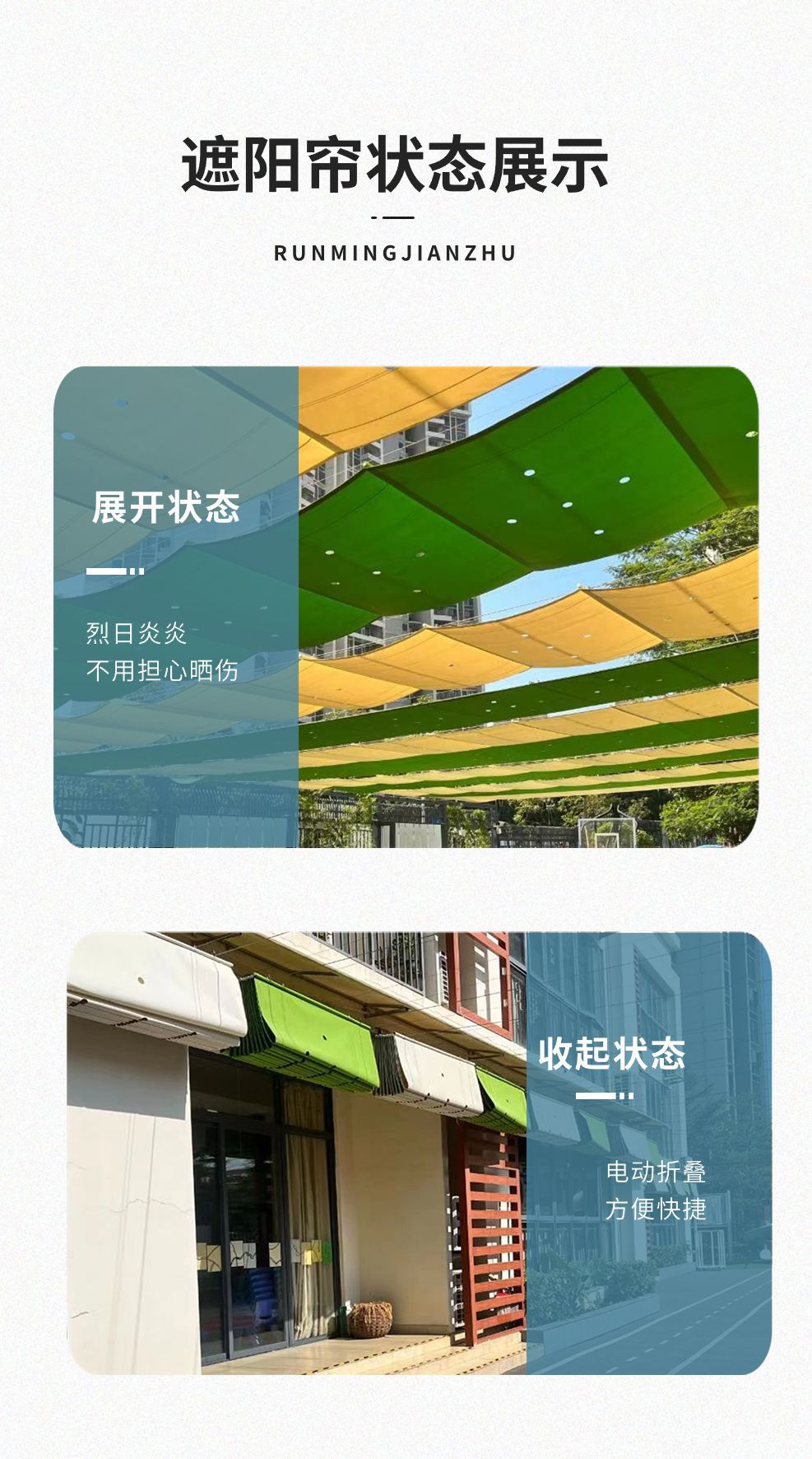Hermoso parasol de moda para jardín de infantes, centro comercial, parasol plegable eléctrico, cortina, toldo, área de juegos, piscina, proyecto de parasol.