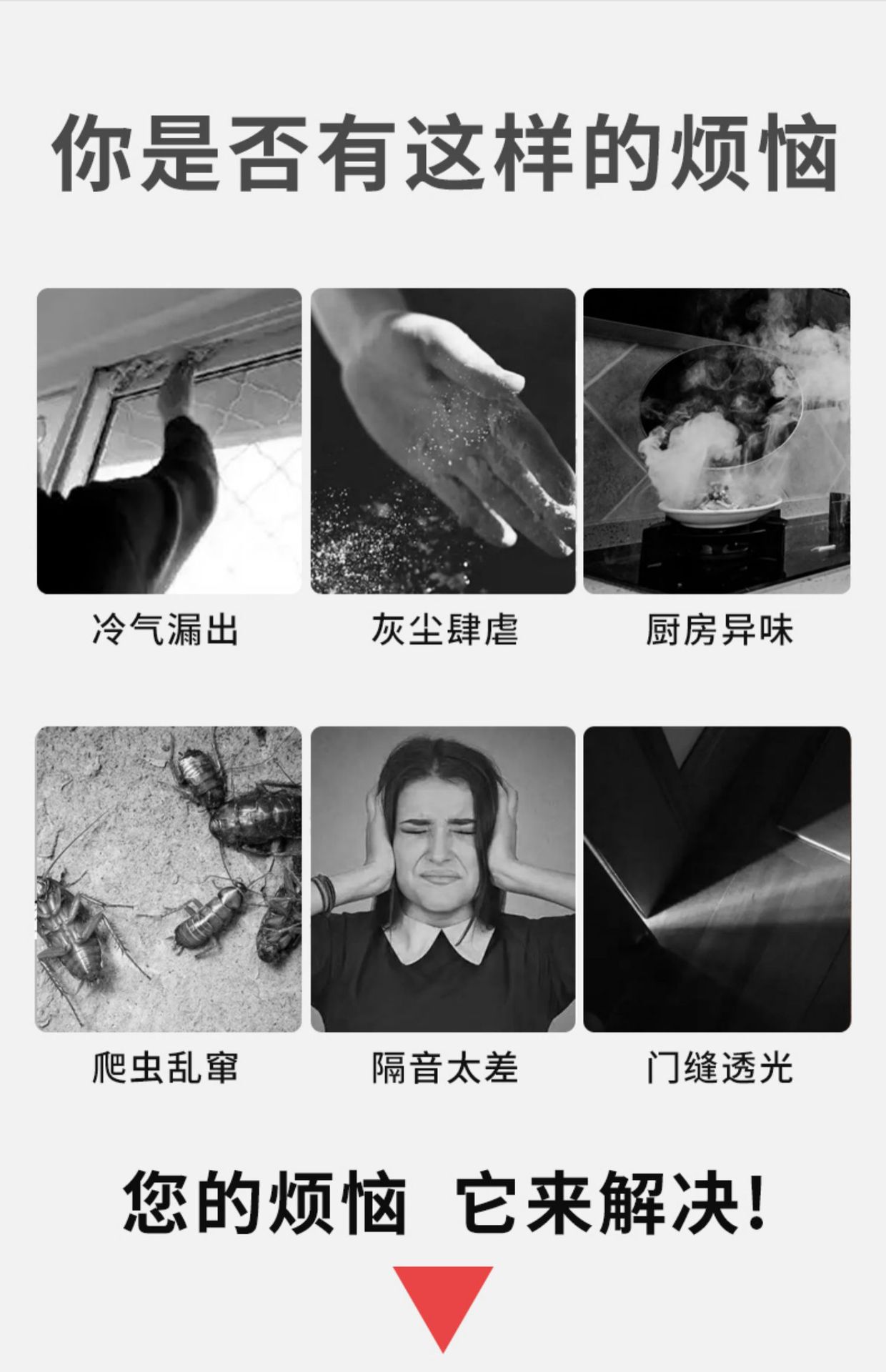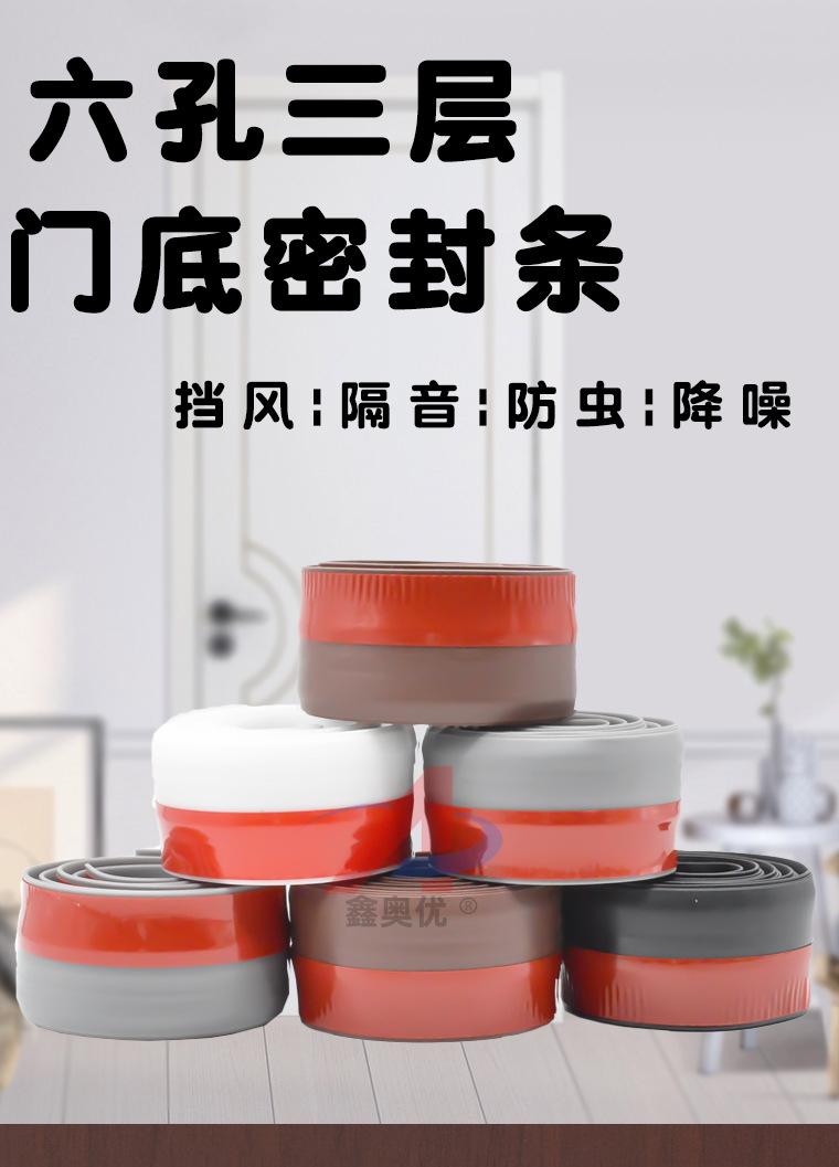 Tira de sellado inferior de puerta, junta de puerta de tres capas con seis orificios, aislamiento acústico, tira de goma a prueba de polvo y viento, puerta de madera, puerta de vidrio, tira de goma impermeable