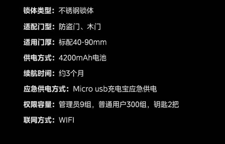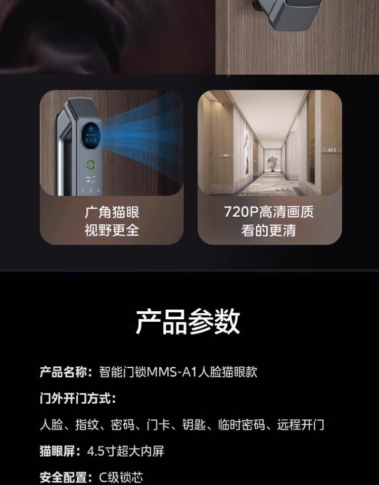 Fingerprint, Password, With key, Visual cat eye, Face recognition, Remote unlock