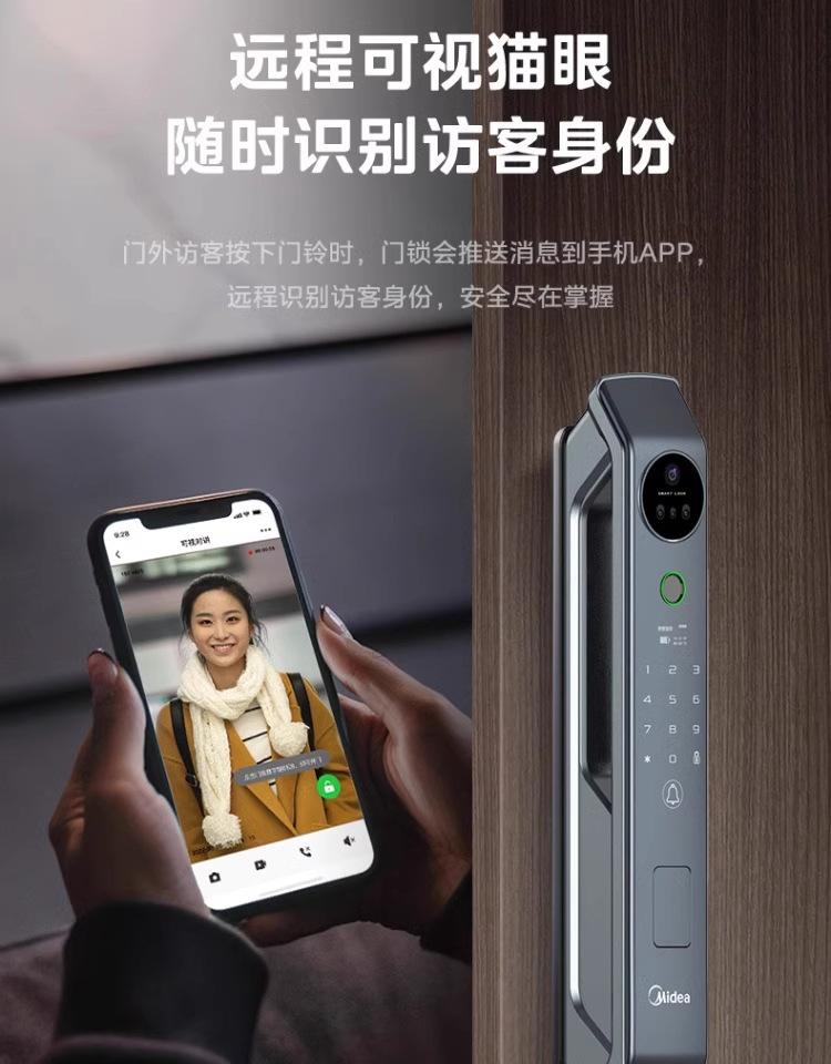 Cerradura de Puerta con Reconocimiento Facial Midea Ojo de Gato Visual Cerradura de Huella Digital Puerta Hogar Cerradura con Contraseña Cerradura Electrónica Cerradura de Puerta Inteligente para el Hogar