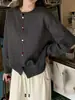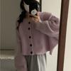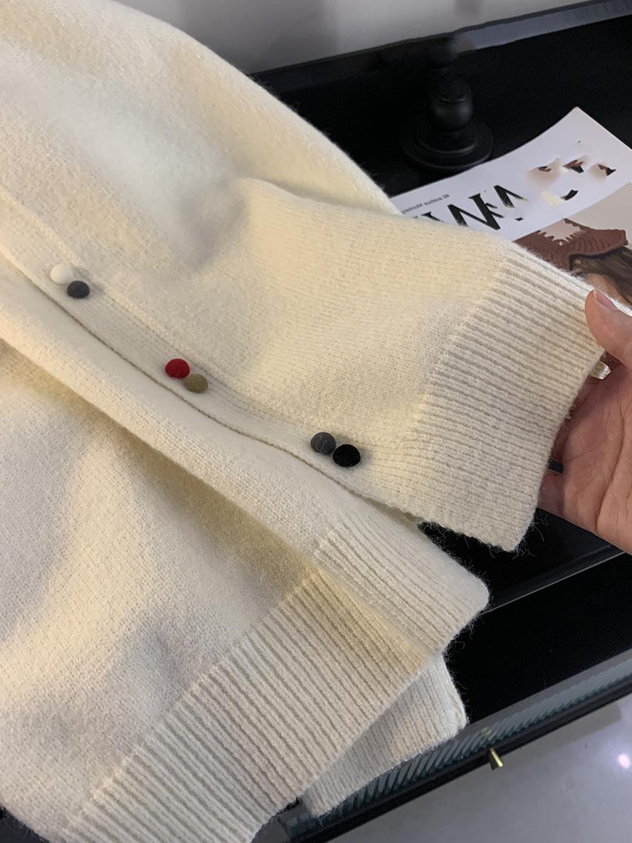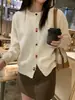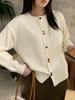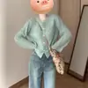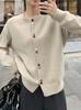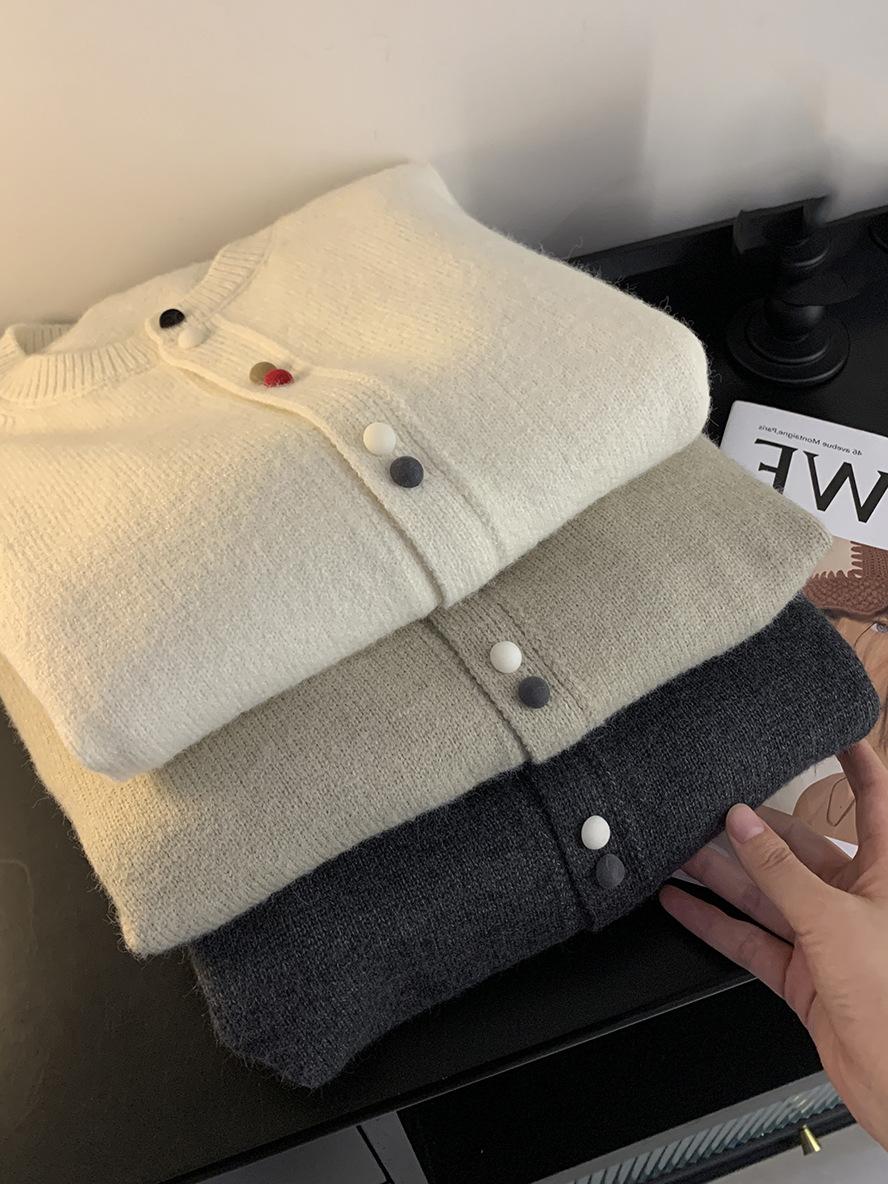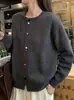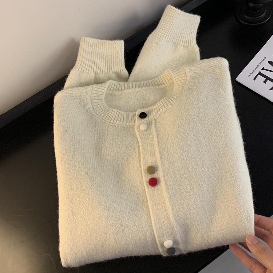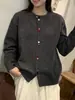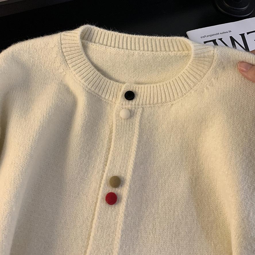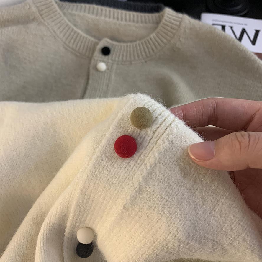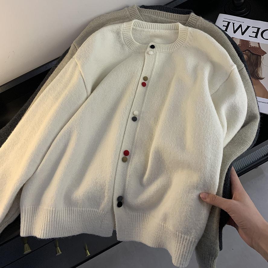 Cárdigan de punto con cuello redondo y botones de color de estilo suave para mujer, otoño 2024, nuevo abrigo superior holgado de estilo coreano con borde cruzado