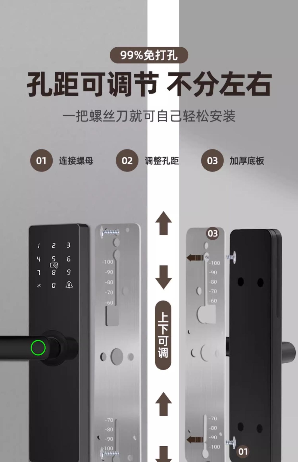 Adjustable hole spacing - starry sky black [b&b/rental house - wifi remote intelligent control + remote password modification + timeliness password + with fingerprint + gift] + guide installation