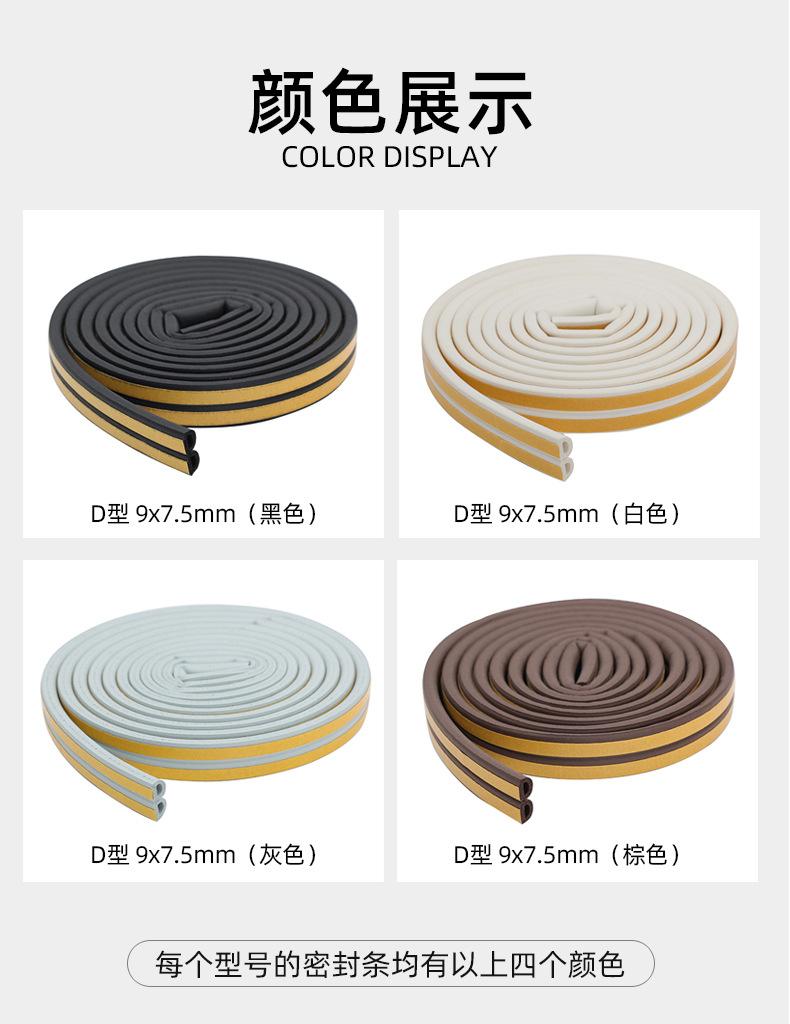 Tira de sellado de caucho EPDM para puertas y ventanas, aislamiento acústico de aleación para ventanas, tira de esponja cálida, puerta de madera, puerta antirrobo, tira autoadhesiva impermeable