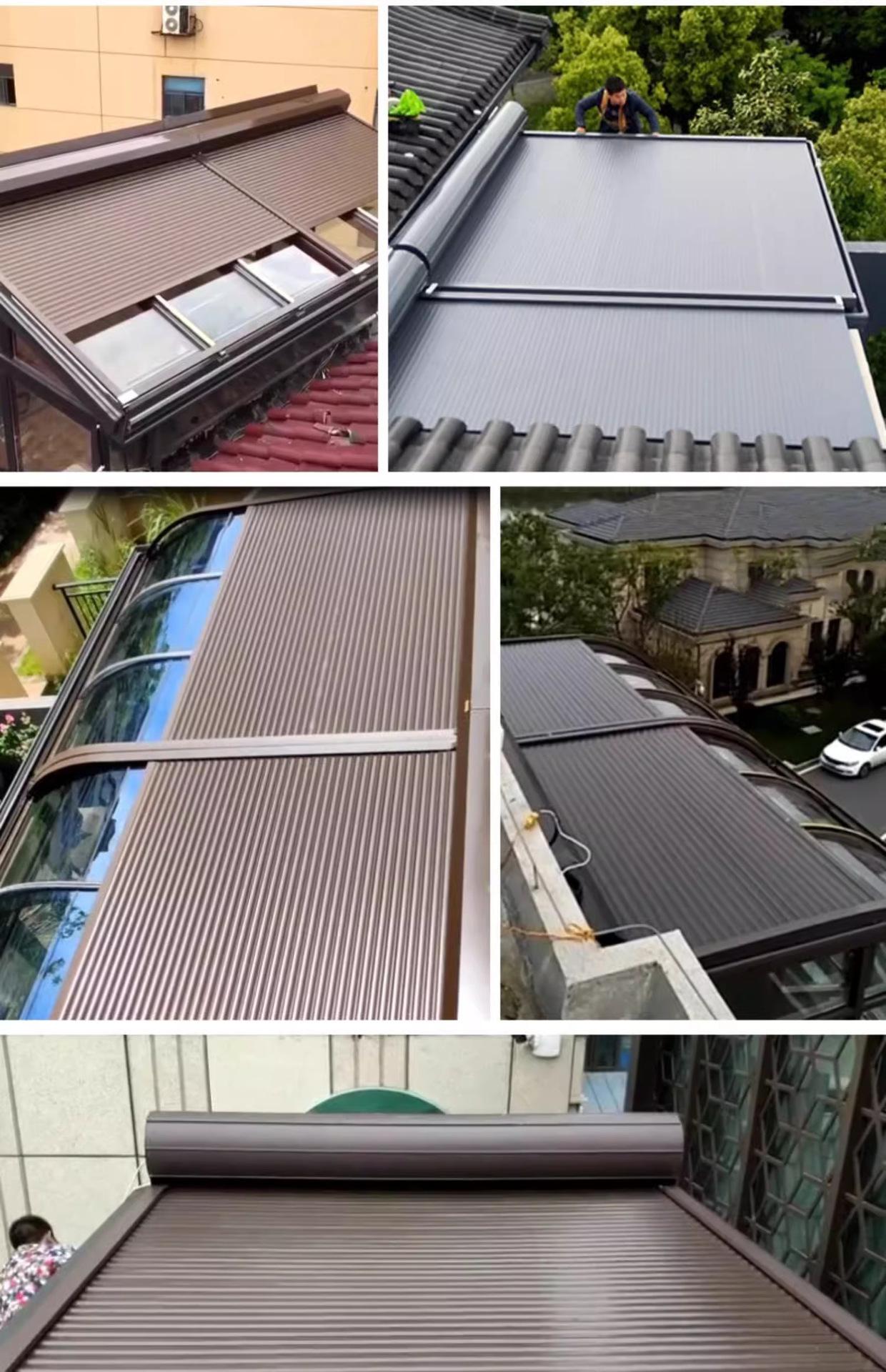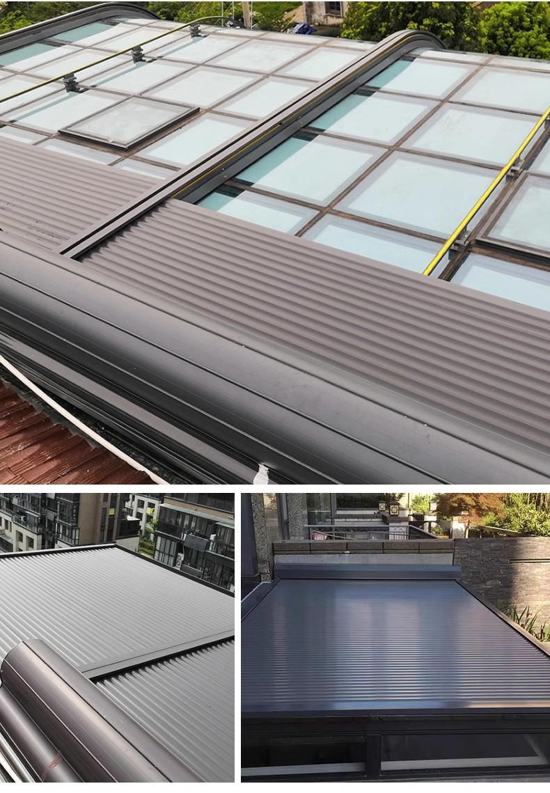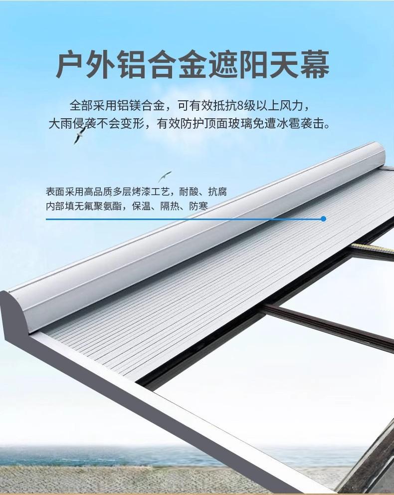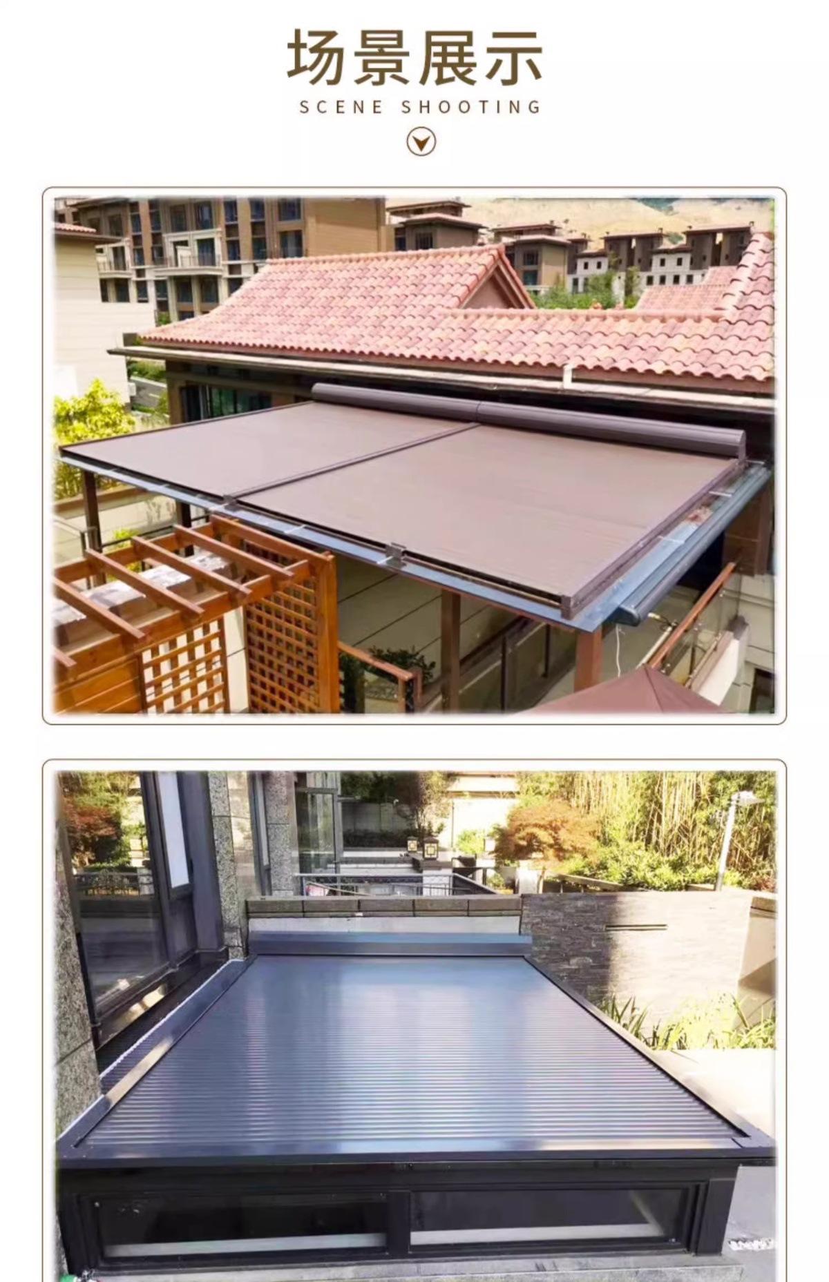 Cortina parasol para terraza acristalada, cortina de techo parasol, parasol para techo corredizo, aislamiento térmico, refrigeración, control remoto inteligente, toldo telescópico eléctrico de aleación de aluminio