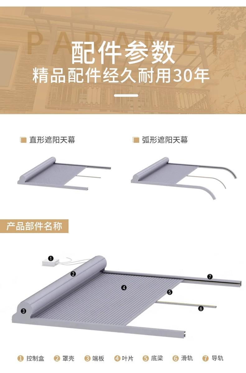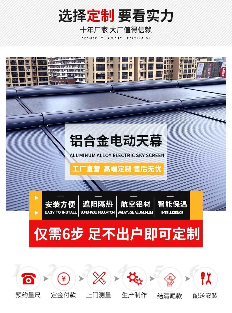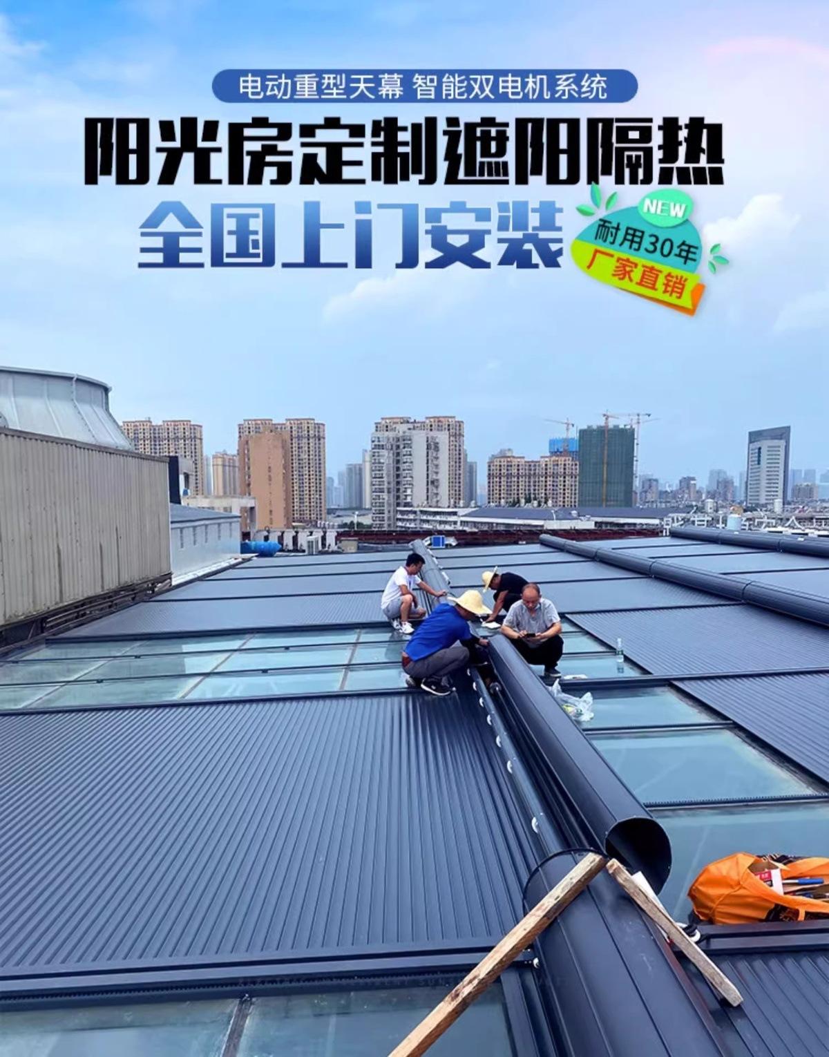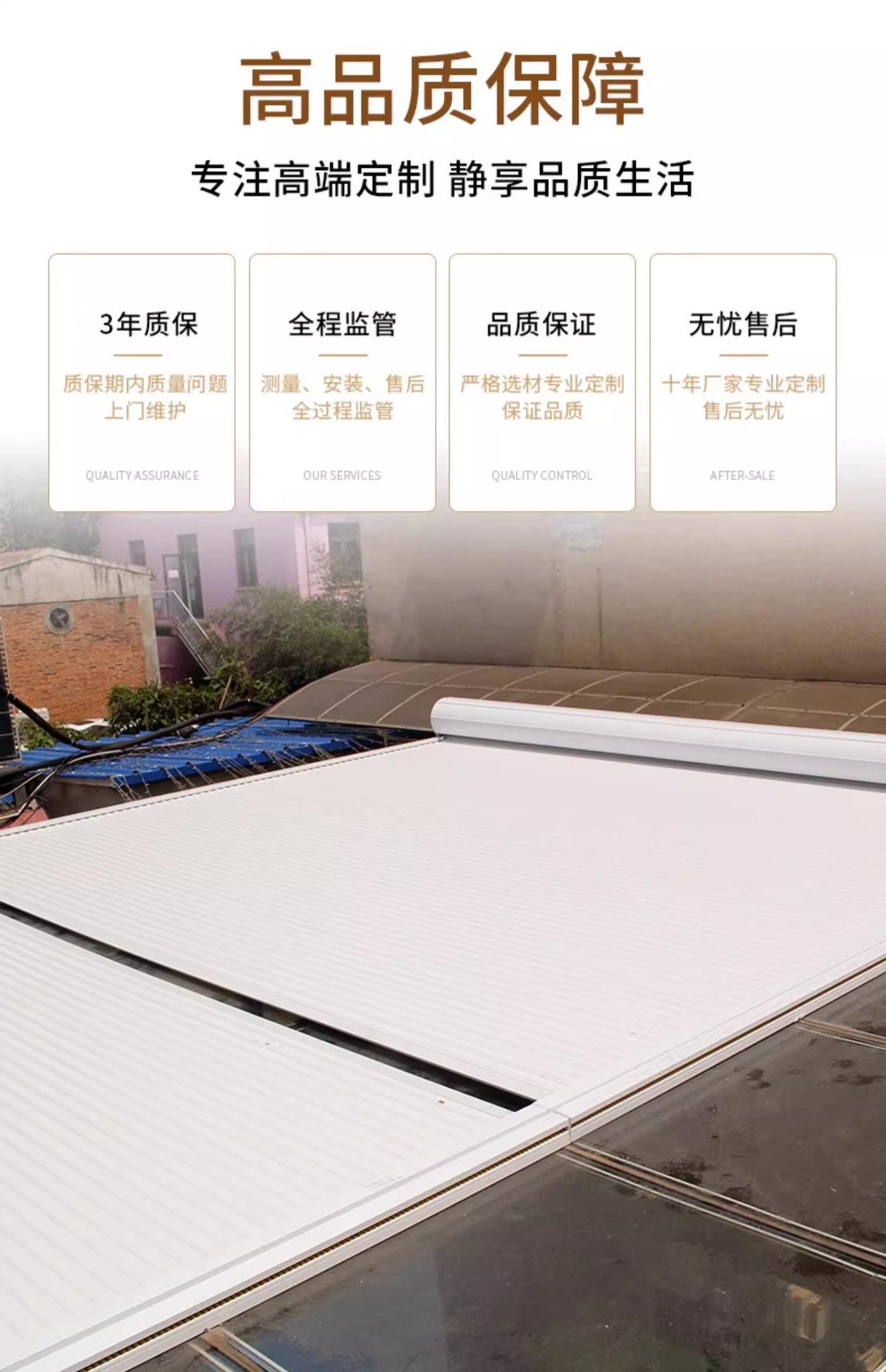 Cortina parasol para terraza acristalada, cortina de techo parasol, parasol para techo corredizo, aislamiento térmico, refrigeración, control remoto inteligente, toldo telescópico eléctrico de aleación de aluminio