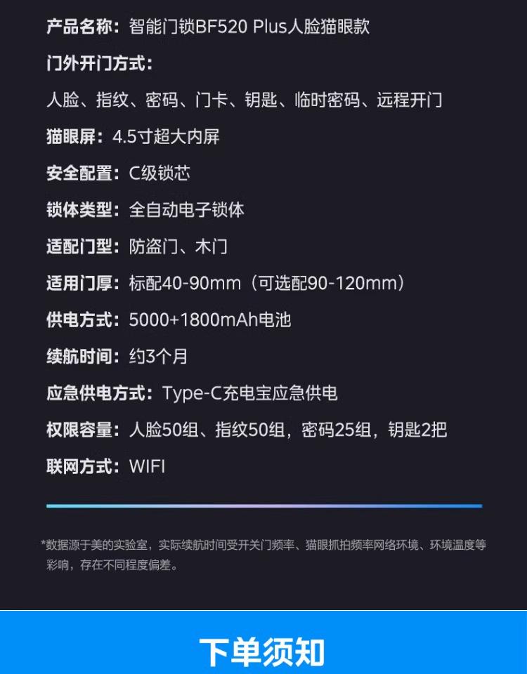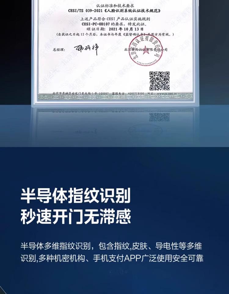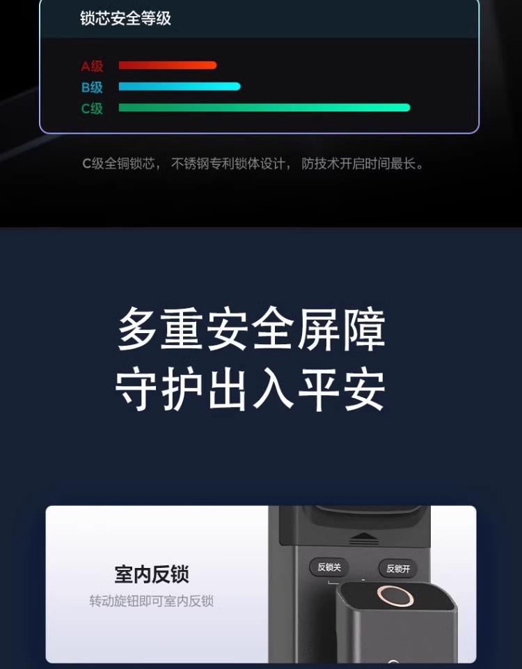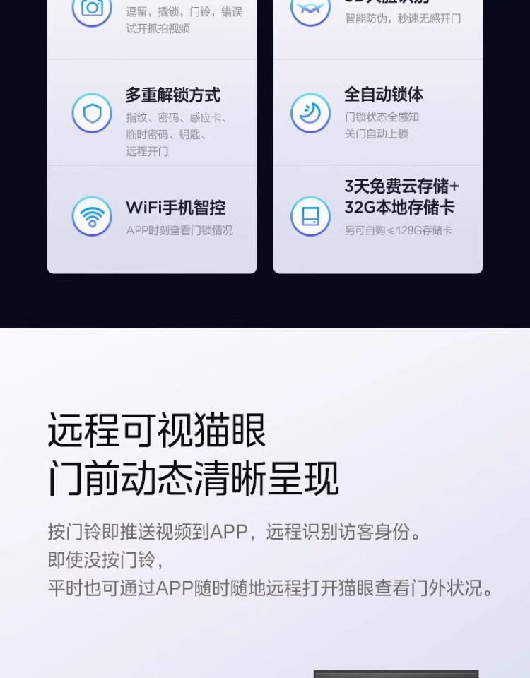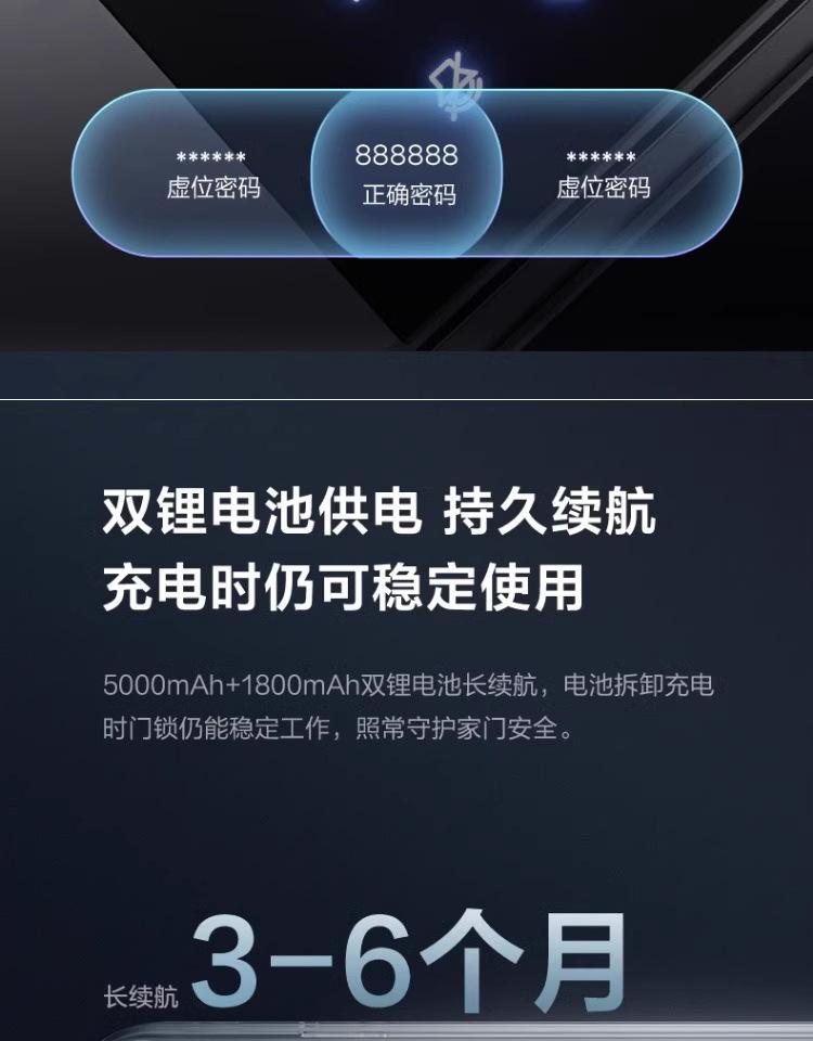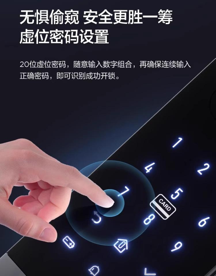 Fingerprint, Password, With key, Visual cat eye, Face recognition, Remote unlock