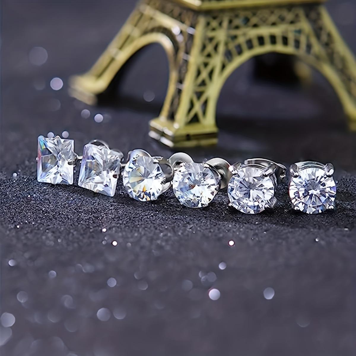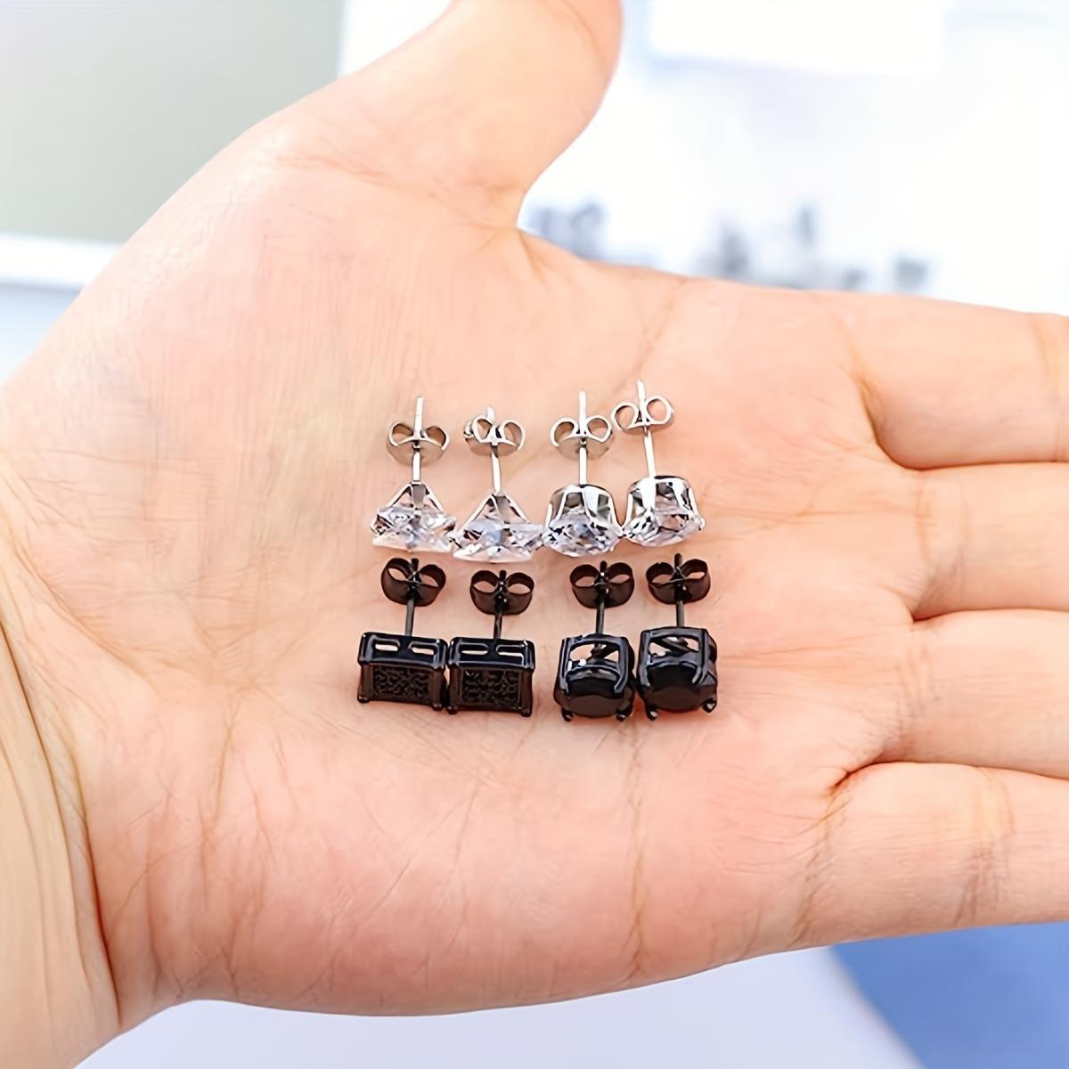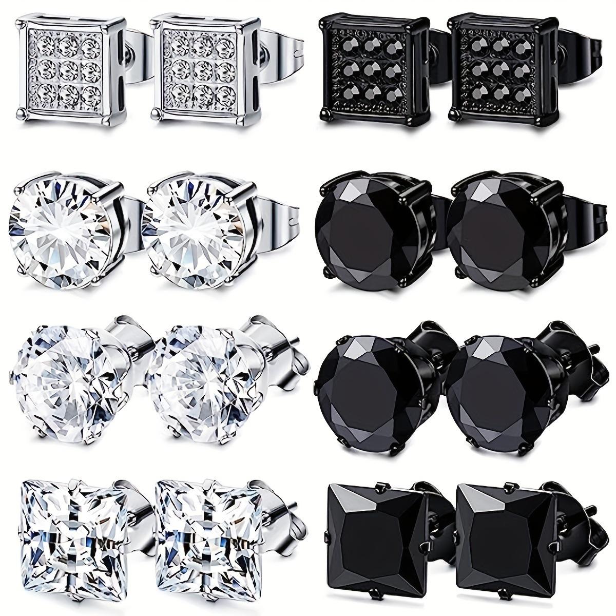 Pendientes de acero inoxidable con diseño de cruz, 8 pares, circonitas, cuadrados y redondos, ideales para combinar con Amazon. Oferta especial.