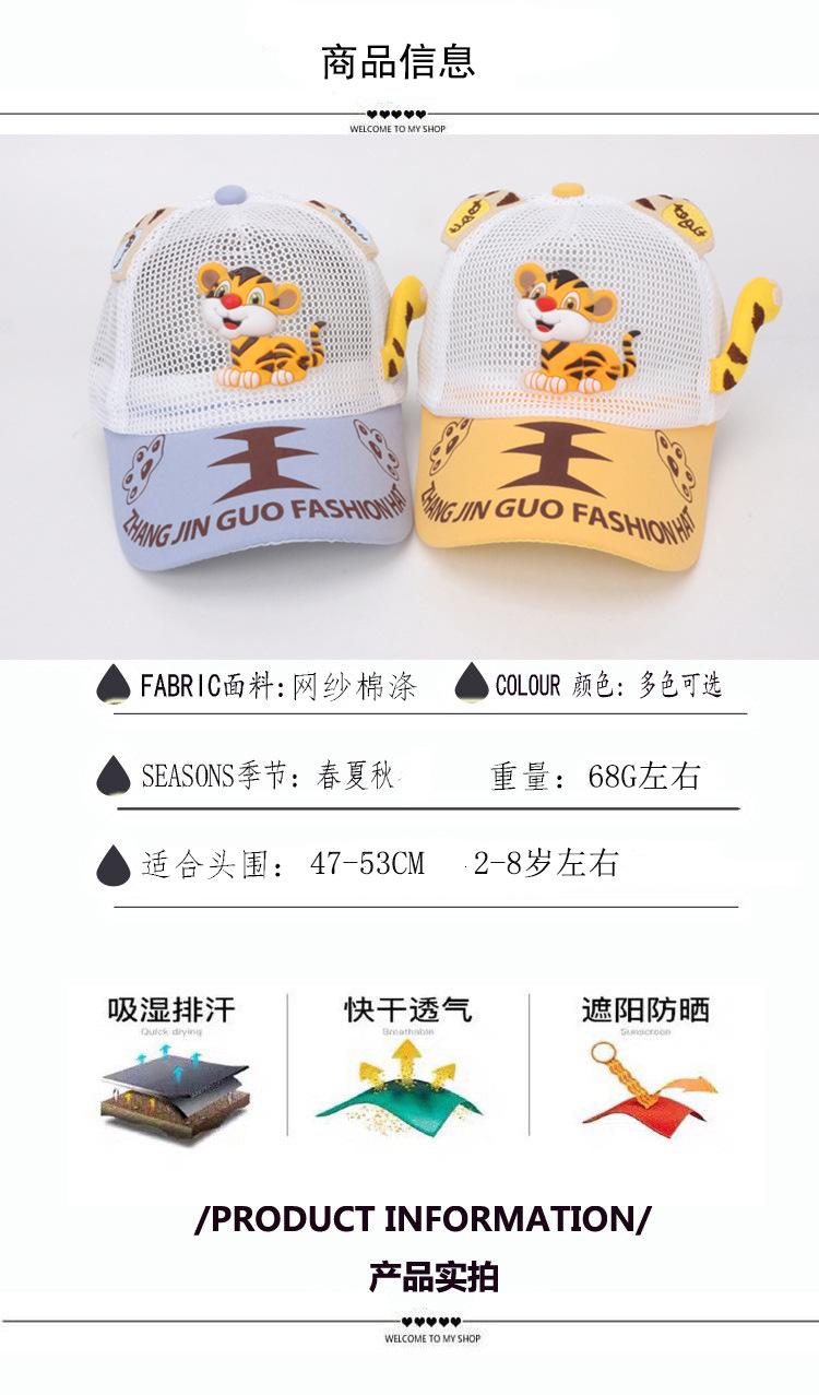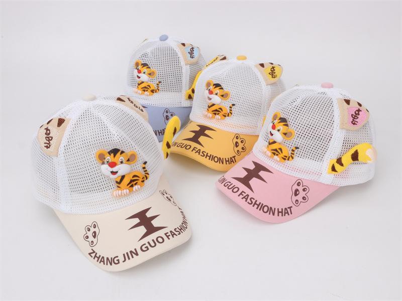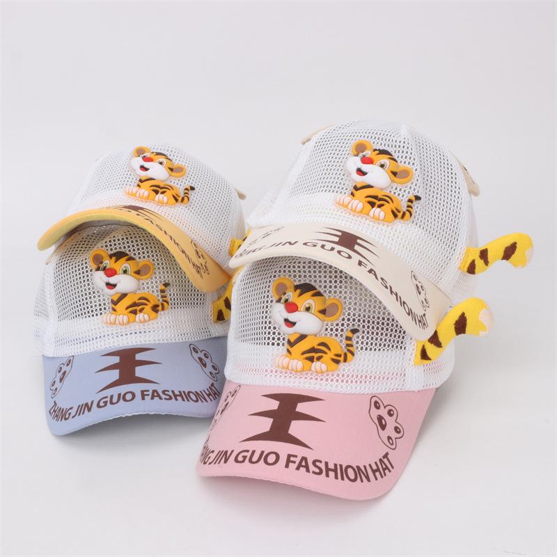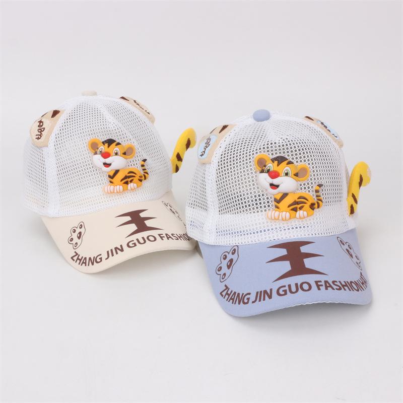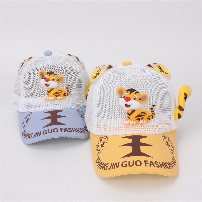Gorra de bebé con visera de tigre de dibujos animados, malla completa, transpirable, para niños, para exteriores, protección solar, gorra de béisbol, comercio exterior