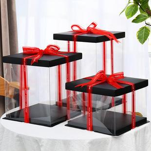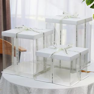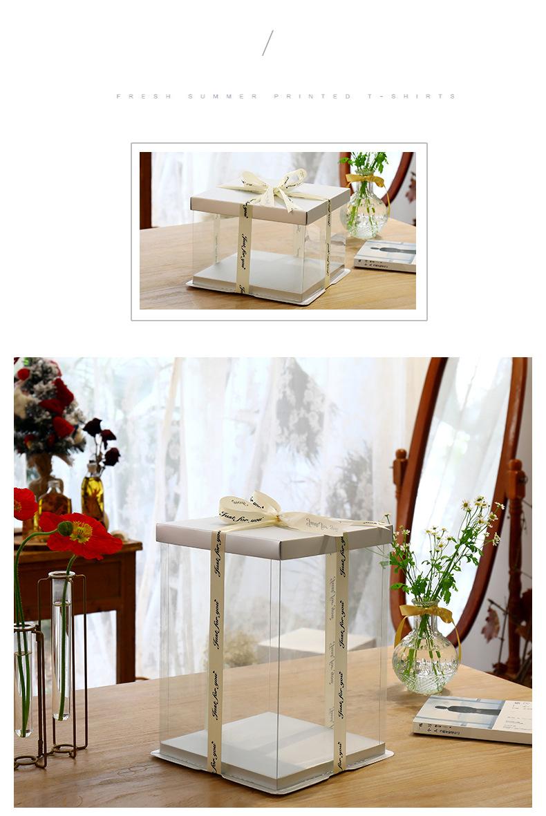 Caja transparente plateada para pastel de cumpleaños 6 8 10 12 14 pulgadas una sola doble capa realzada tres en uno caja de embalaje para hornear
