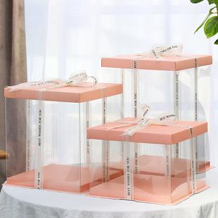 Caja para pastel de cumpleaños completamente transparente 6 8 10 12 14 pulgadas doble capa elevada caja de embalaje para repostería Barbie tres en uno