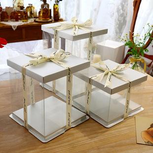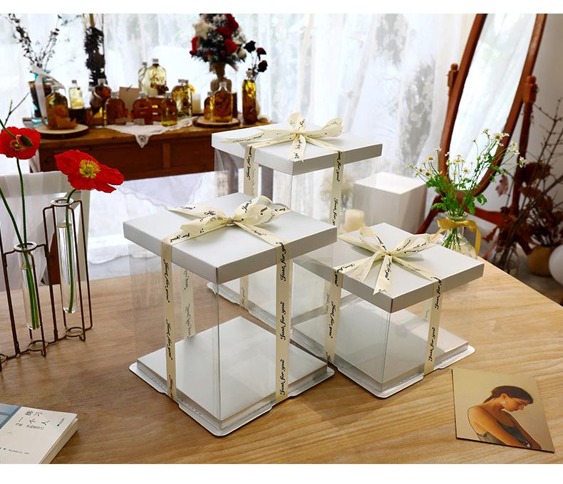 Caja Transparente Blanca para Pastel de Cumpleaños 6 8 10 12 14 pulgadas Capa Sencilla y Doble Elevada Tres En Uno Caja de Embalaje para Hornear