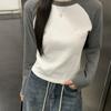 Camiseta de cuello alto a rayas entallada de estilo coreano para mujer de otoño, camiseta de manga larga para mujer, camiseta cálida de estilo Hong Kong que combina con todo.