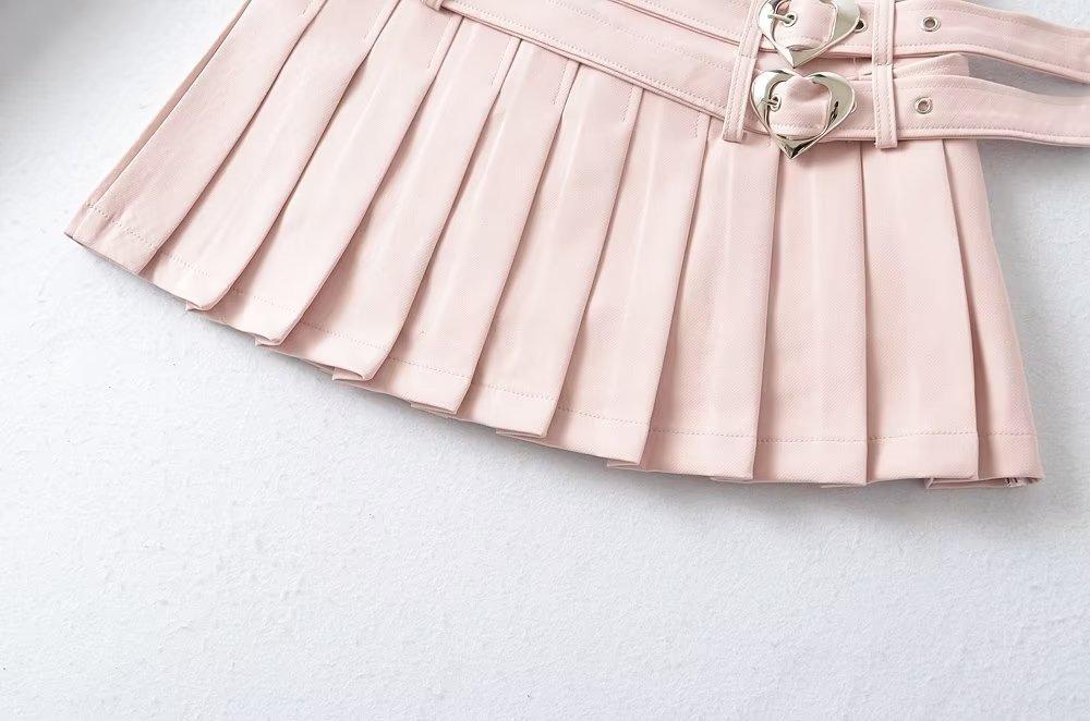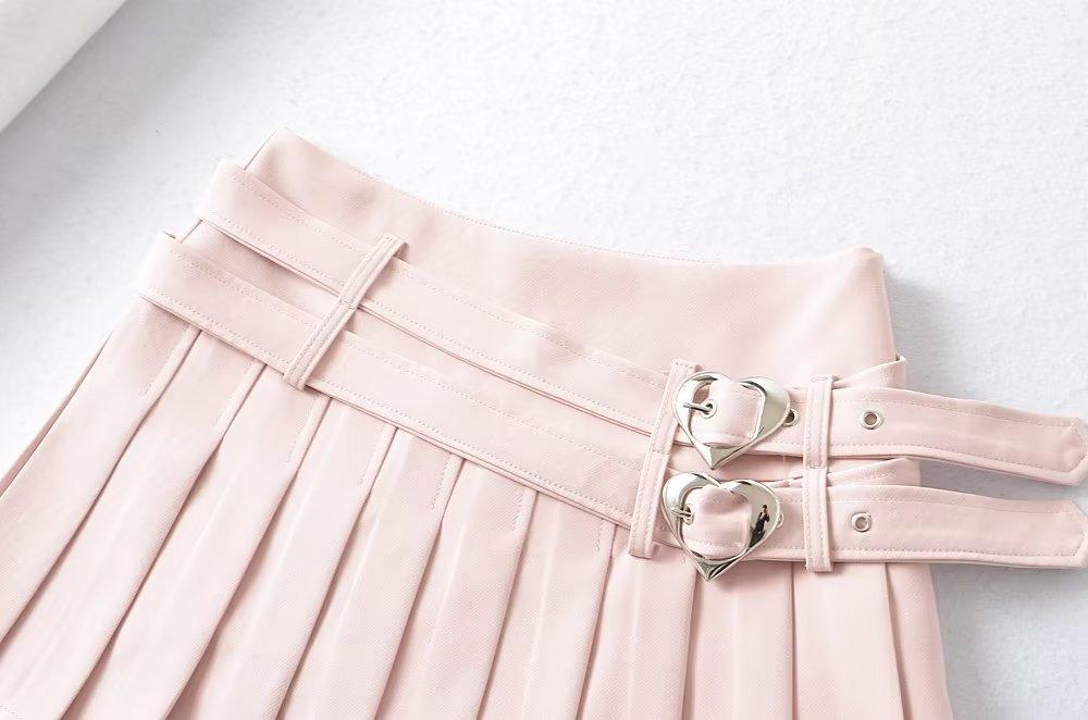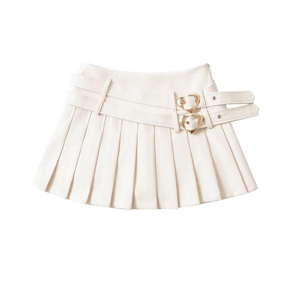 Falda plisada juguetona de diseño nicho con corazón 2023 Verano Nueva moda Versátil Anti-exposición Alargadora de piernas