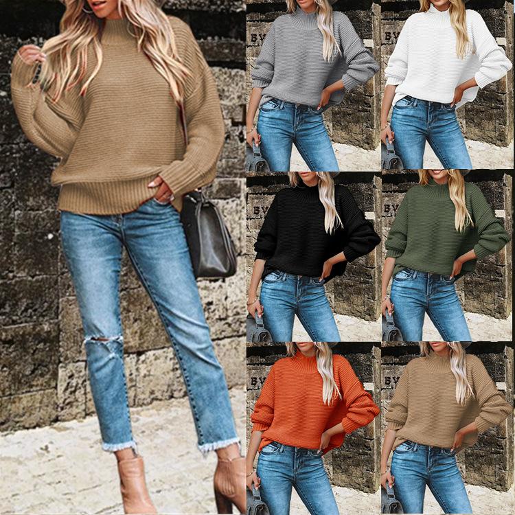 Suéter de cuello alto para mujer, suéter holgado, de comercio exterior europeo y americano, otoño e invierno, de Amazon Wish, eBay, para mujer
