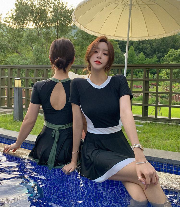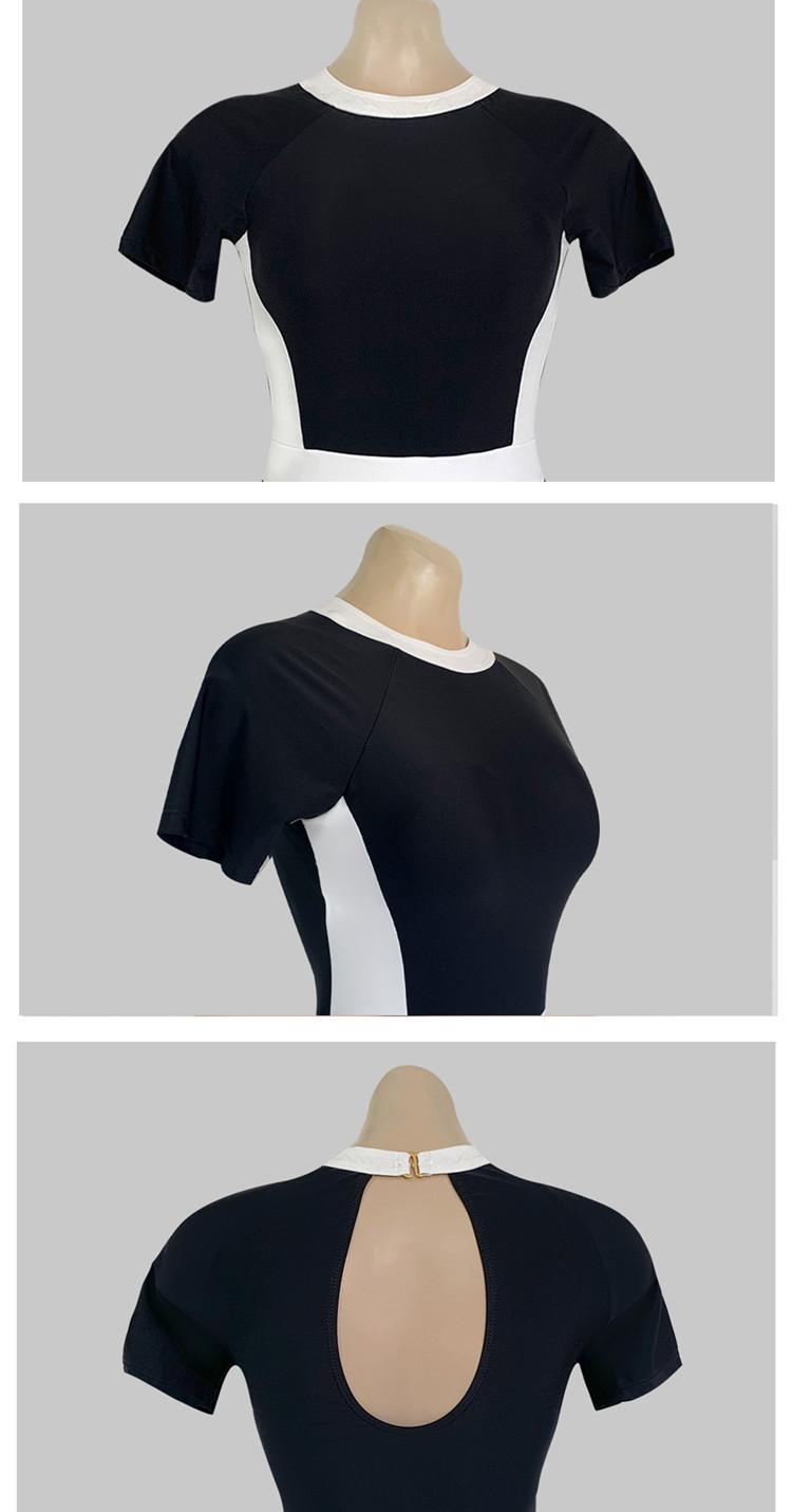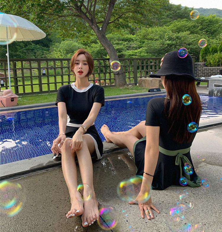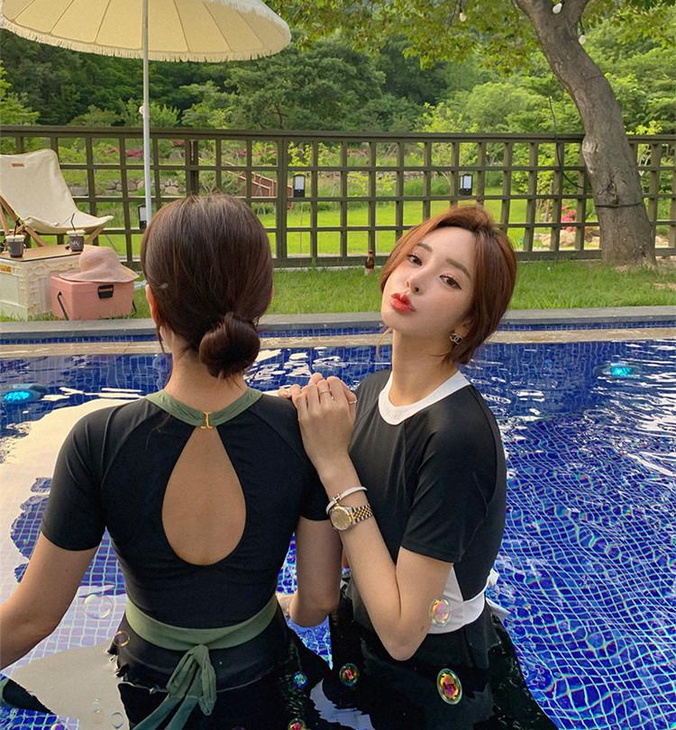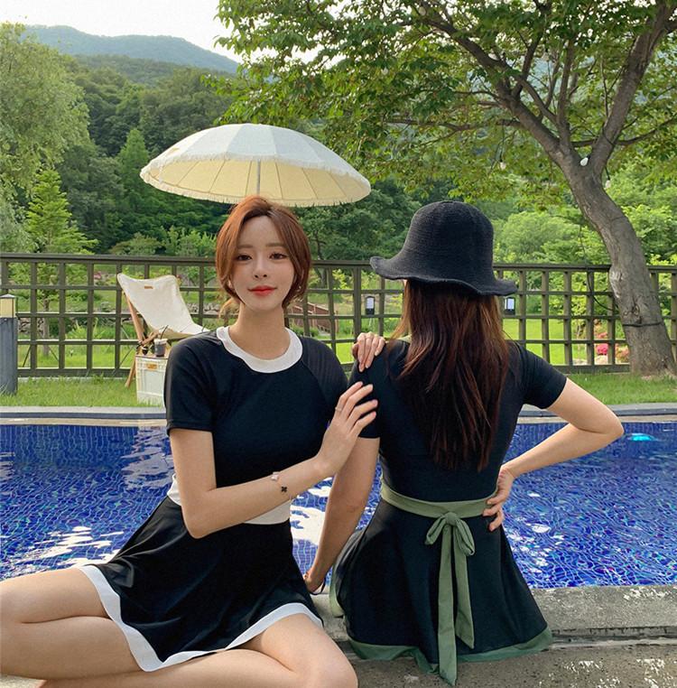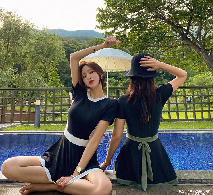Traje de baño deportivo de color contrastante para mujer, traje de baño conservador de verano, traje de baño ajustado que cubre el vientre, nuevo traje de baño de una pieza con protección solar para la playa 2023