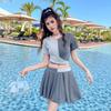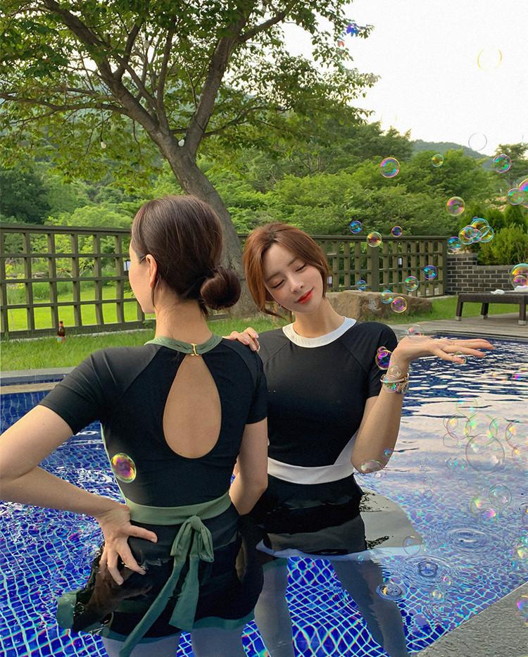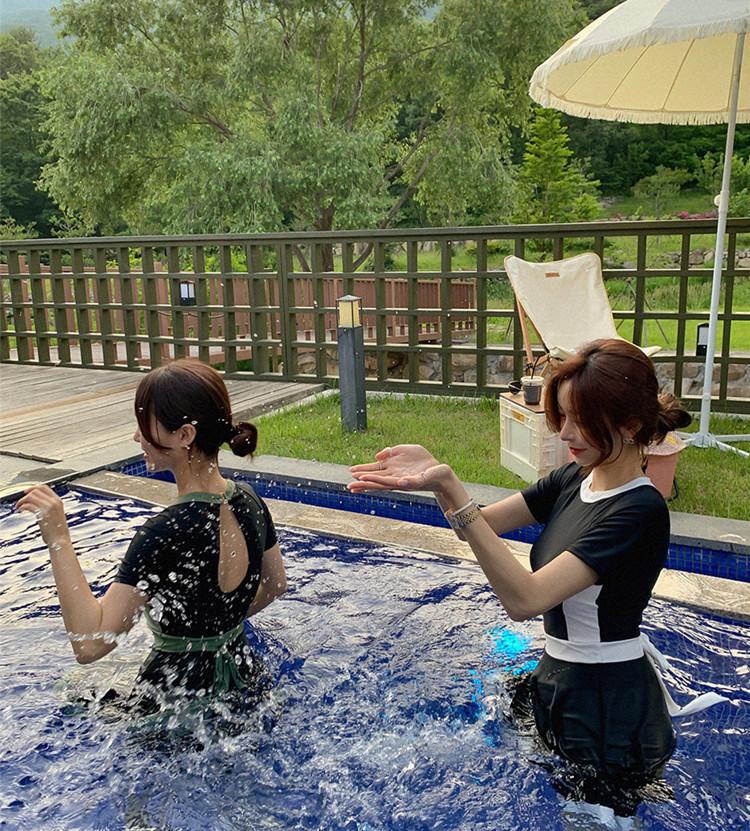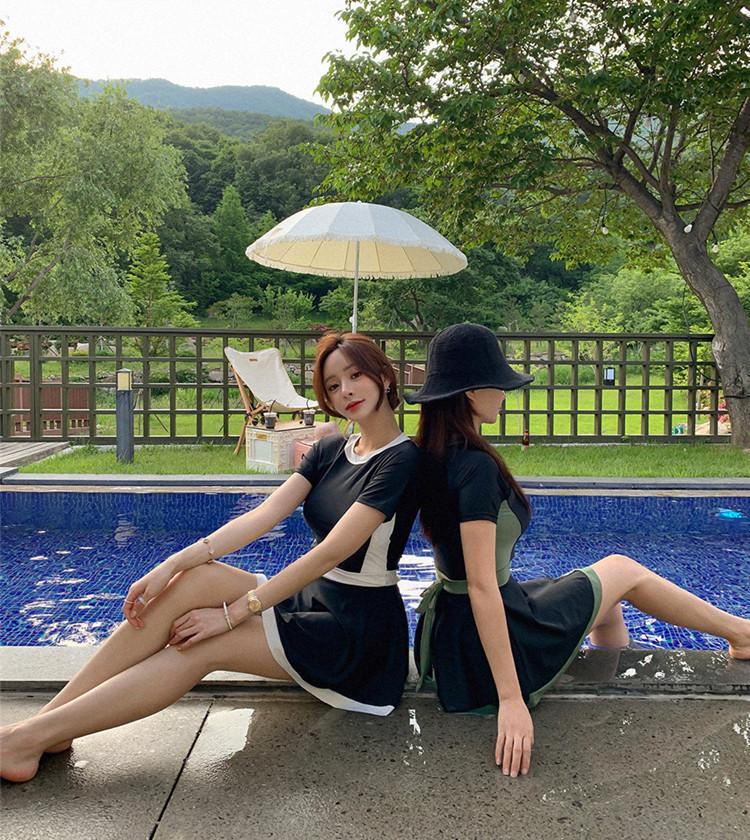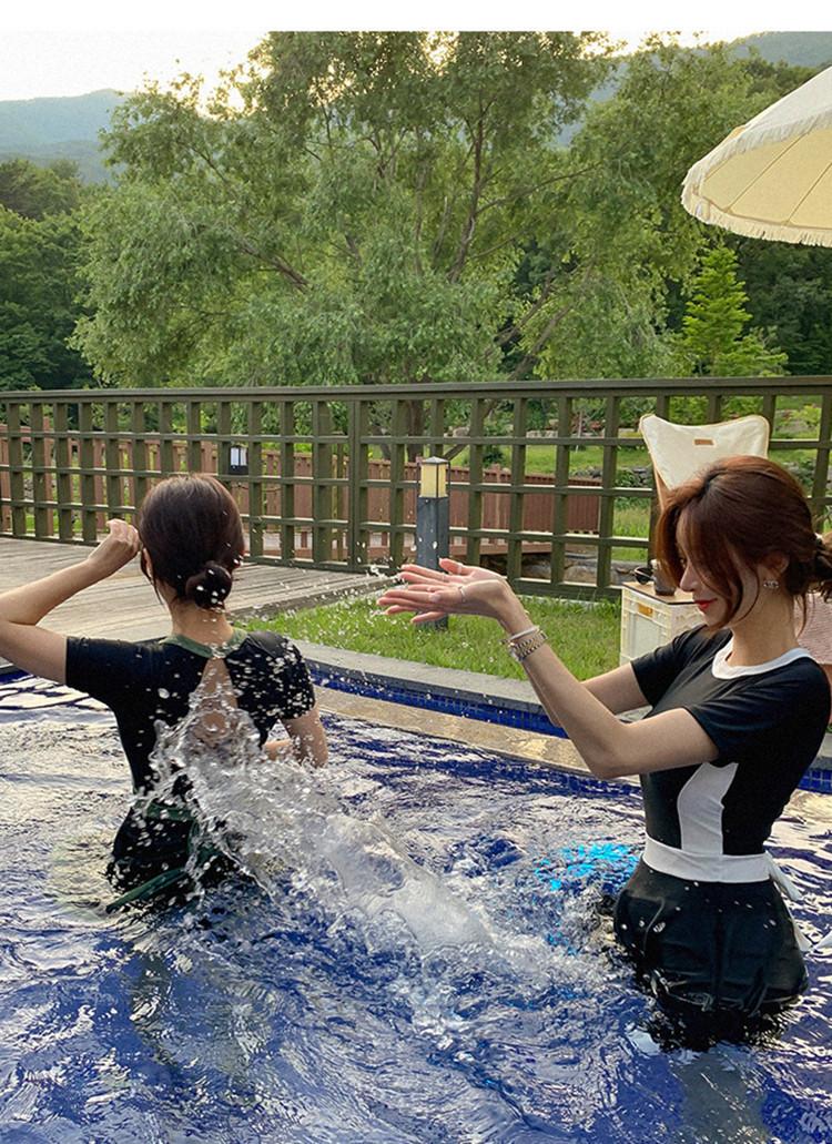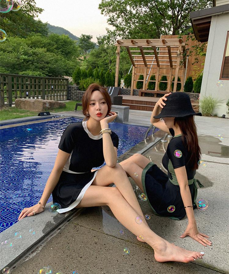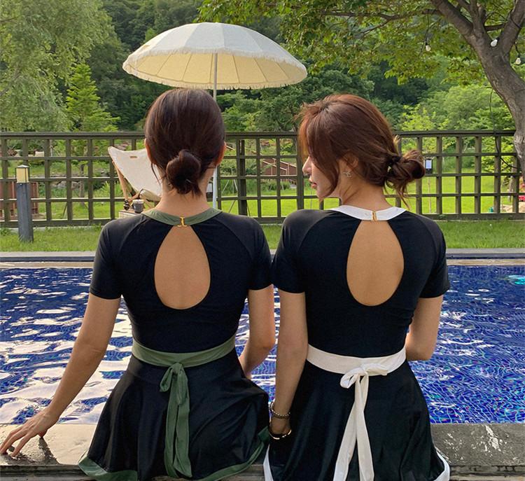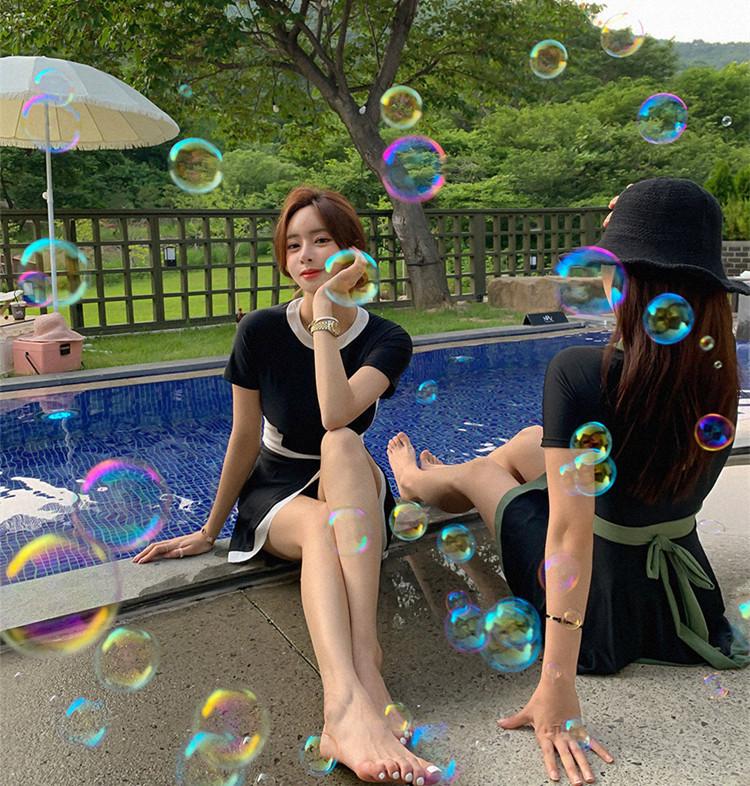 Traje de baño deportivo de color contrastante para mujer, traje de baño conservador de verano, traje de baño ajustado que cubre el vientre, nuevo traje de baño de una pieza con protección solar para la playa 2023