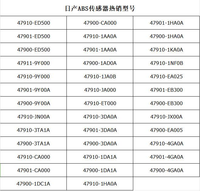 Adecuado para piezas de automóvil Nissan Sensor de velocidad de rueda ABS 47901-8J002 479018J002