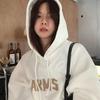 Suéter con capucha estilo coreano de otoño e invierno, holgado, perezoso, de nicho, tipo jersey, para mujer, grueso, para mujer, estampado