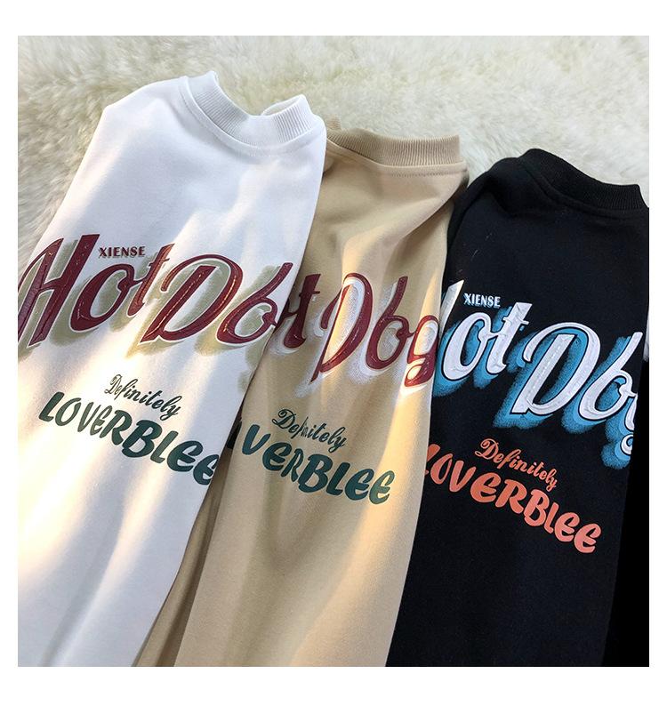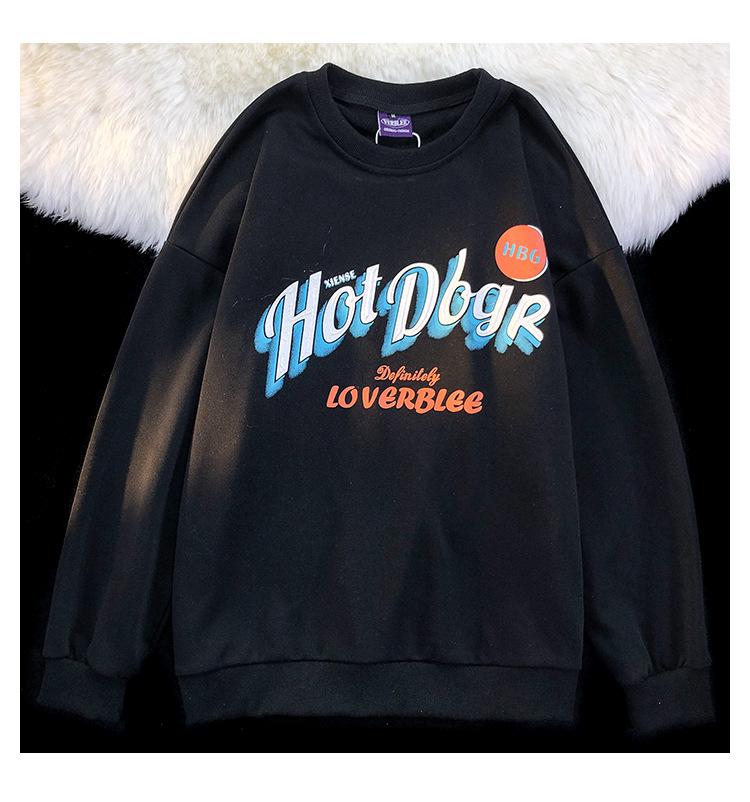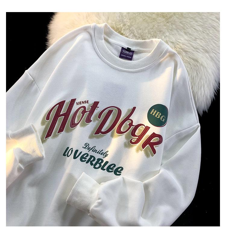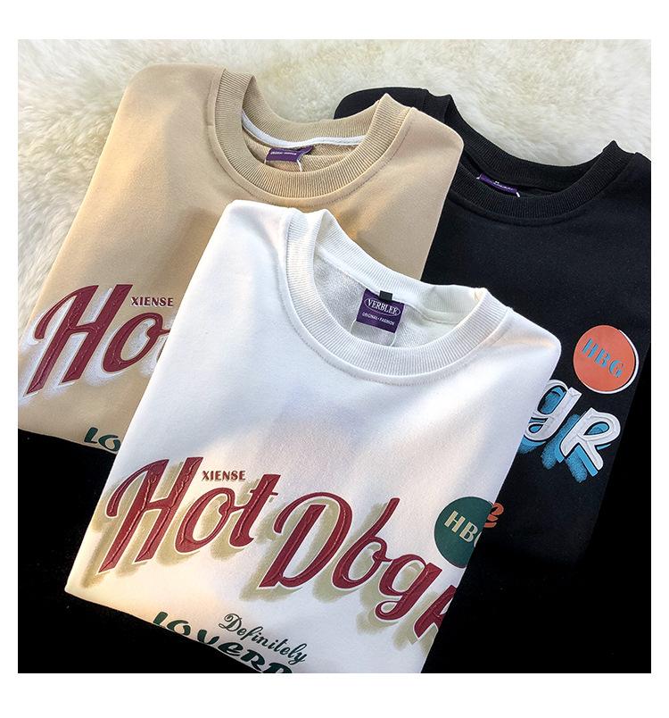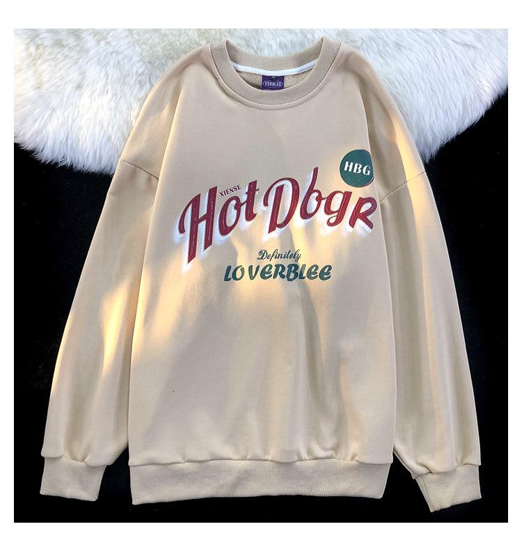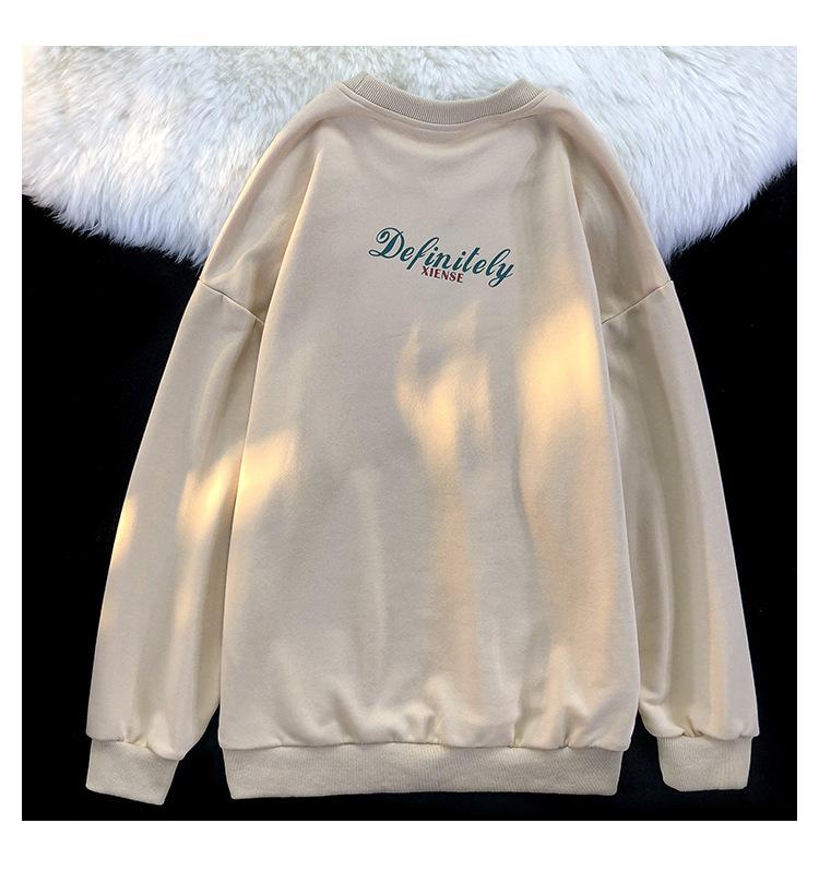 Sudadera de Otoño e Invierno para Mujer, Gruesa, con Estampado de Letras, Cuello Redondo, con Felpa, Sudadera Casual Holgada Ins para Mujer