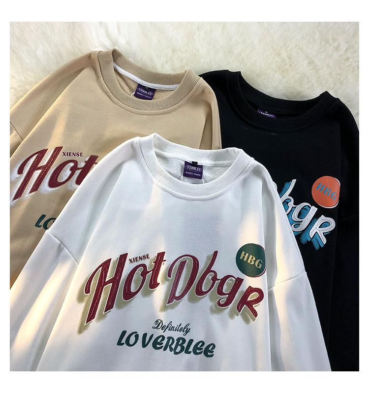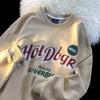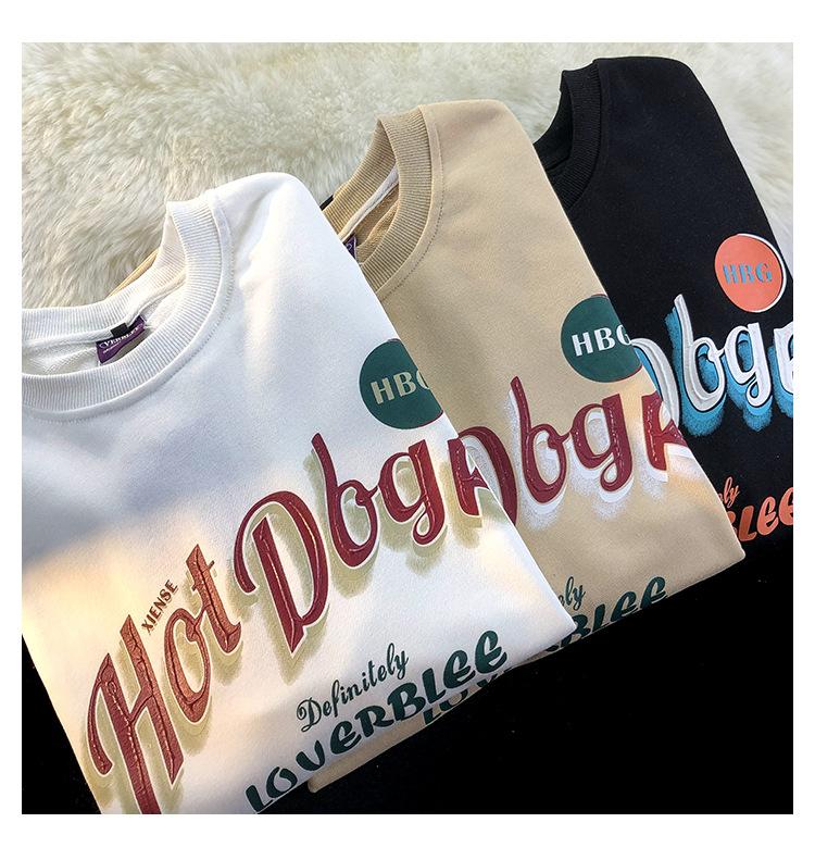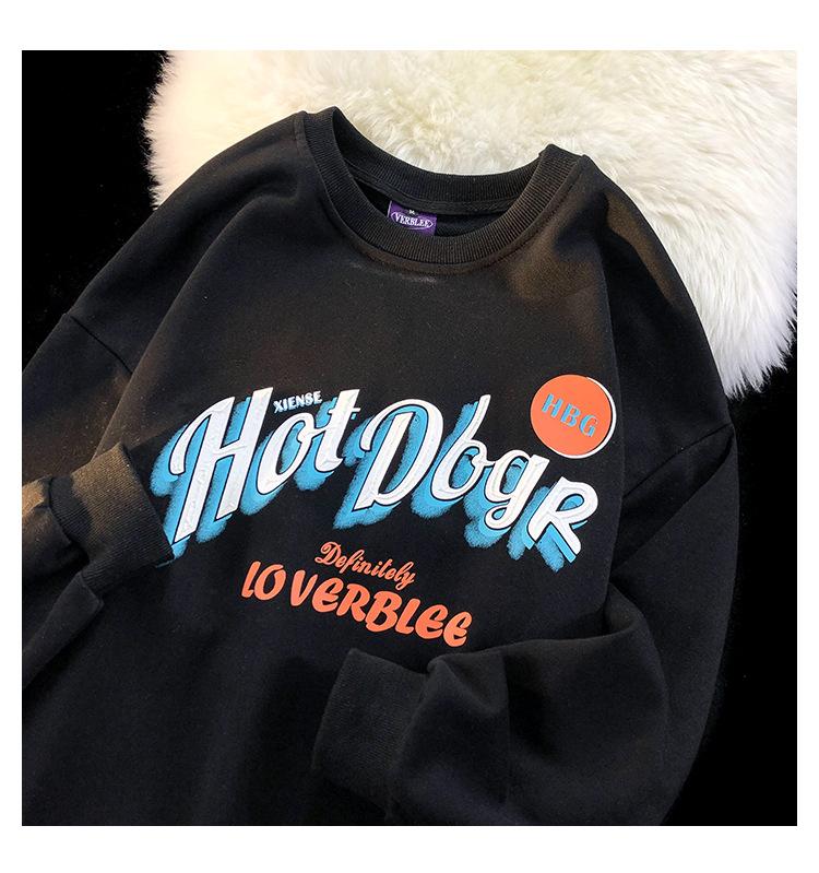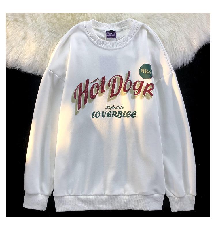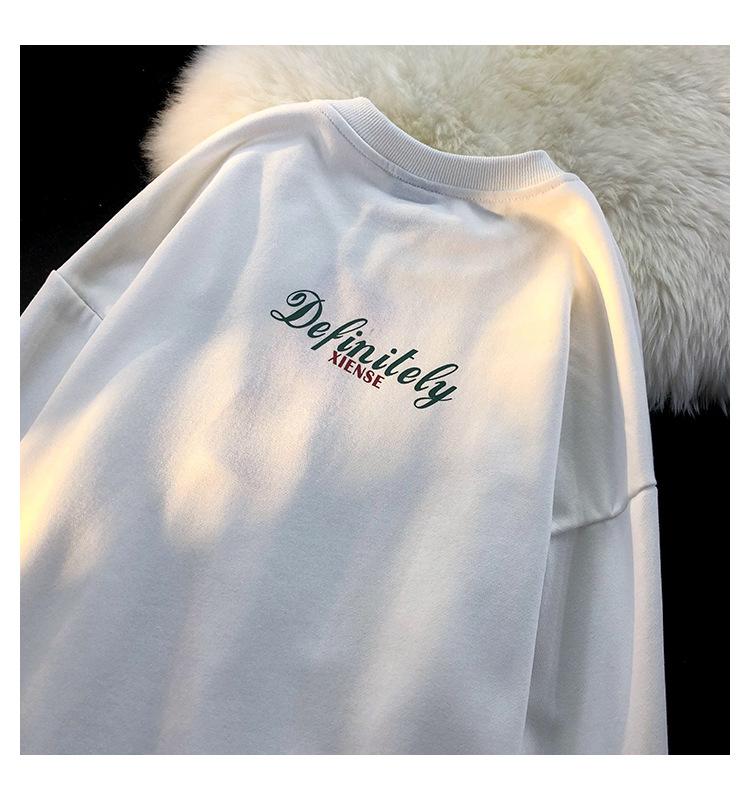 Sudadera de Otoño e Invierno para Mujer, Gruesa, con Estampado de Letras, Cuello Redondo, con Felpa, Sudadera Casual Holgada Ins para Mujer