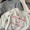 Suéter de estilo coreano con letras simples, suelto, adelgazante, de cuello redondo y manga larga, abrigo de estudiante, suéter de otoño e invierno para mujer
