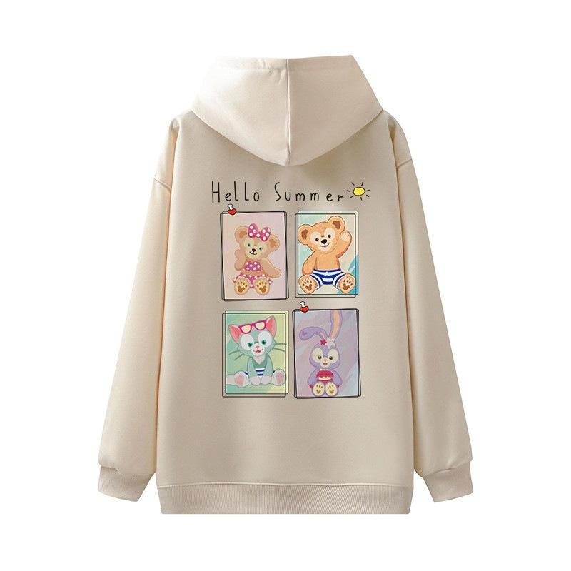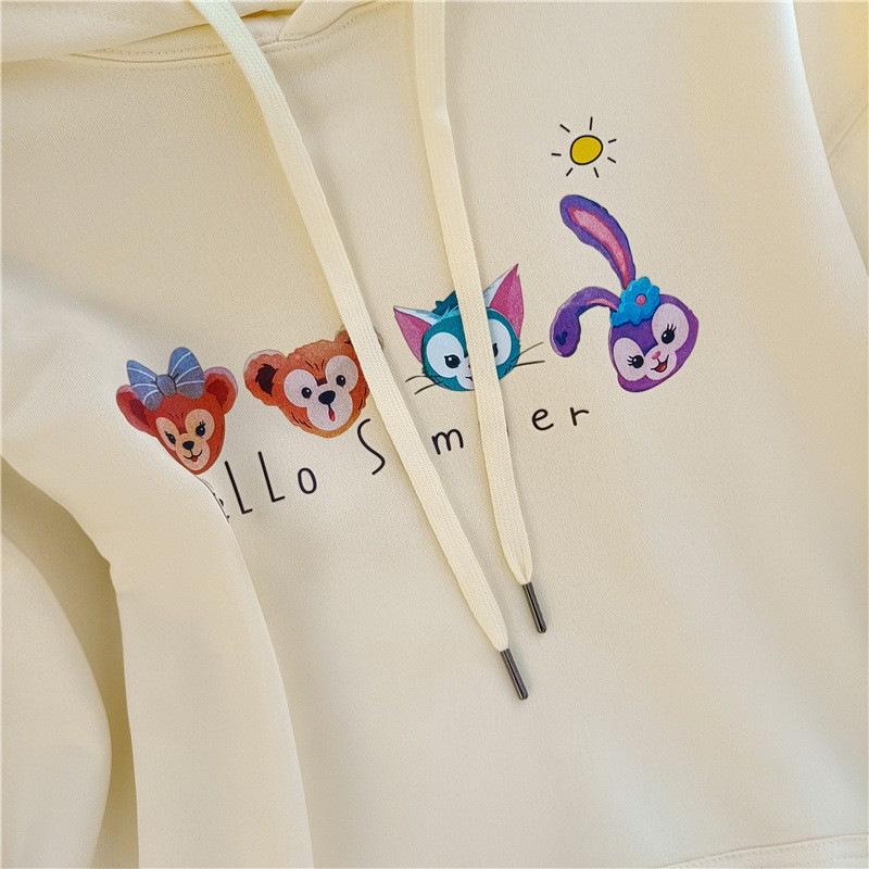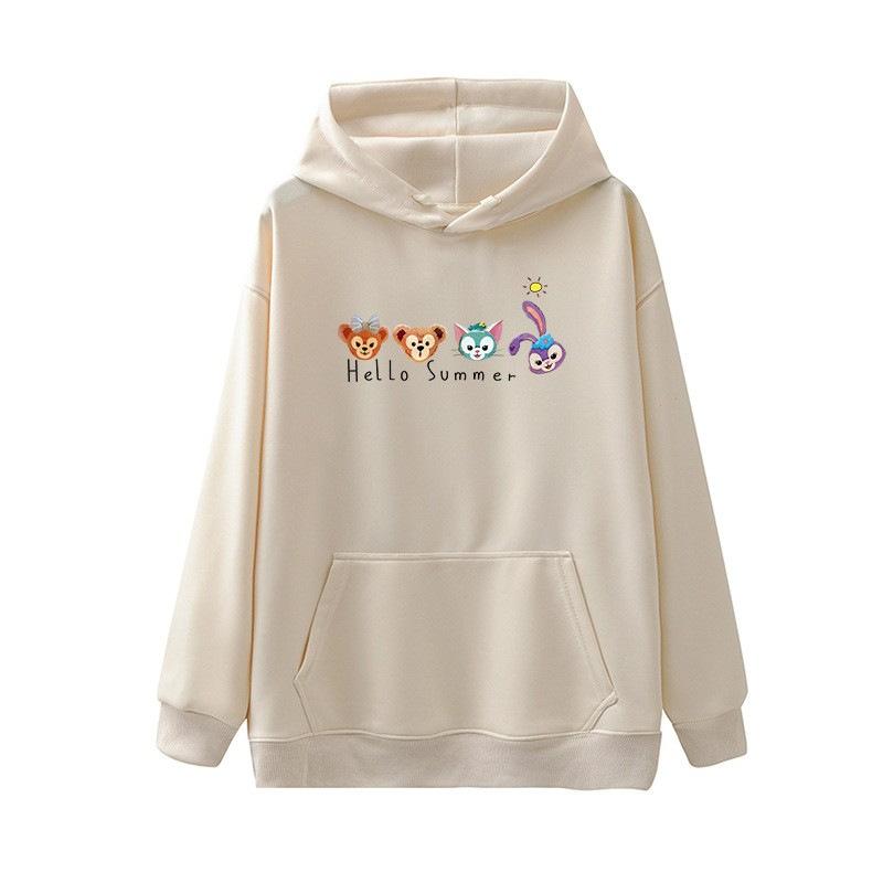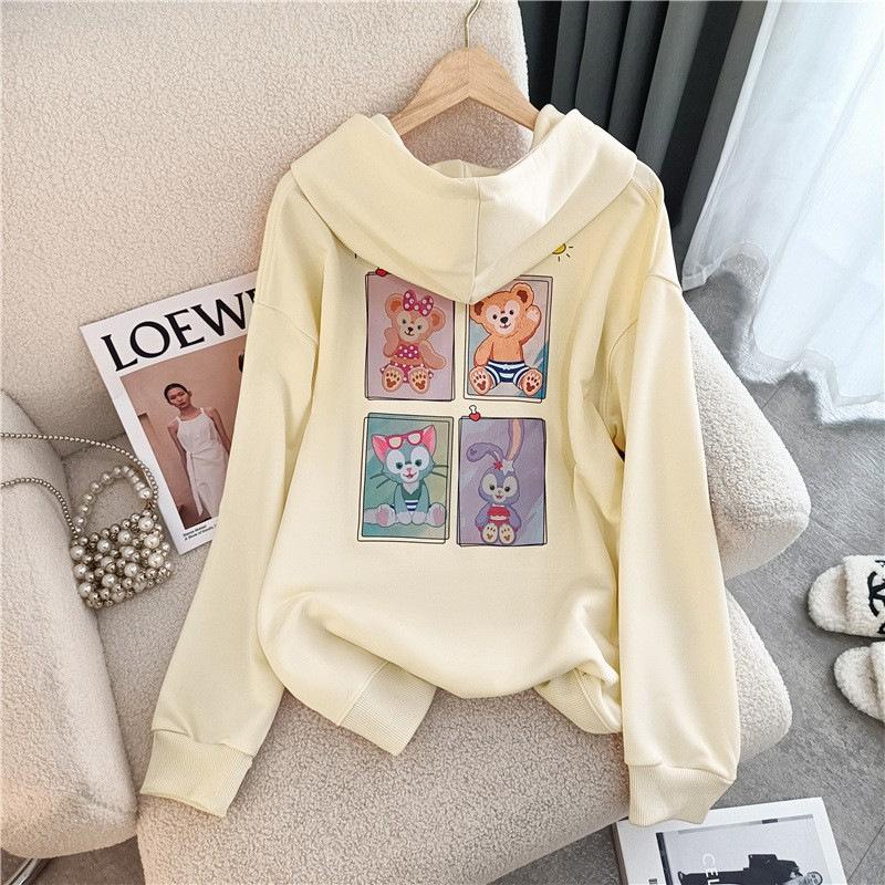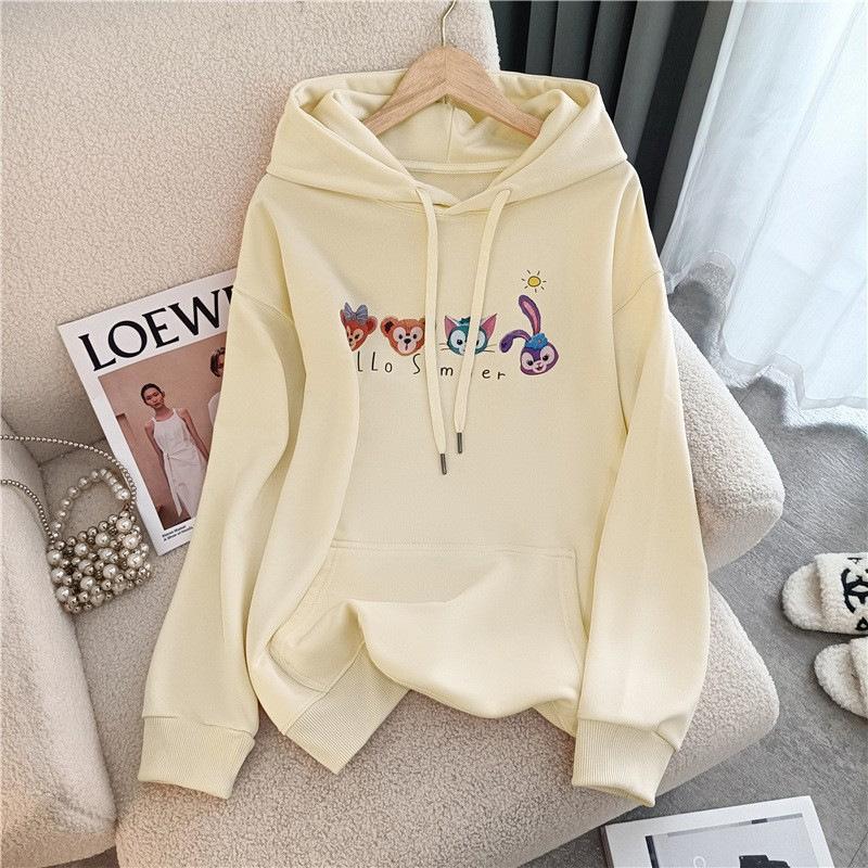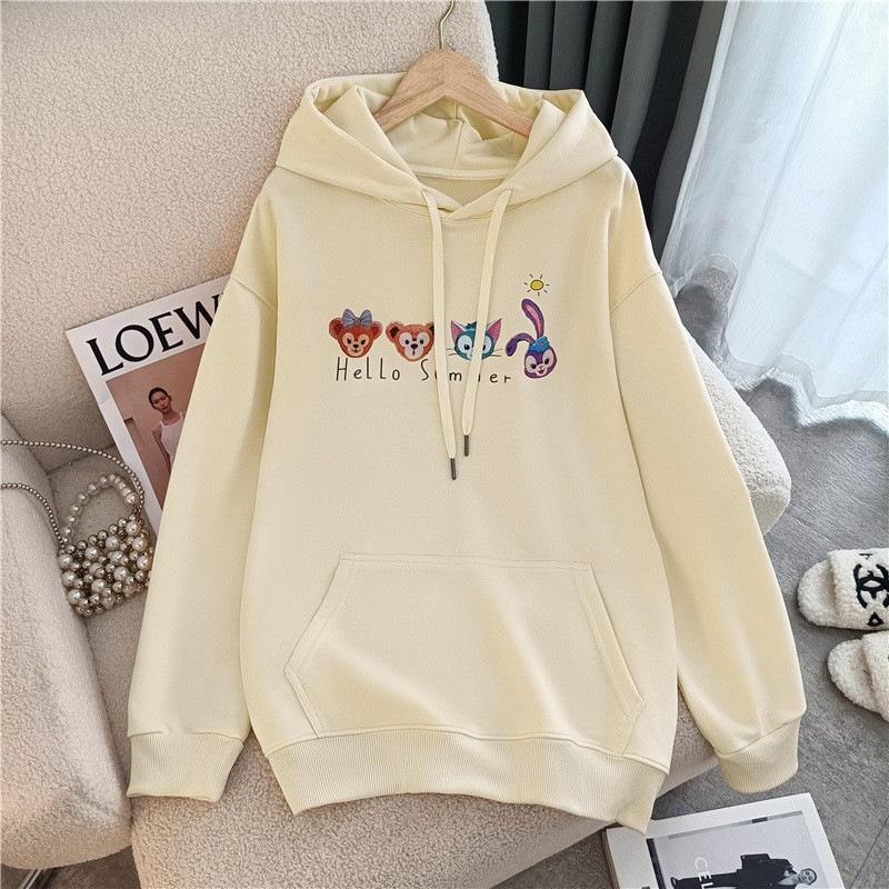 Suéter com capuz transfronteiriço Outono e inverno Novo solto plus size Roupas femininas Bonito desenho animado estampado All-match Pullover Top Coat