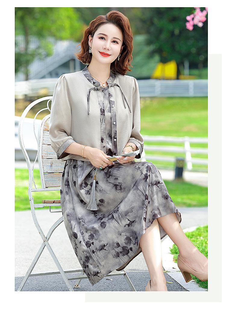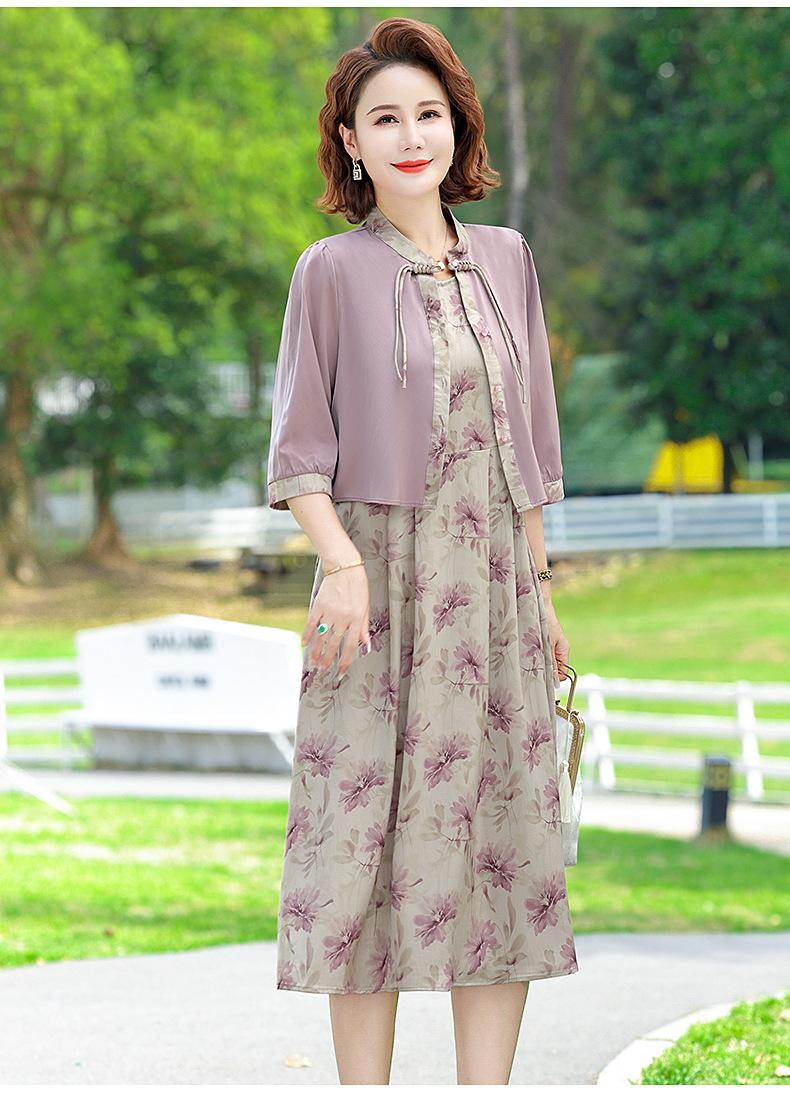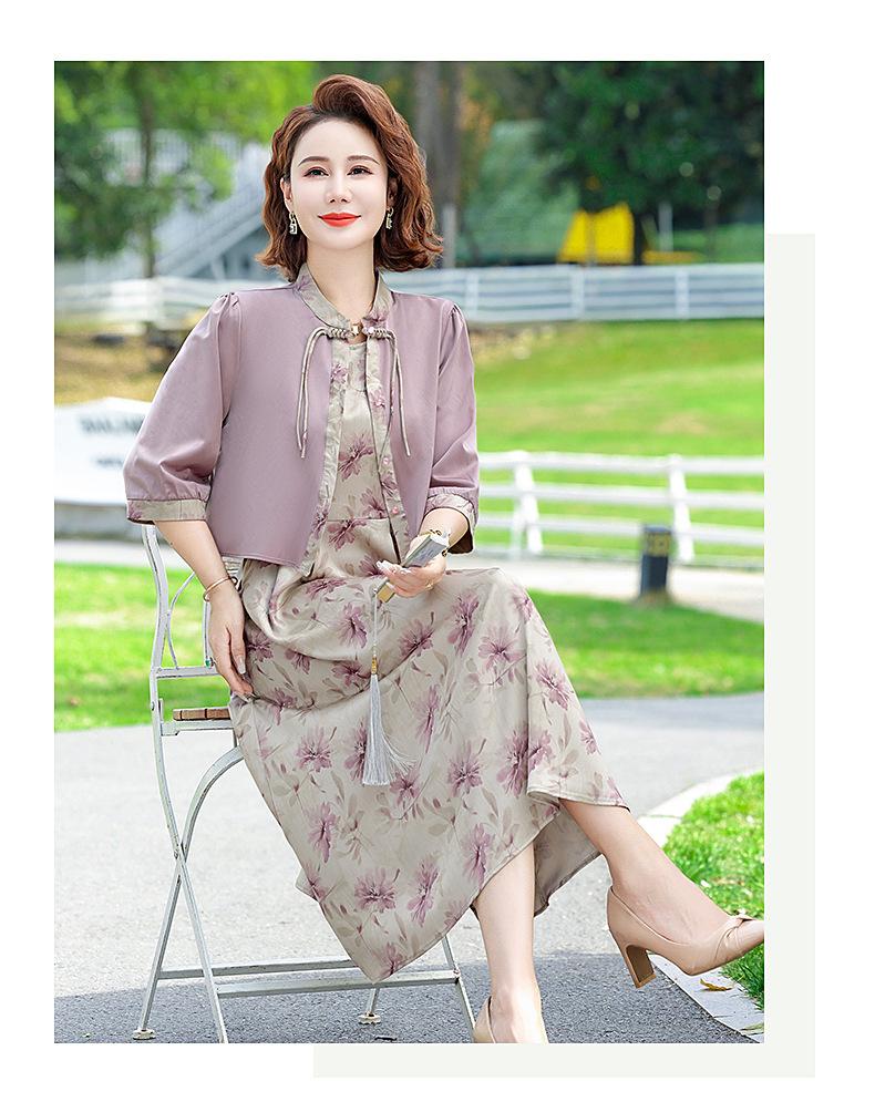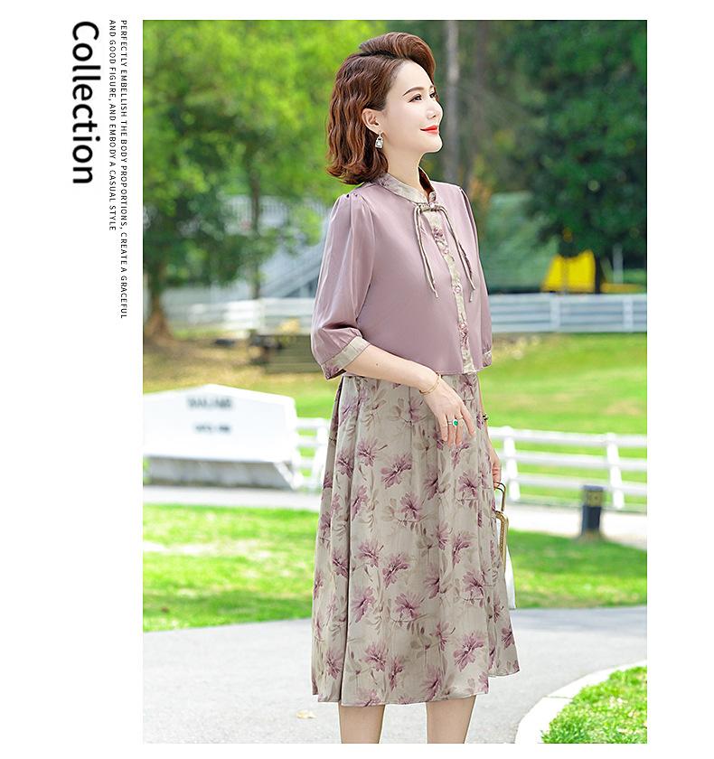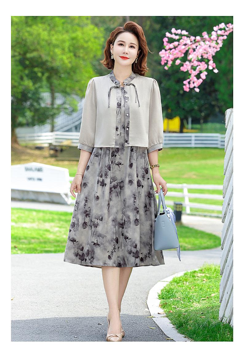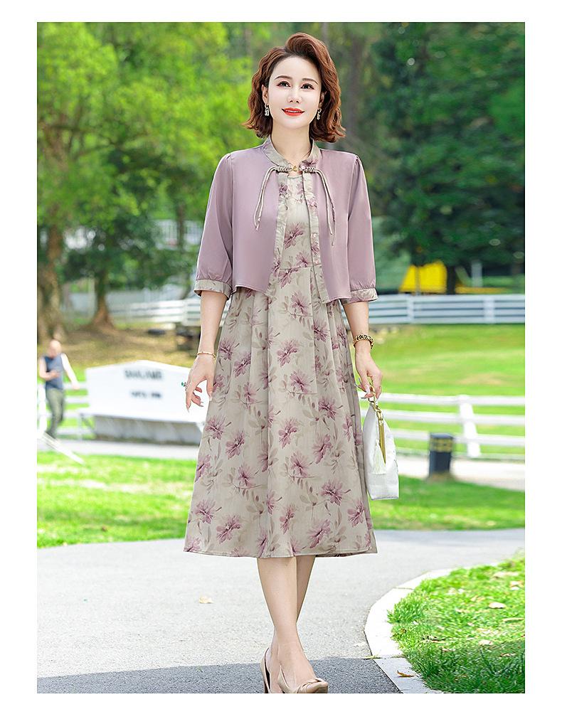 Vestido de Verano para Madre Elegante Traje de Vestido de Estilo Nacional Chaqueta de Verano de Manga Corta para Mediana Edad Falda de Dos Piezas de Estilo Occidental