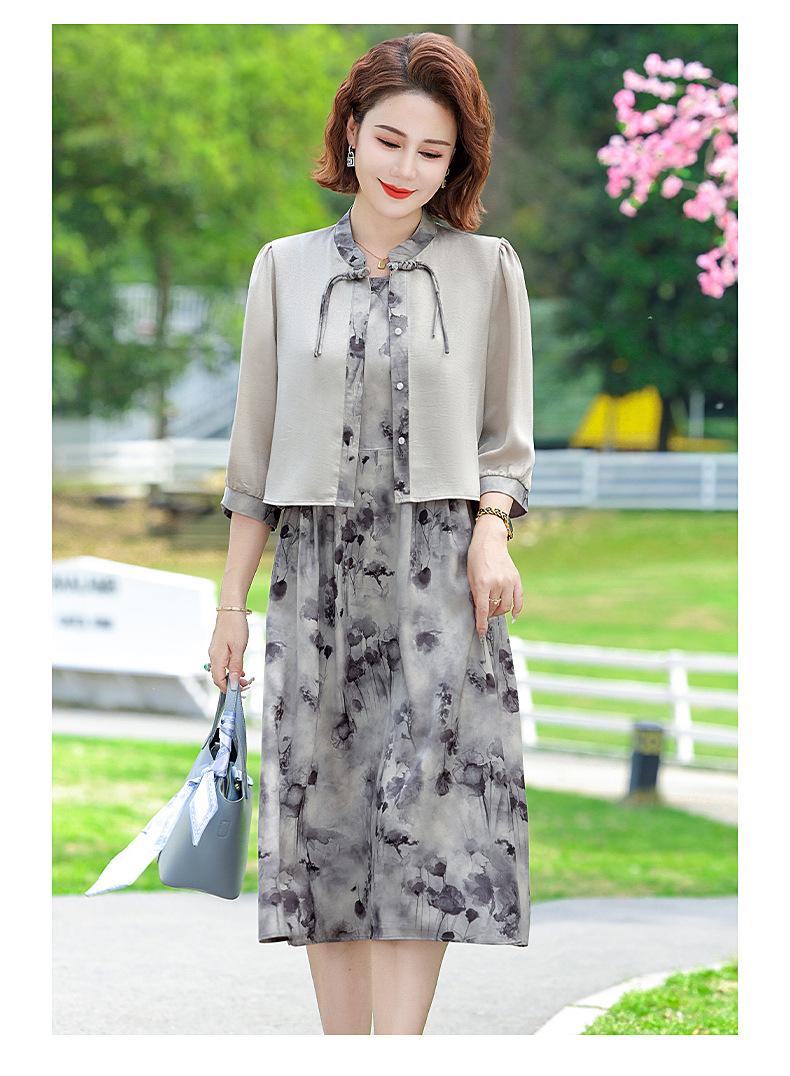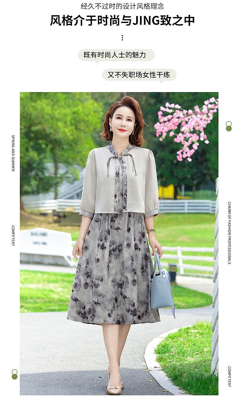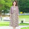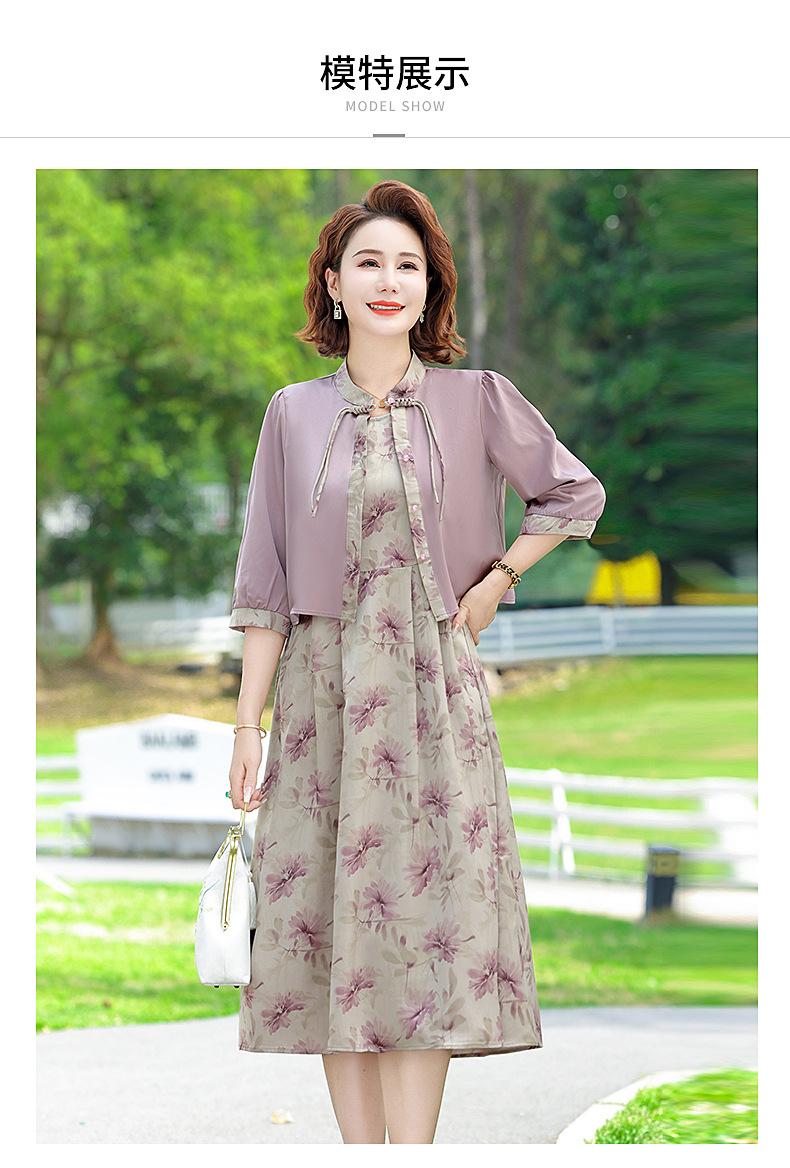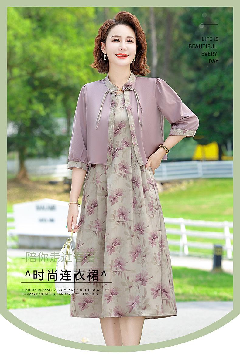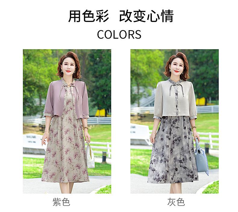 Vestido de Verano para Madre Elegante Traje de Vestido de Estilo Nacional Chaqueta de Verano de Manga Corta para Mediana Edad Falda de Dos Piezas de Estilo Occidental