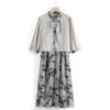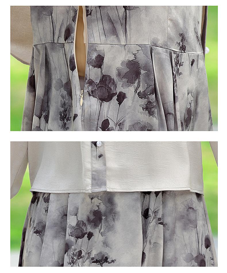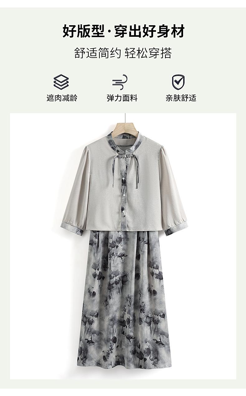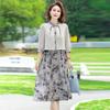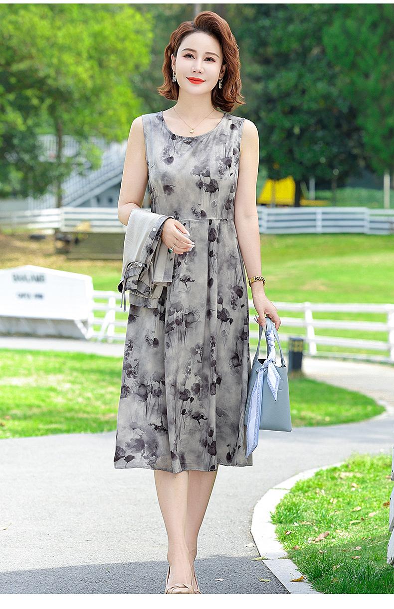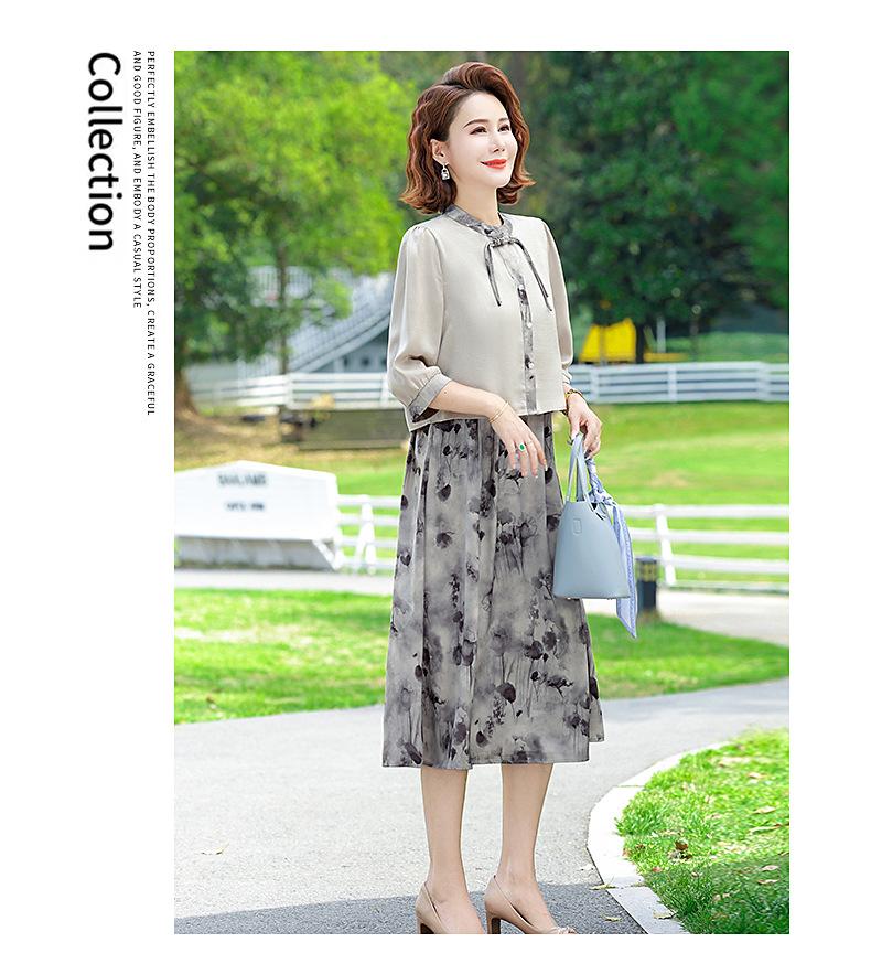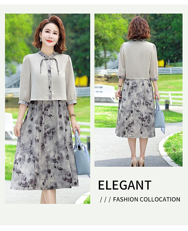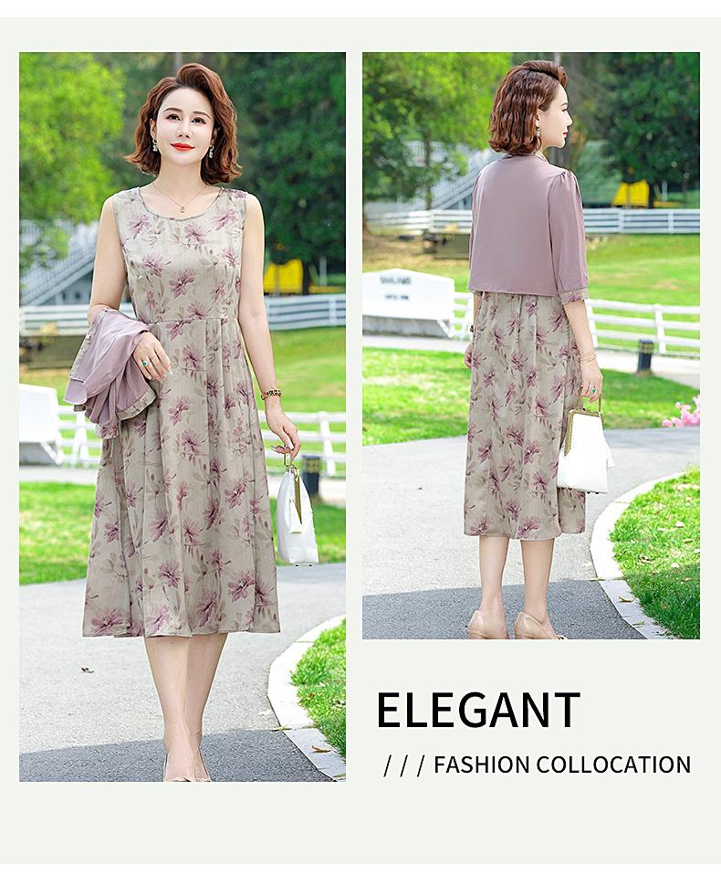 Vestido de Verano para Madre Elegante Traje de Vestido de Estilo Nacional Chaqueta de Verano de Manga Corta para Mediana Edad Falda de Dos Piezas de Estilo Occidental