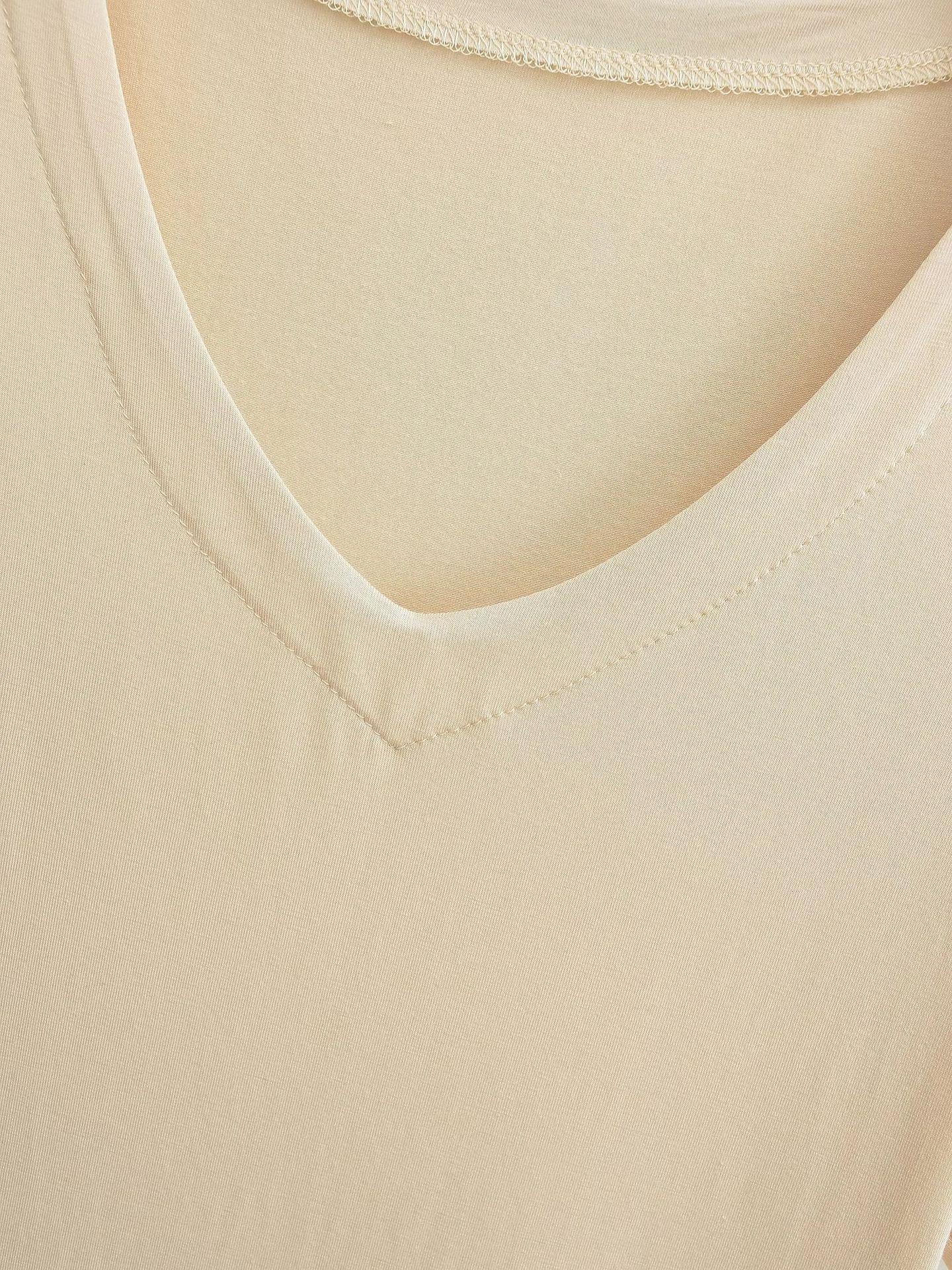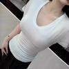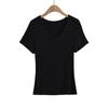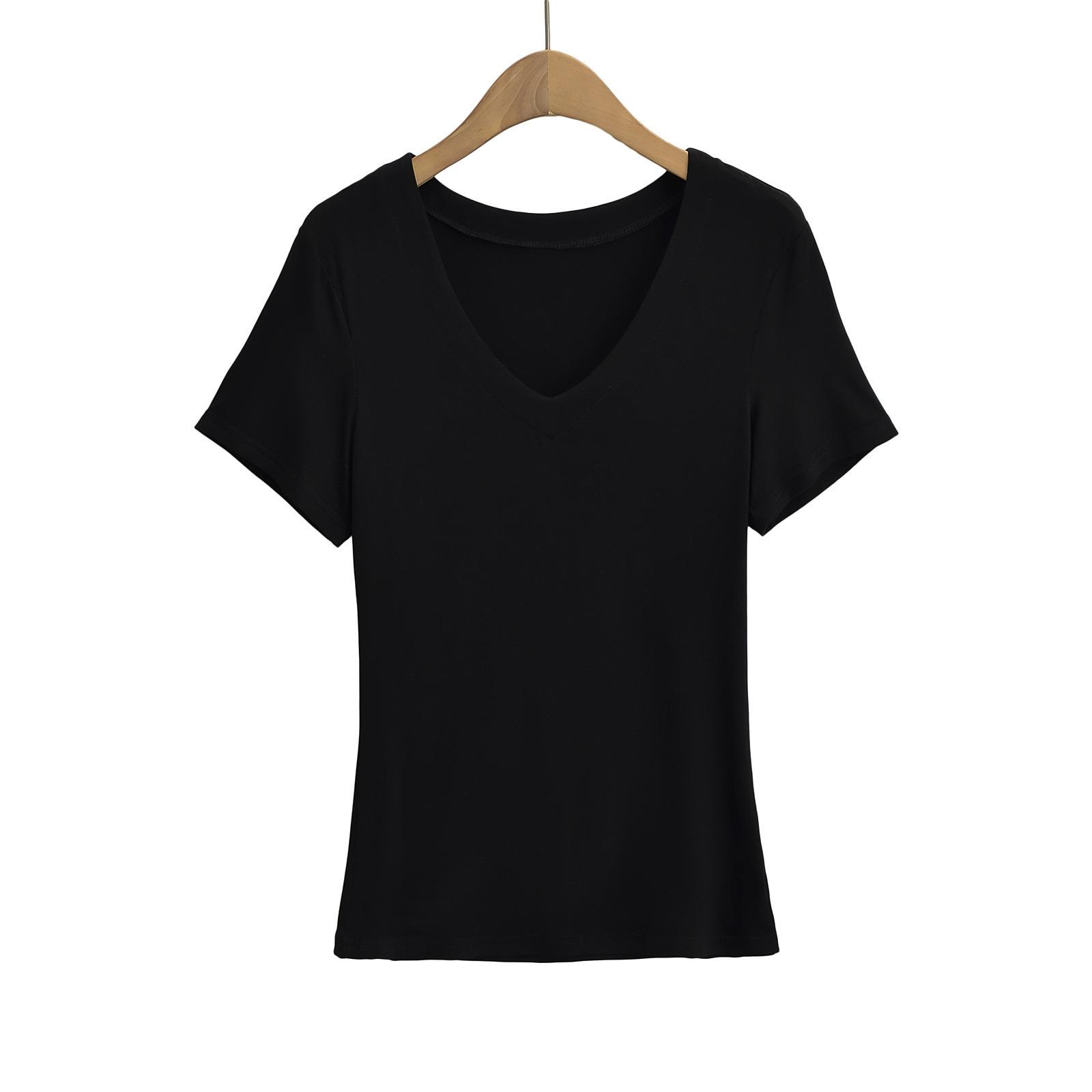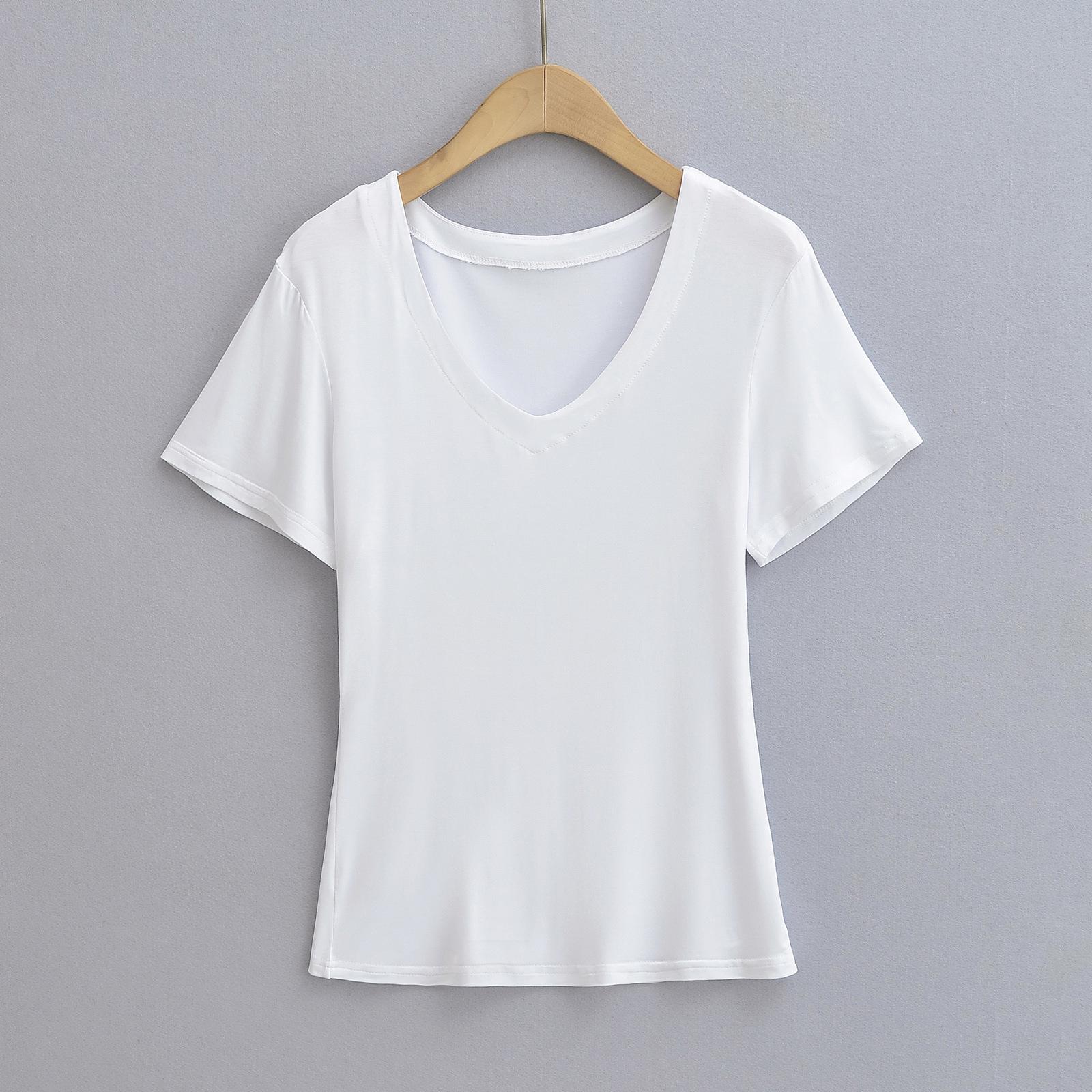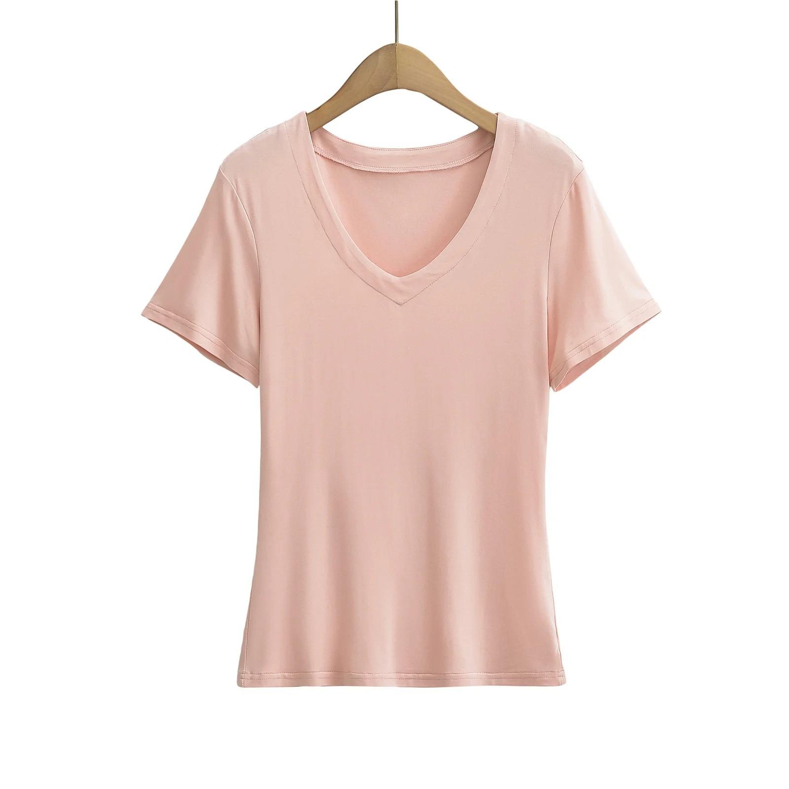 Camiseta de manga corta ajustada con cuello en V y hombros descubiertos para mujer, sencilla y atractiva, de verano, con un solo color liso.