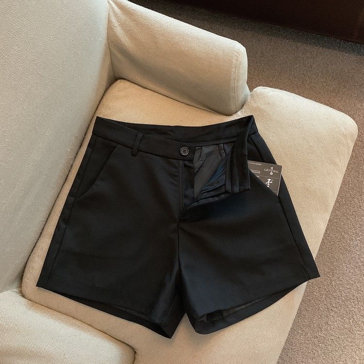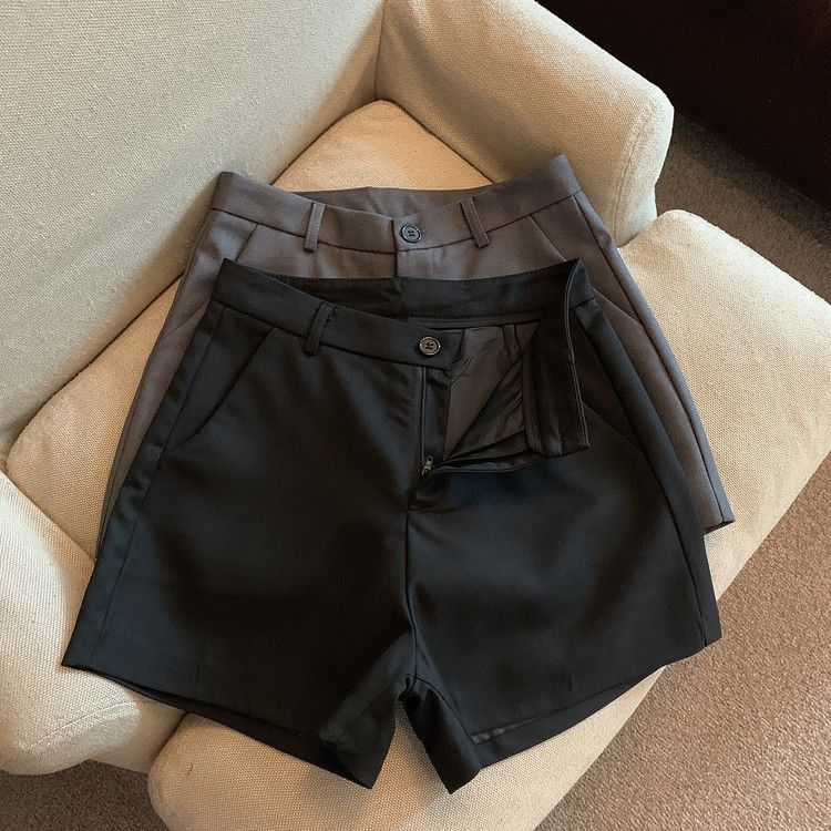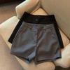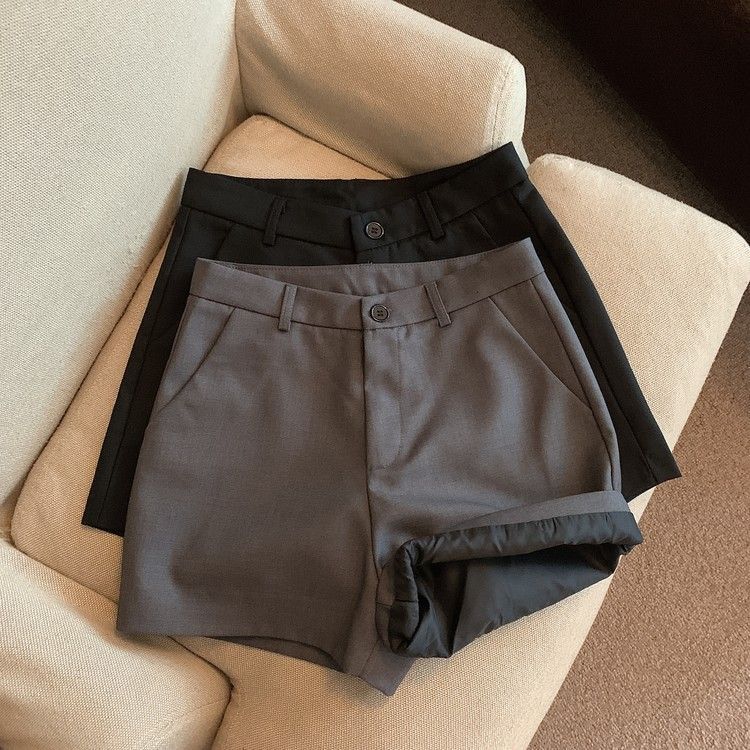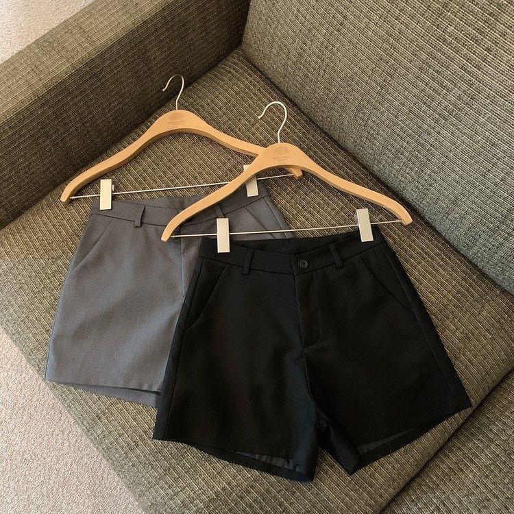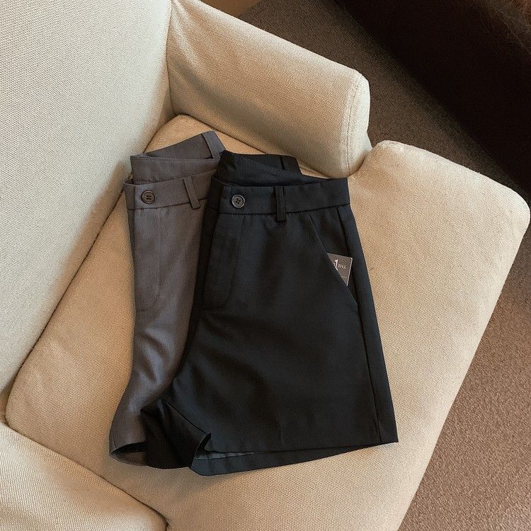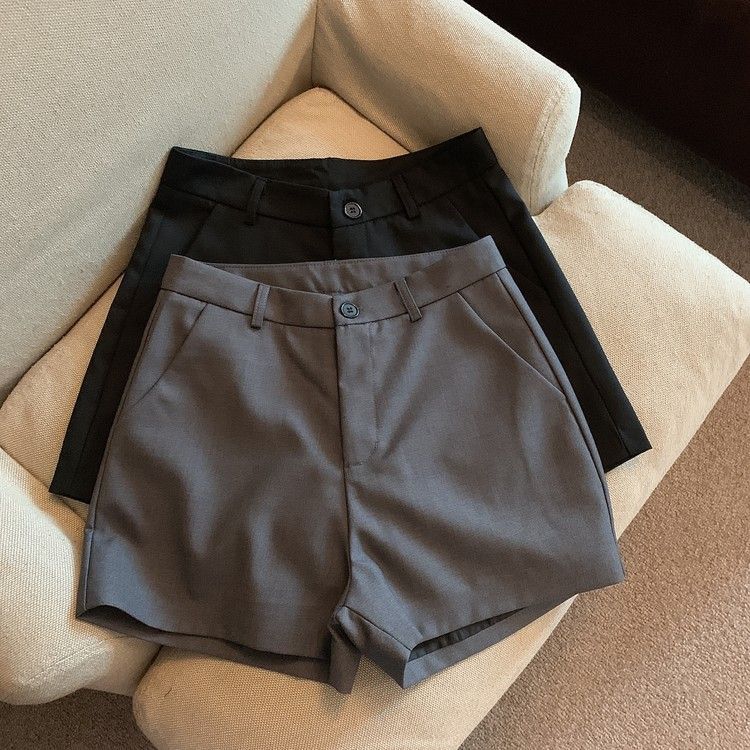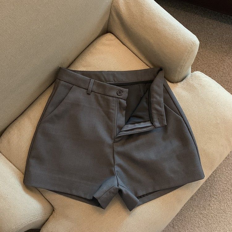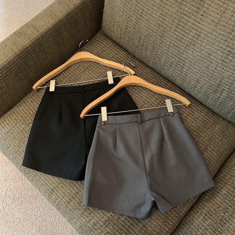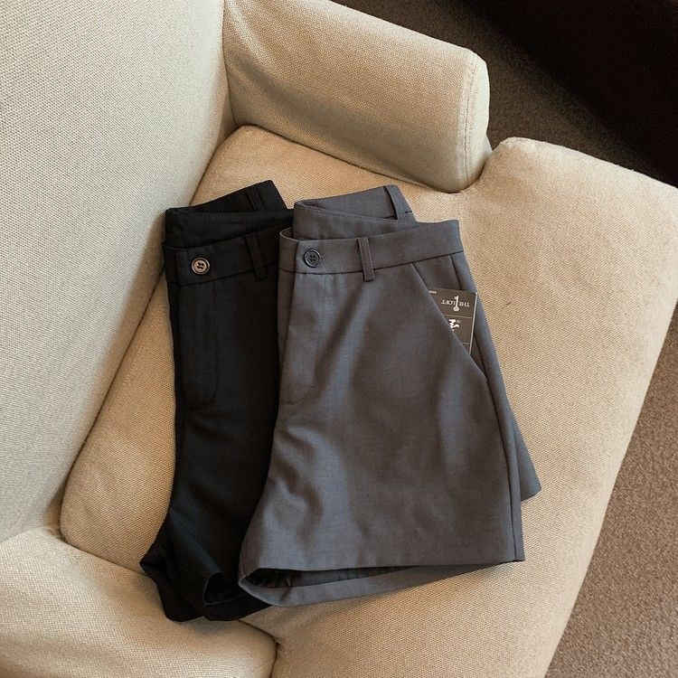 Pantalones cortos de traje gris para mujer, de primavera y verano, de cintura alta, adelgazantes, de corte A, con pierna ancha, pantalones casuales pequeños, ropa de abrigo, pantalones tipo bota