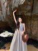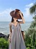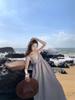 Vestido de Tirantes a Cuadros Franceses para Mujer Verano 2025 Nuevo Vacaciones en la Playa Look Holgado Adelgazante Cuello en V Espalda Descubierta Falda Larga