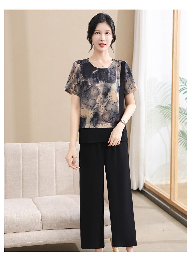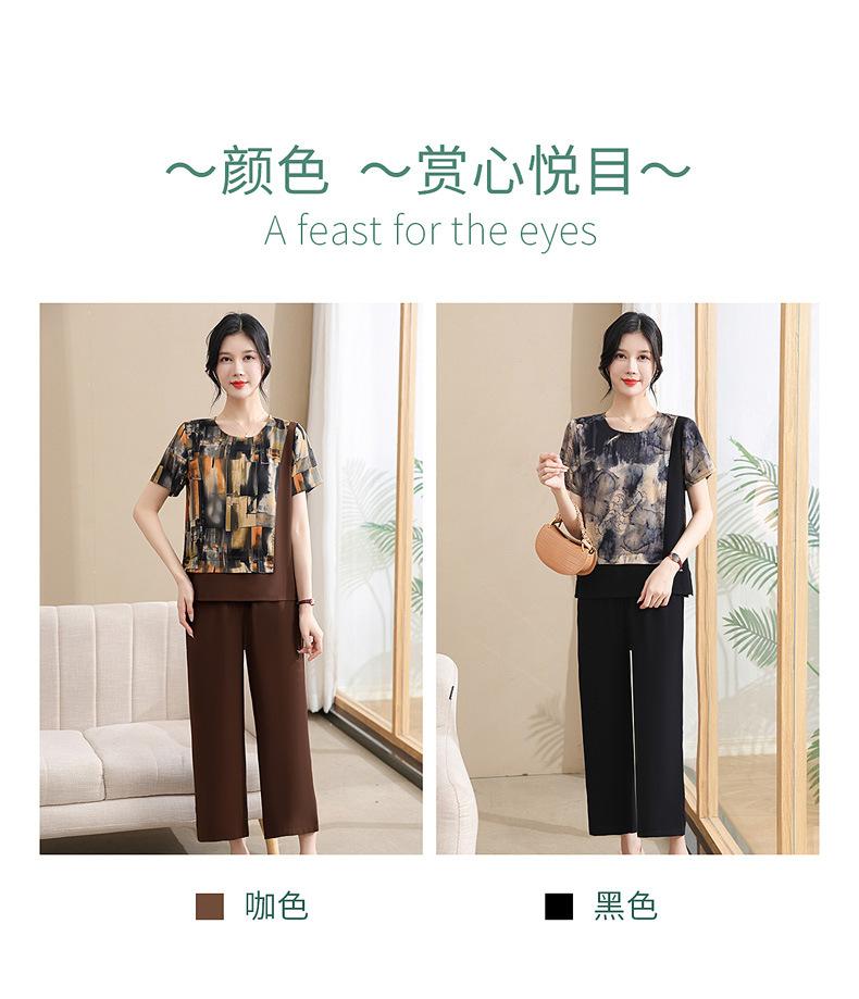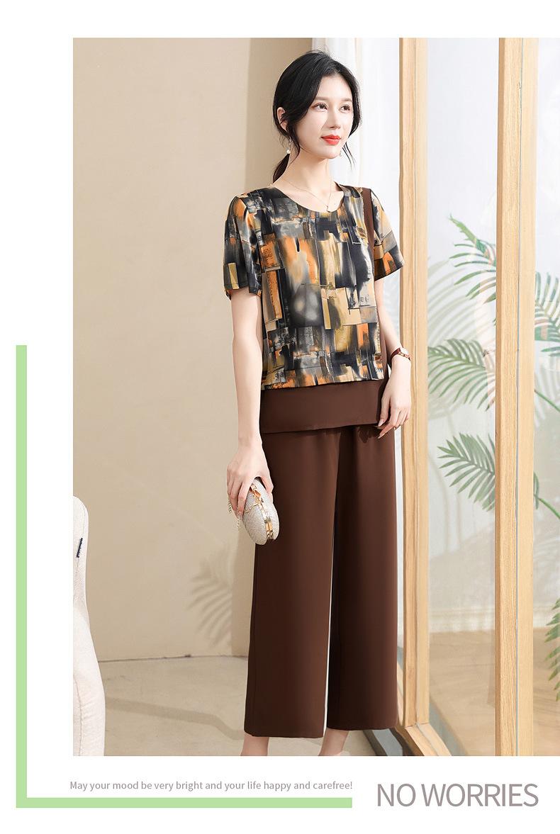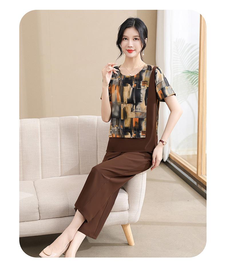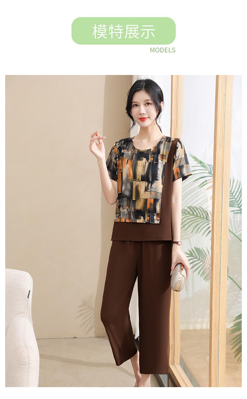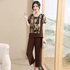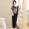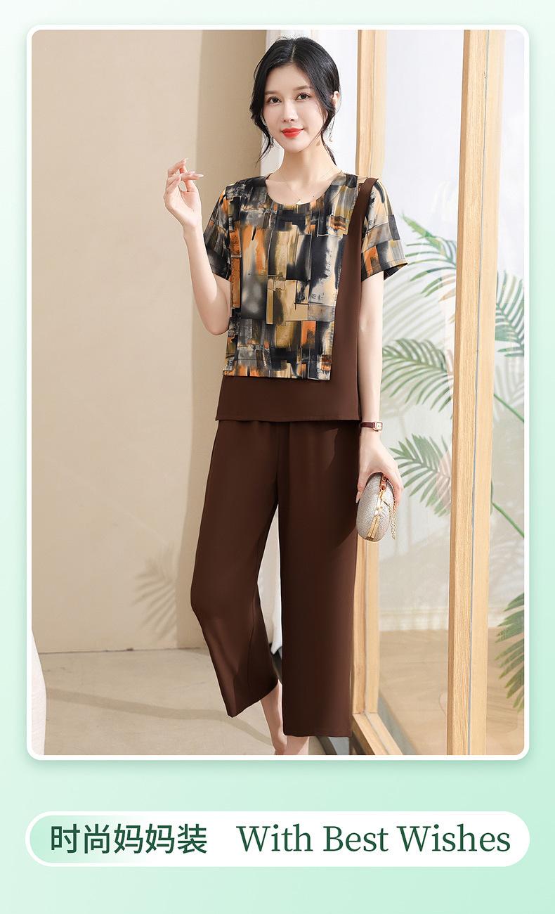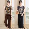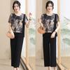 Traje de mujer retro de manga corta estilo occidental de verano para madre, nuevo traje de dos piezas de moda casual para mujer de mediana edad 2024