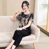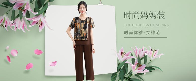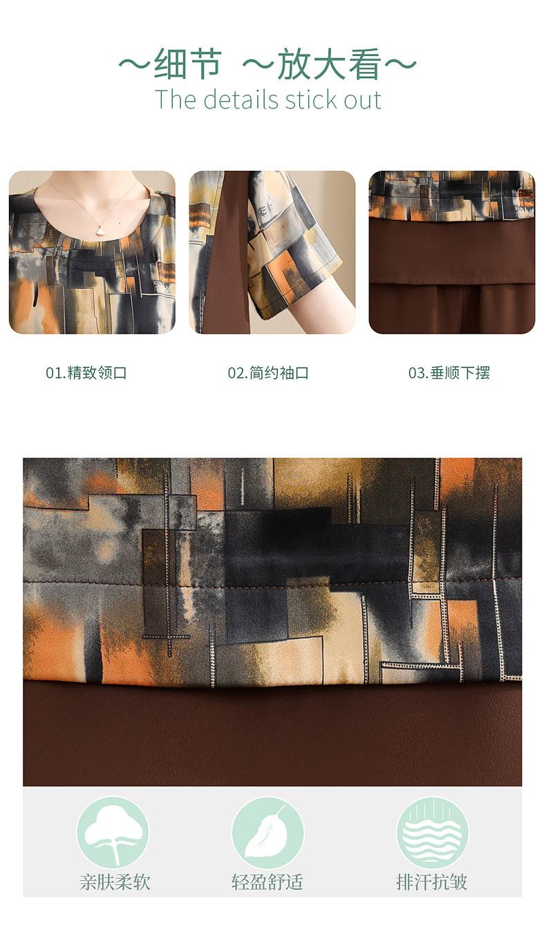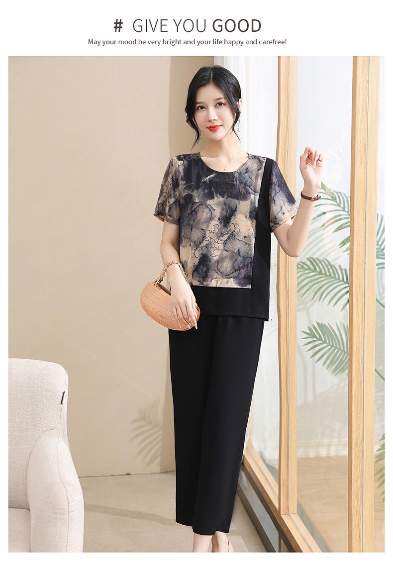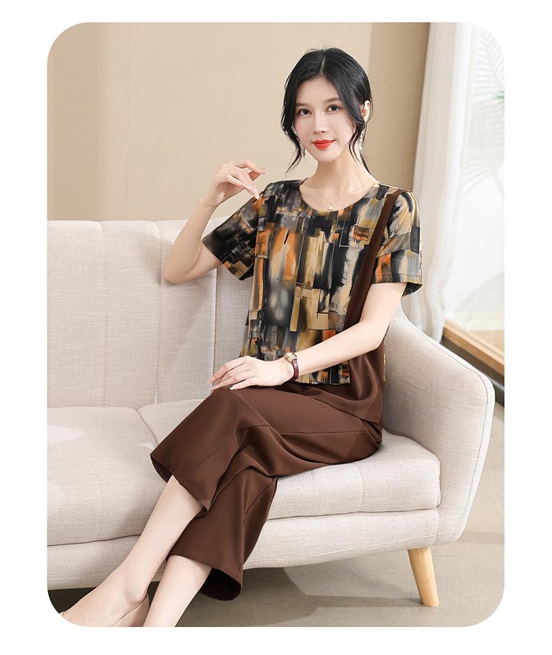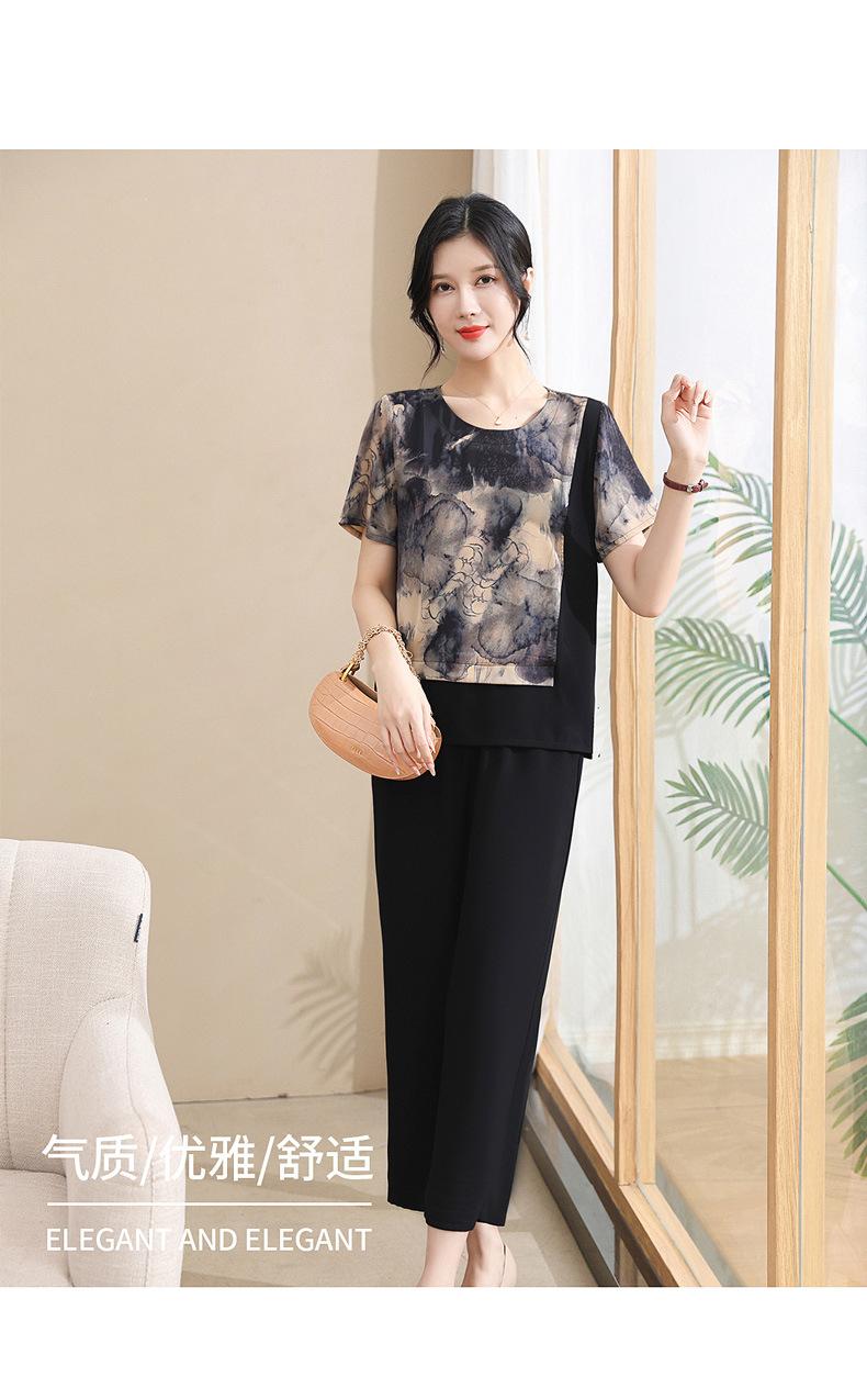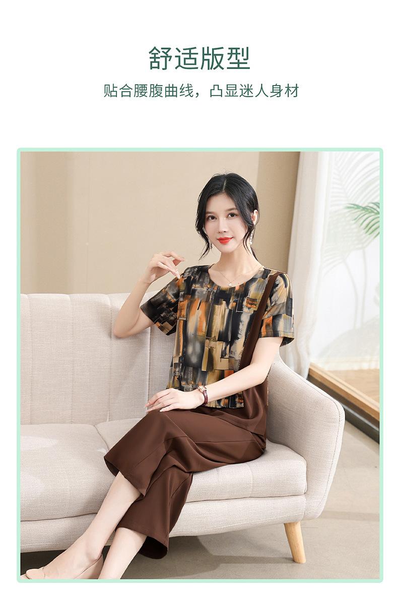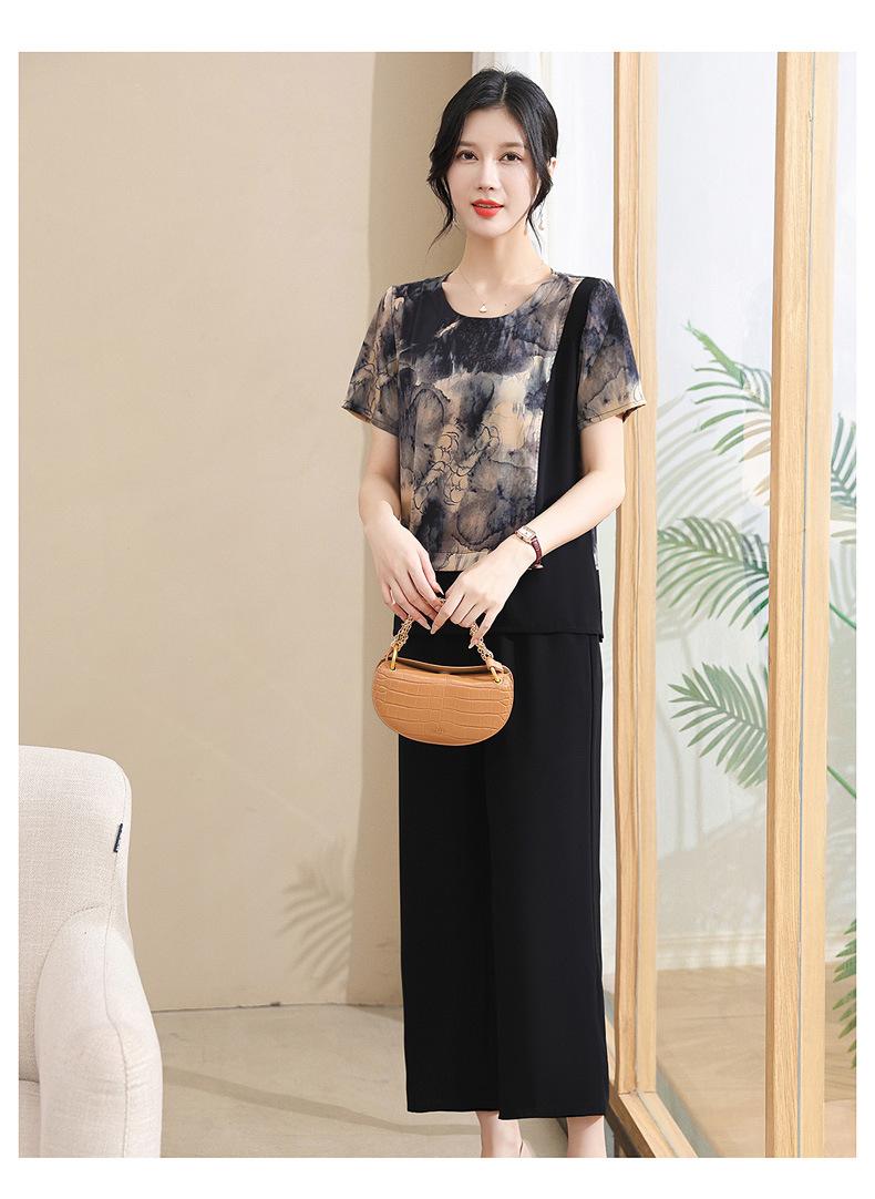 Traje de mujer retro de manga corta estilo occidental de verano para madre, nuevo traje de dos piezas de moda casual para mujer de mediana edad 2024