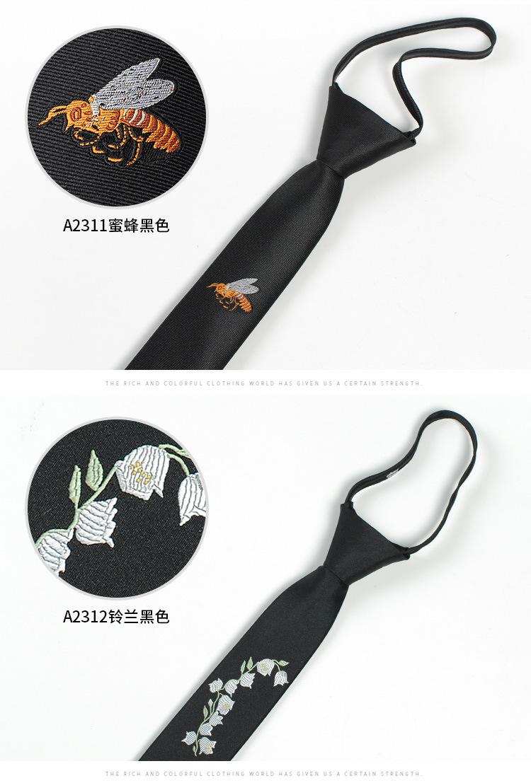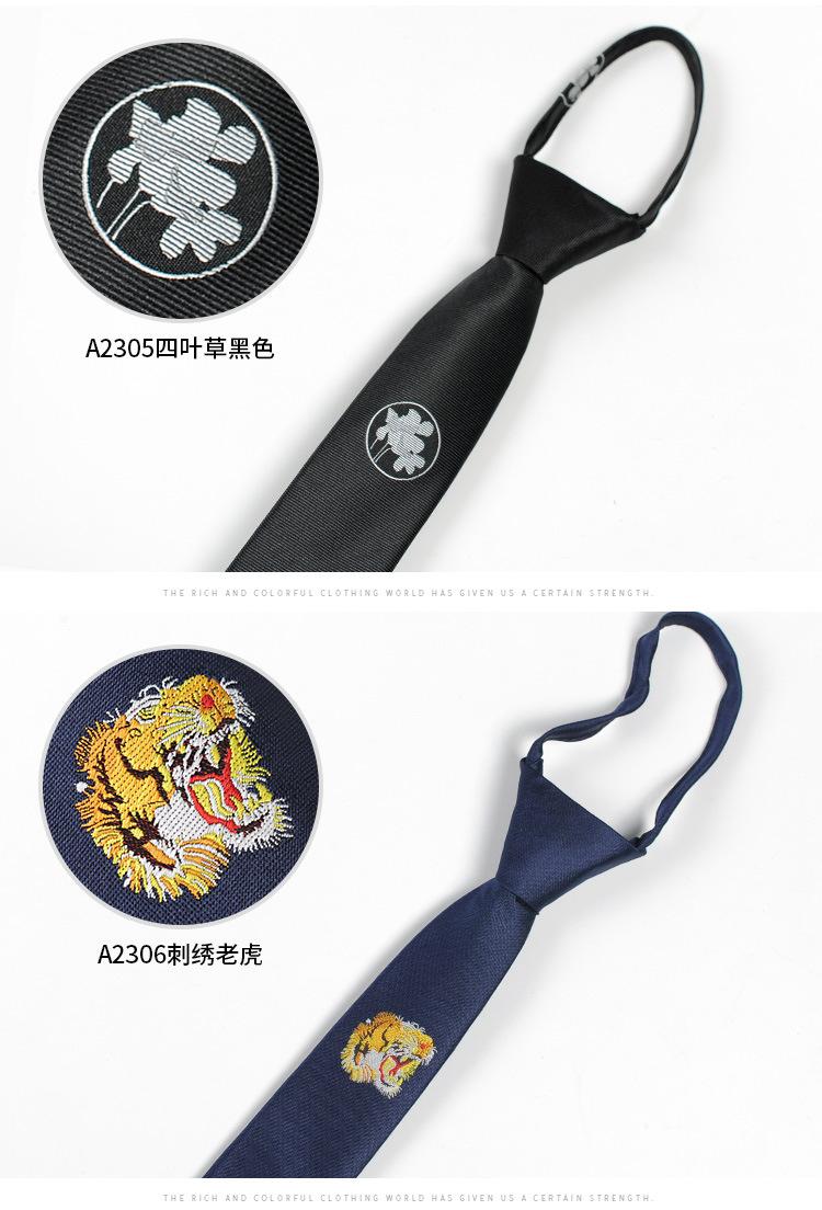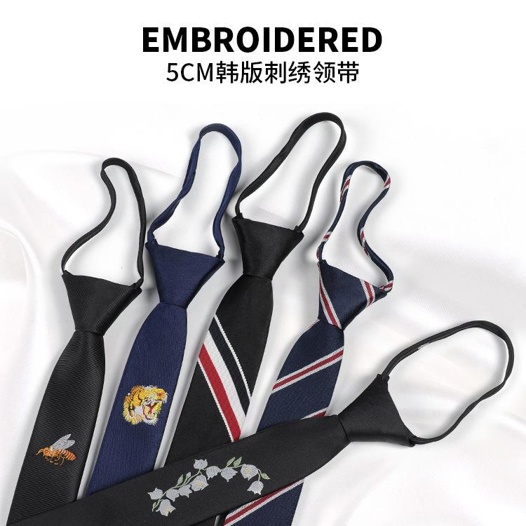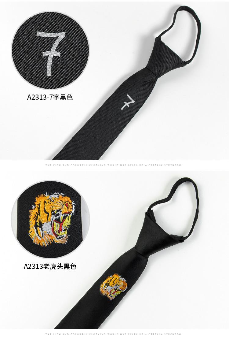 [Cremallera bordada] Corbata estilo coreano con logotipo estrecho, accesorios de moda finos y modernos para hombre, personalidad relajada e informal.