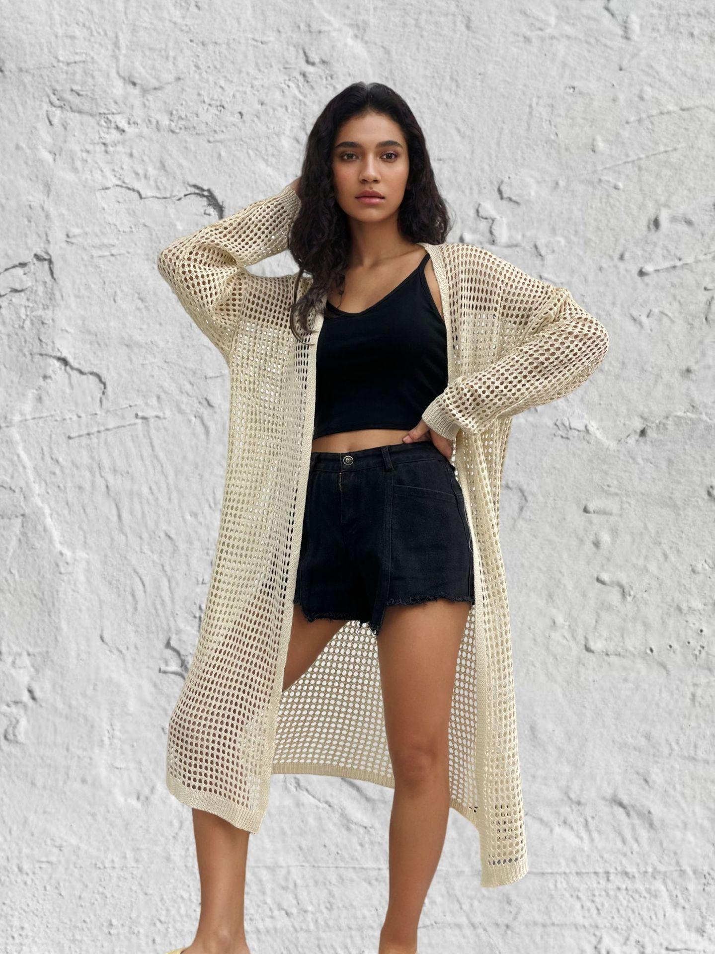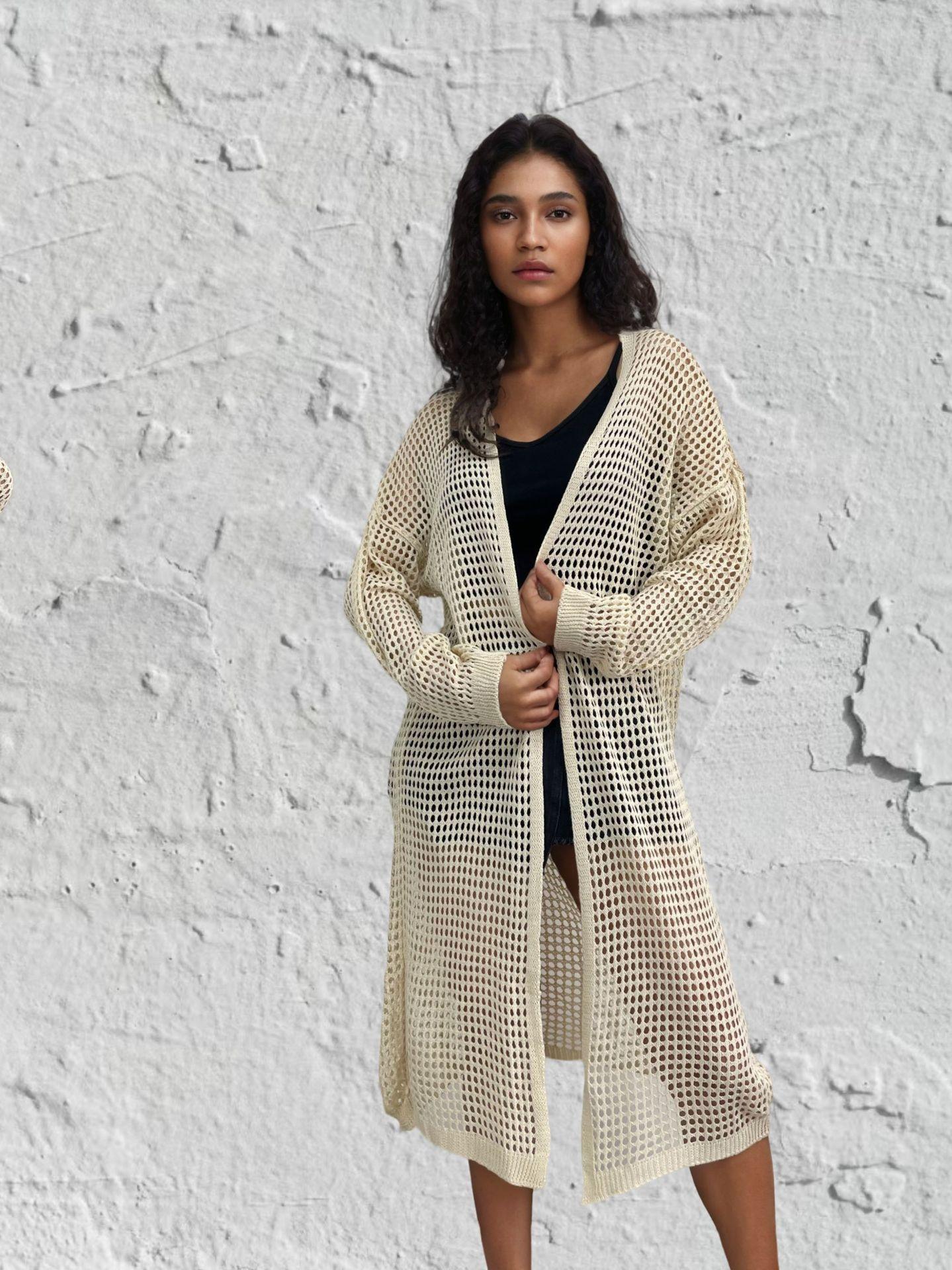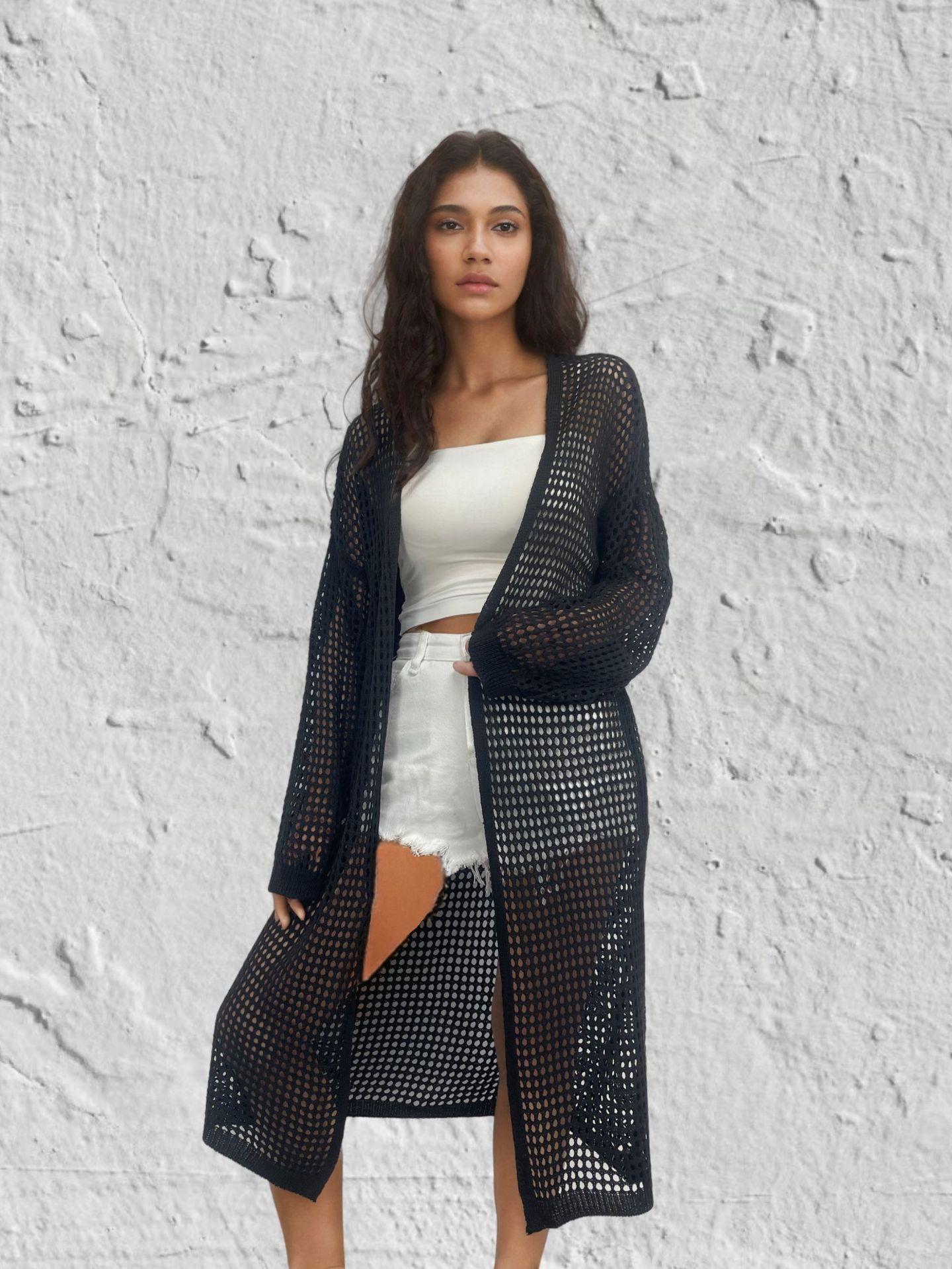 Cárdigan largo de punto calado para mujer, abrigo de comercio exterior de ganchillo transfronterizo, falda de protección solar de playa, primavera y verano, nuevo, de eBay, Europa y América